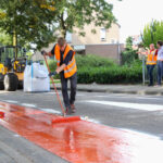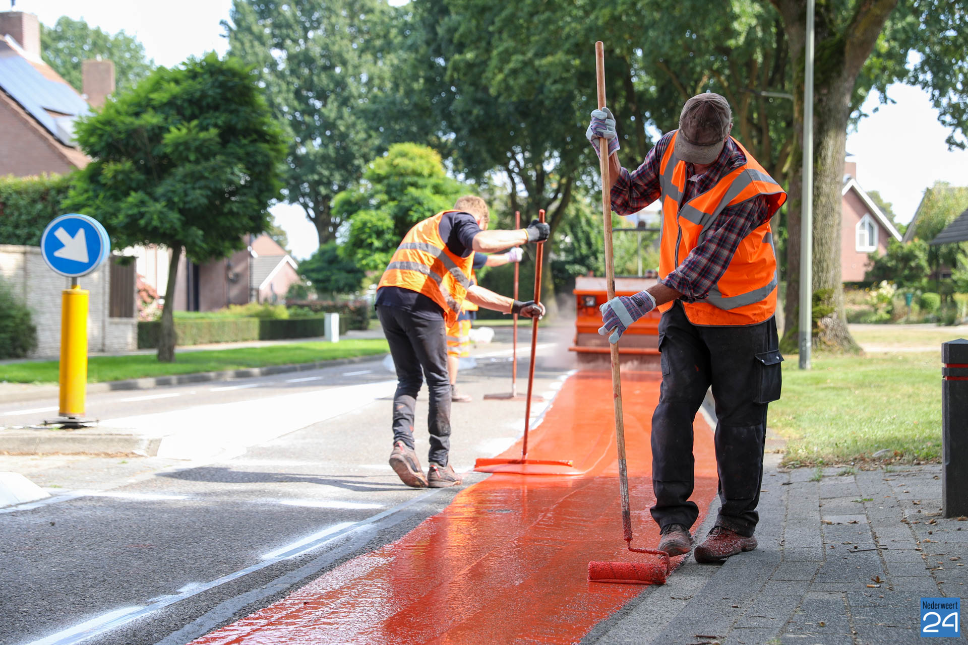 Aanleggen rode fietssuggestiestroken in Nederweert (Foto’s)