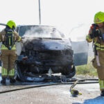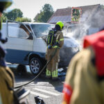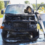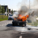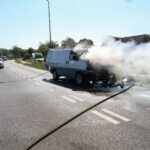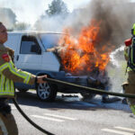 Een bedrijfsbusje heeft woensdagmiddag vlam gevat na een botsing met een tractor op de Hoofstraat in Nederweert. Niemand raakte gewond.