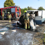 Het ongeval gebeurde ter hoogte van de Schansstraat. Het busje botste tegen de tractor waarna het vlam vatte. De bestuurder wist zijn spullen op tijd uit de laadruimte te halen. De brandweer kwam met het snelle interventie voertuig en een blusvoertuig ter plaatse. Ook werd er een ambulance opgeroepen. Niemand raakte gewond bij het incident.