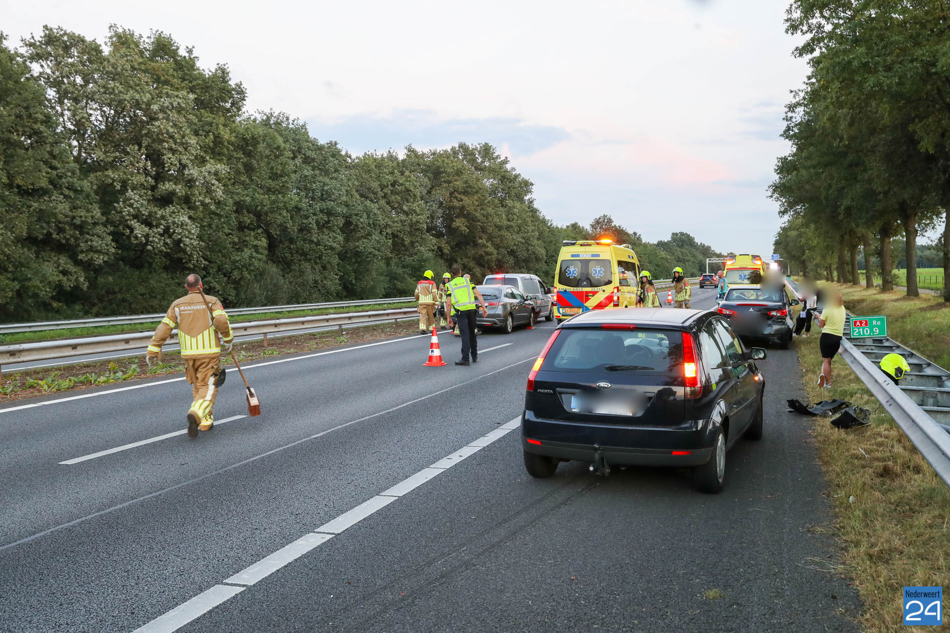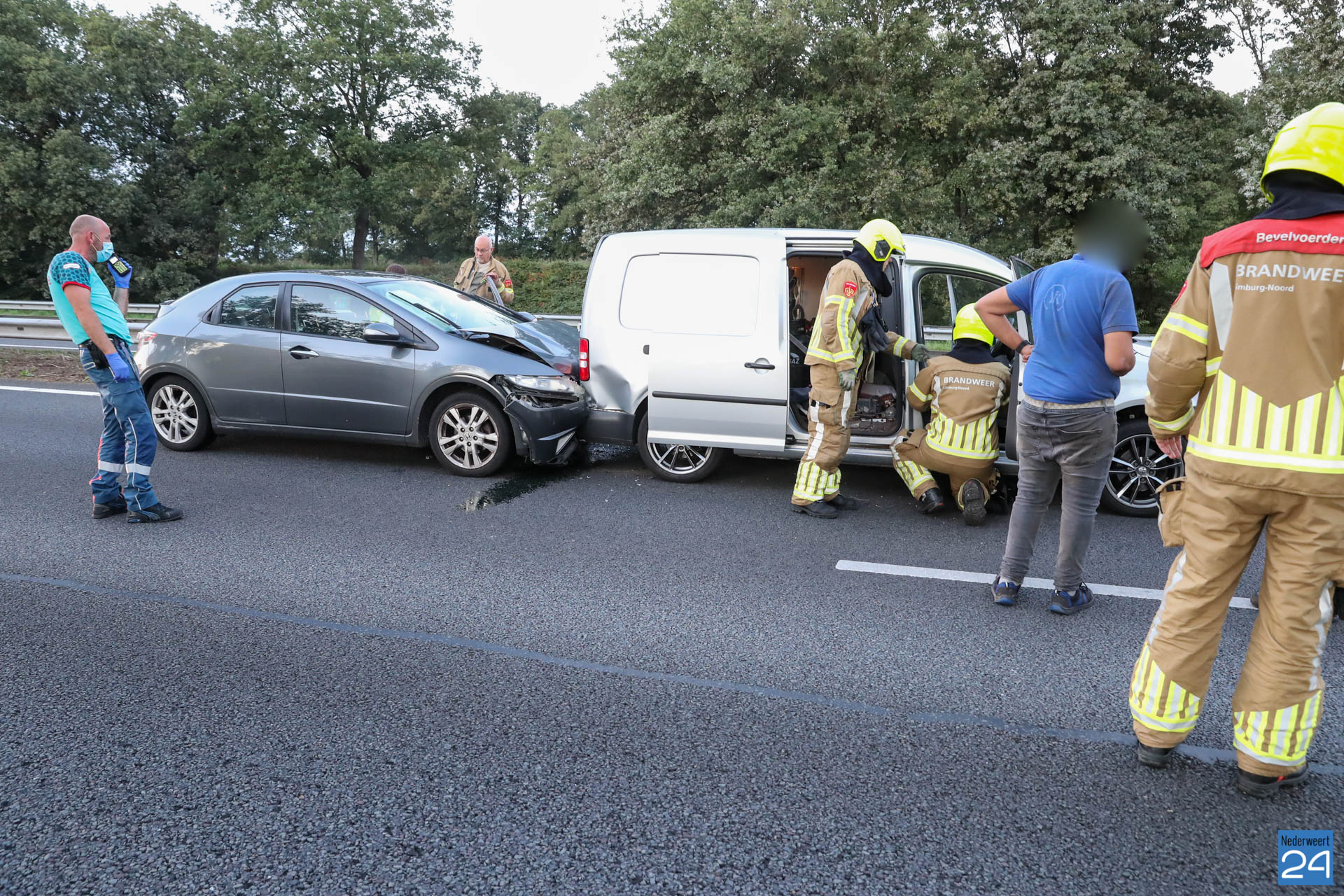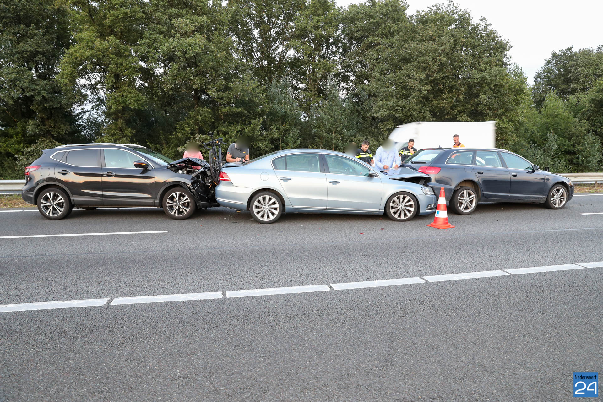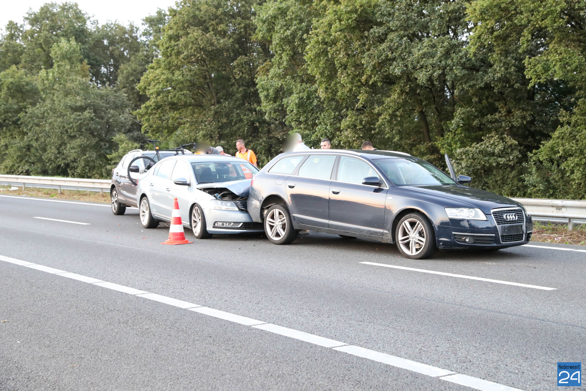 Net voor de afrit bij Grathem botste vijf auto’s op elkaar. In de file ter hoogte van Hunsel gebeurde even later een tweede ongeval met twee personenauto’s. Terwijl de hulpdiensten bezig waren met de afhandeling van deze aanrijding botste er nog eens drie auto’s op elkaar. Het laatste ongeval gebeurde op de locatie van het tweede ongeval.