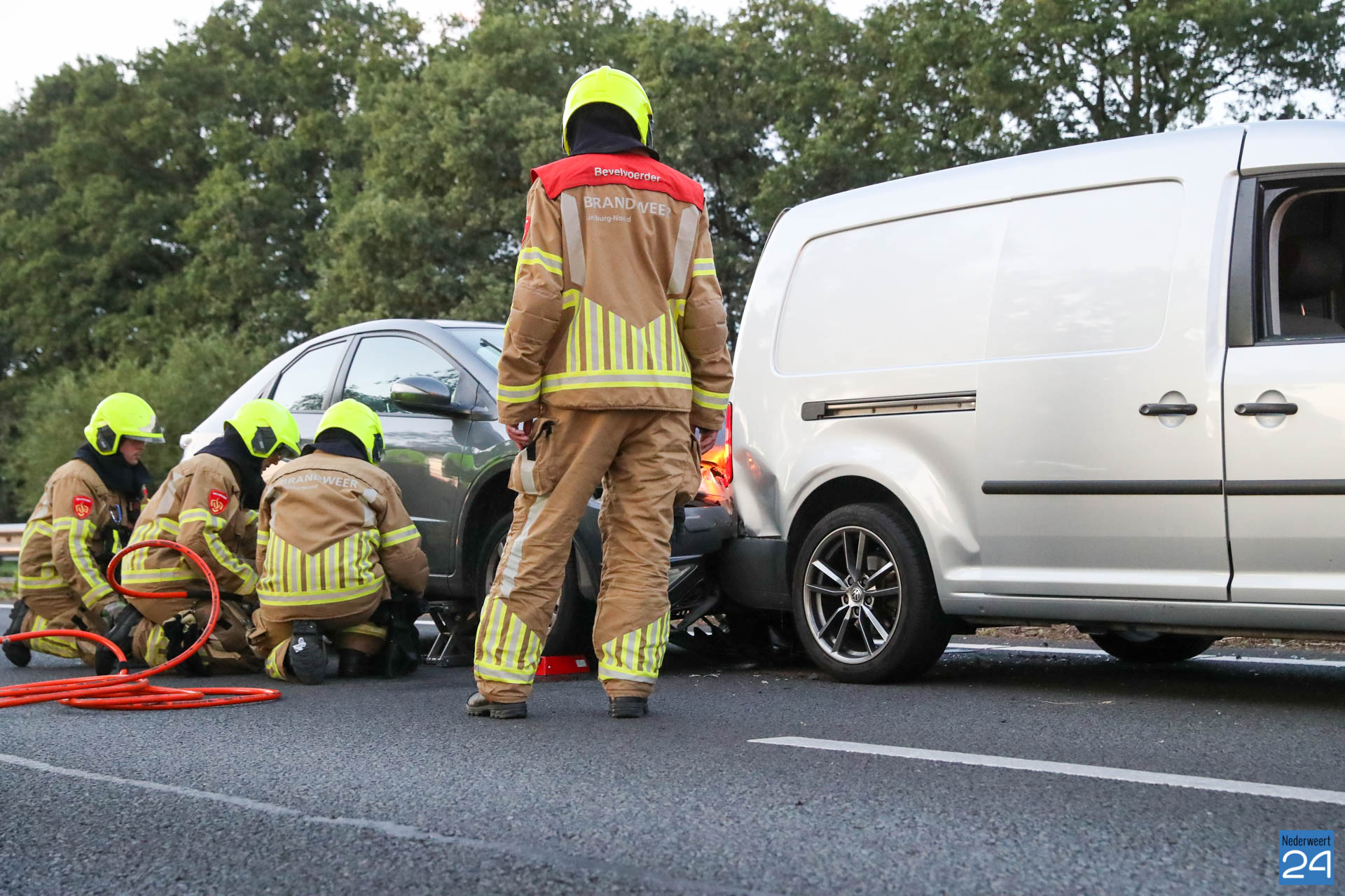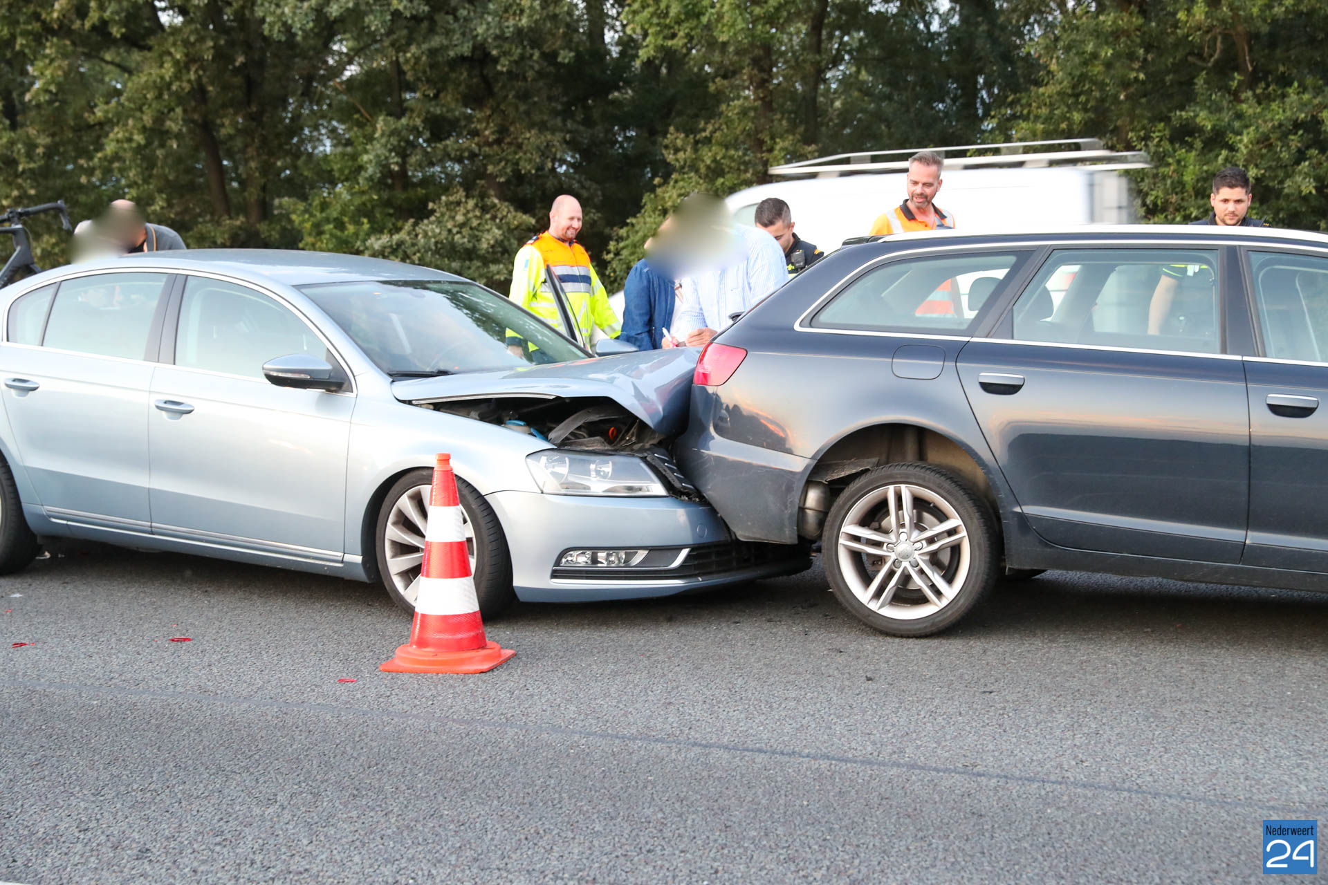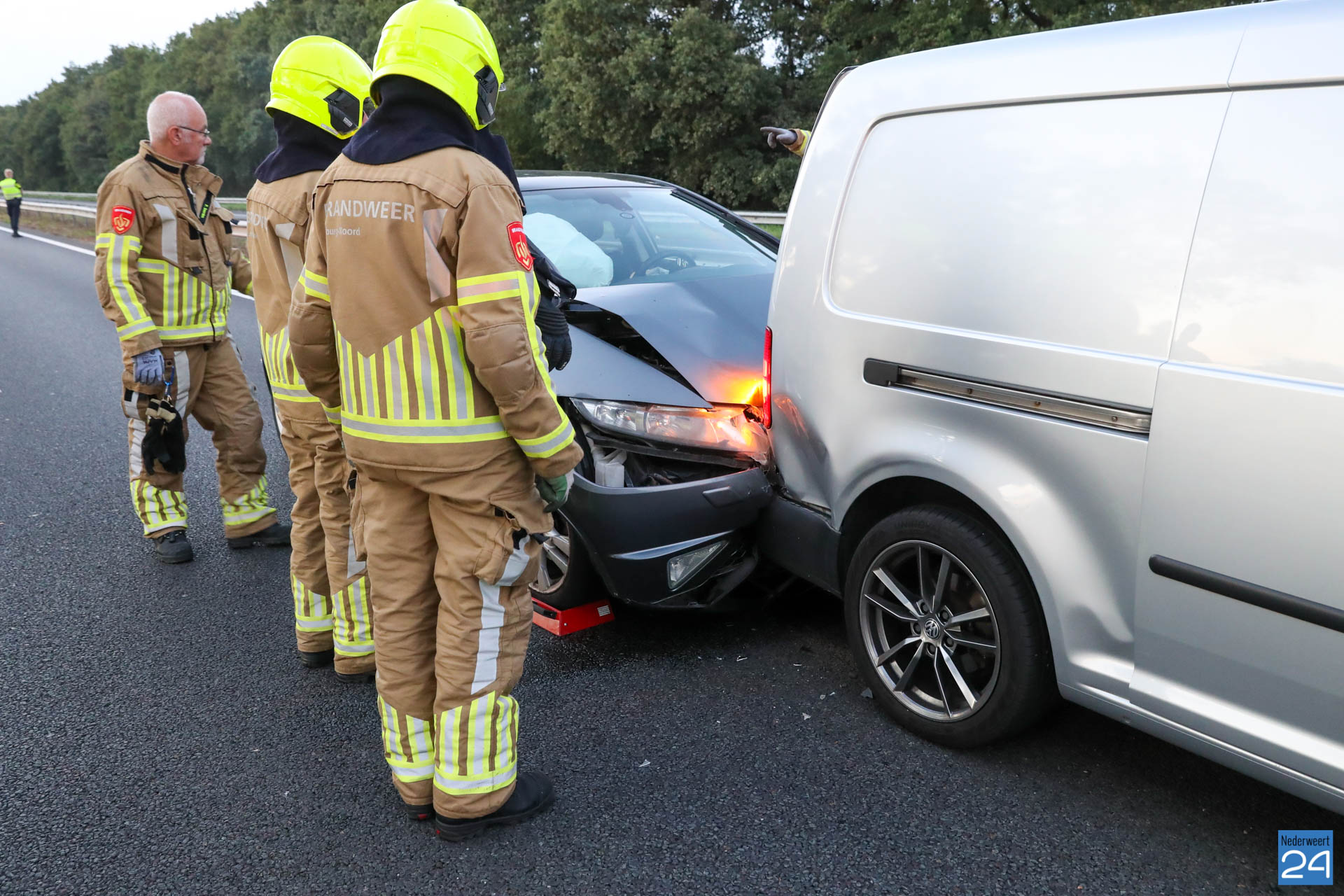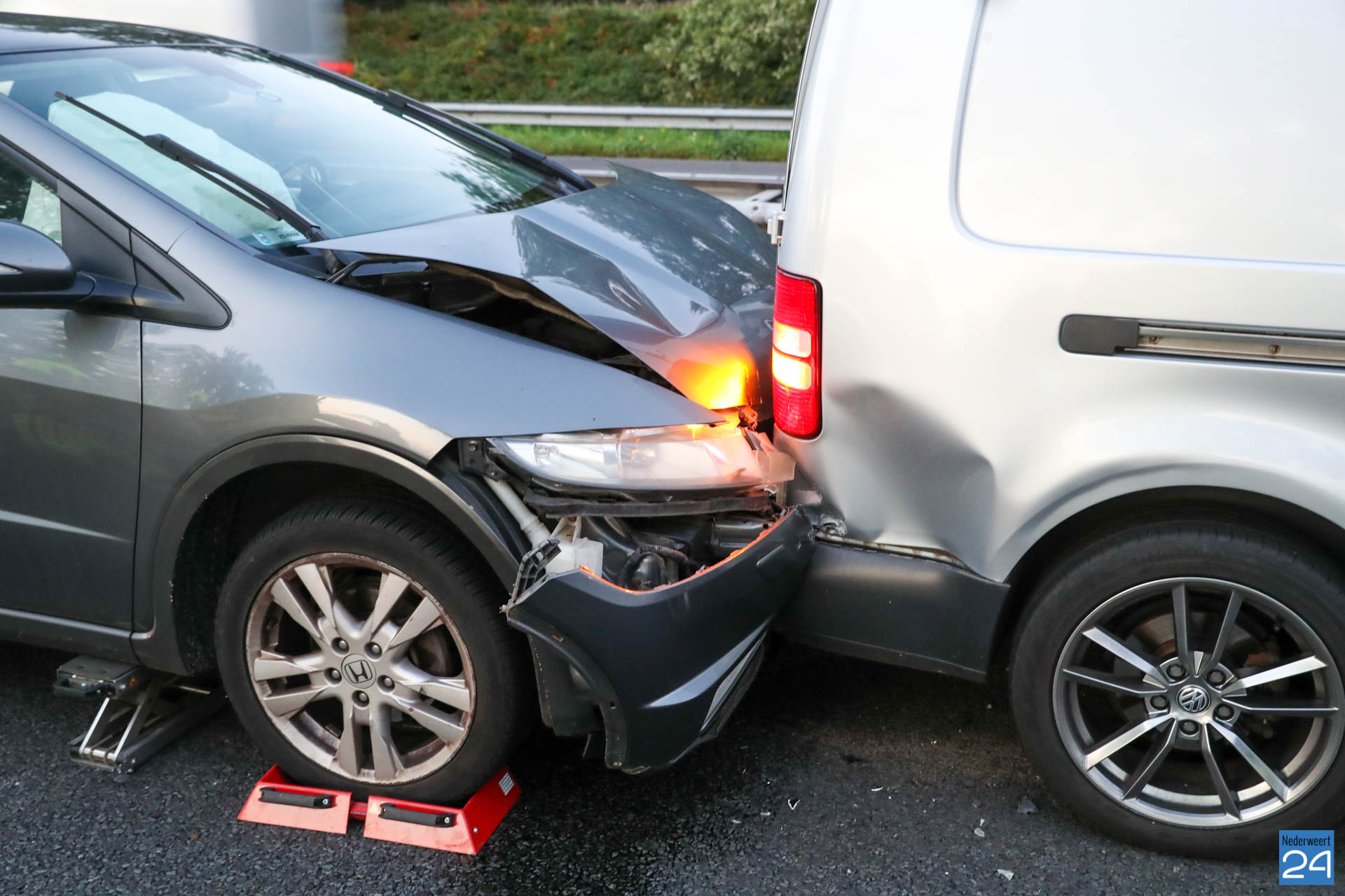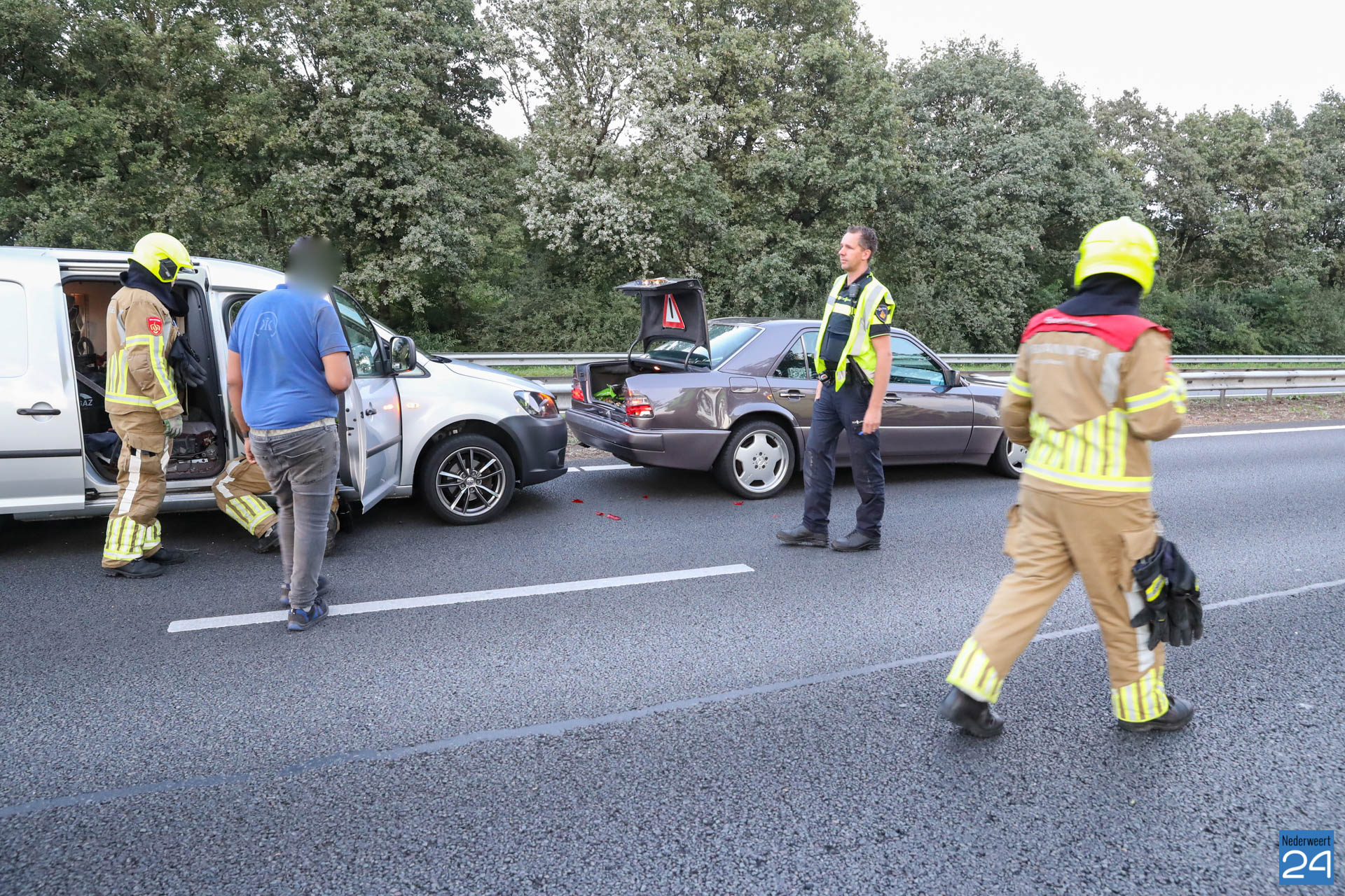 Net voor de afrit bij Grathem botste vijf auto’s op elkaar. In de file ter hoogte van Hunsel gebeurde even later een tweede ongeval met twee personenauto’s. Terwijl de hulpdiensten bezig waren met de afhandeling van deze aanrijding botste er nog eens drie auto’s op elkaar. Het laatste ongeval gebeurde op de locatie van het tweede ongeval.