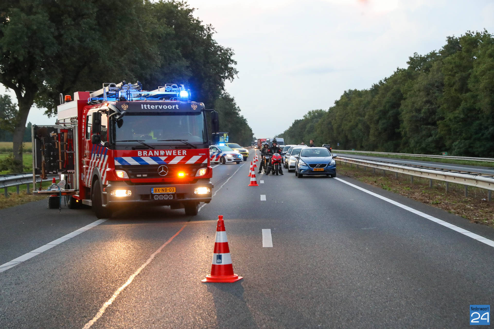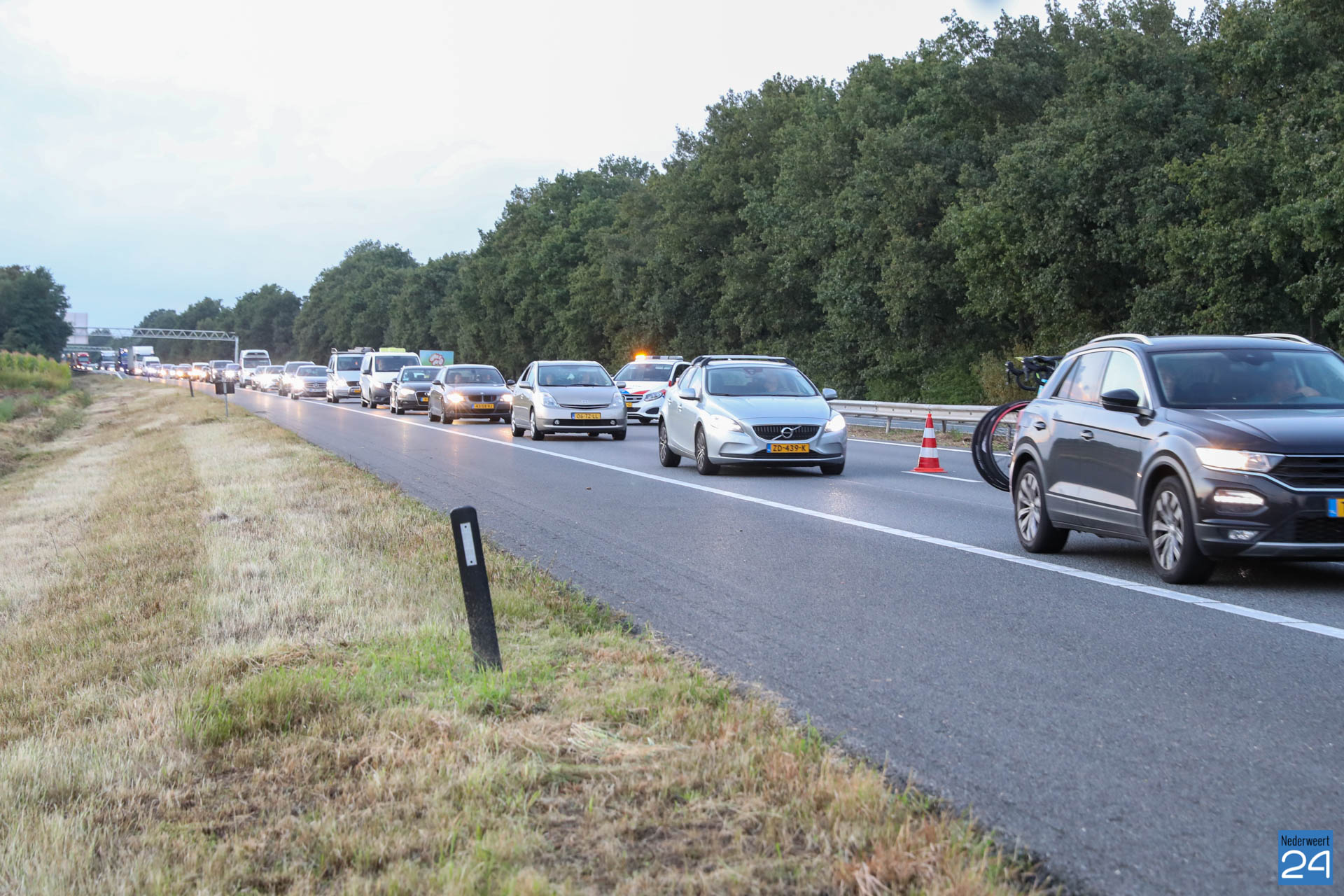 Een flinke file was het gevolg. De snelweg moest zelfs een tijdje afgesloten worden.