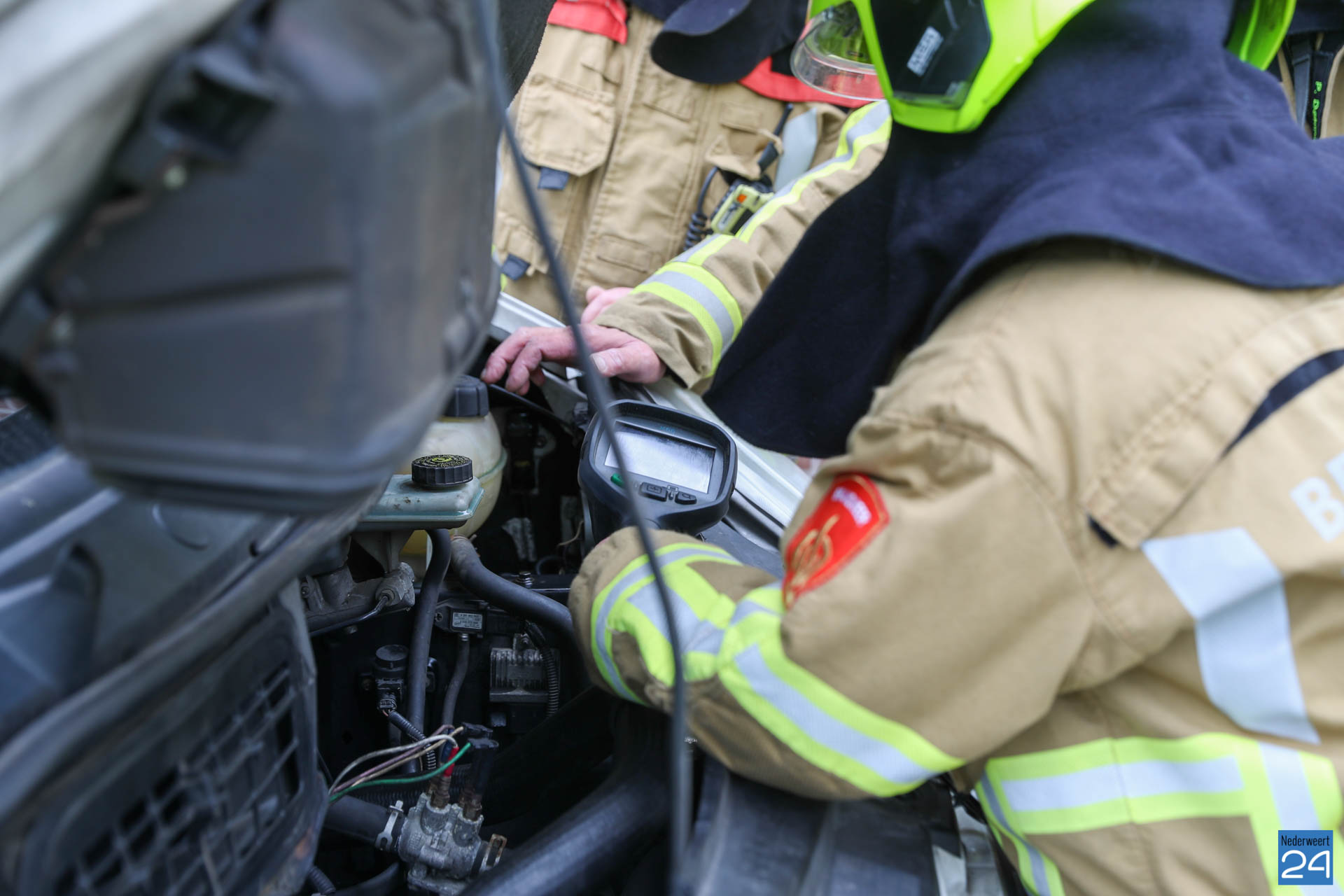 Toen de brandweer ter plaatse kwam was de rookontwikkeling weggetrokken. Van brand was geen sprake. Het voertuig wordt door een berger opgehaald.