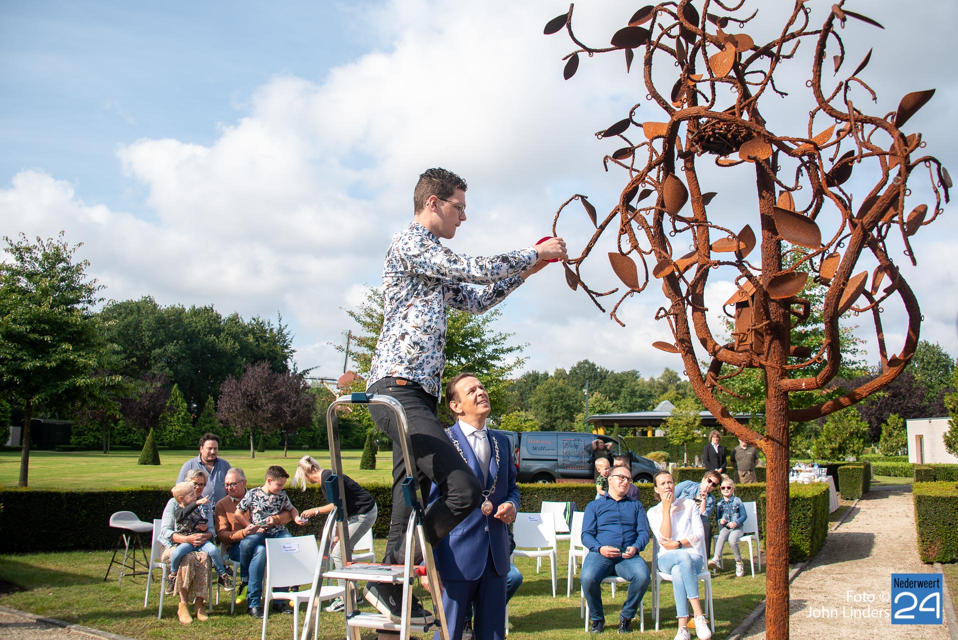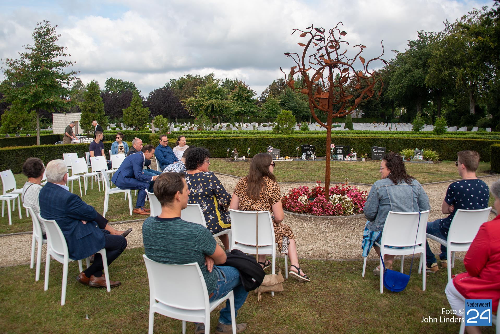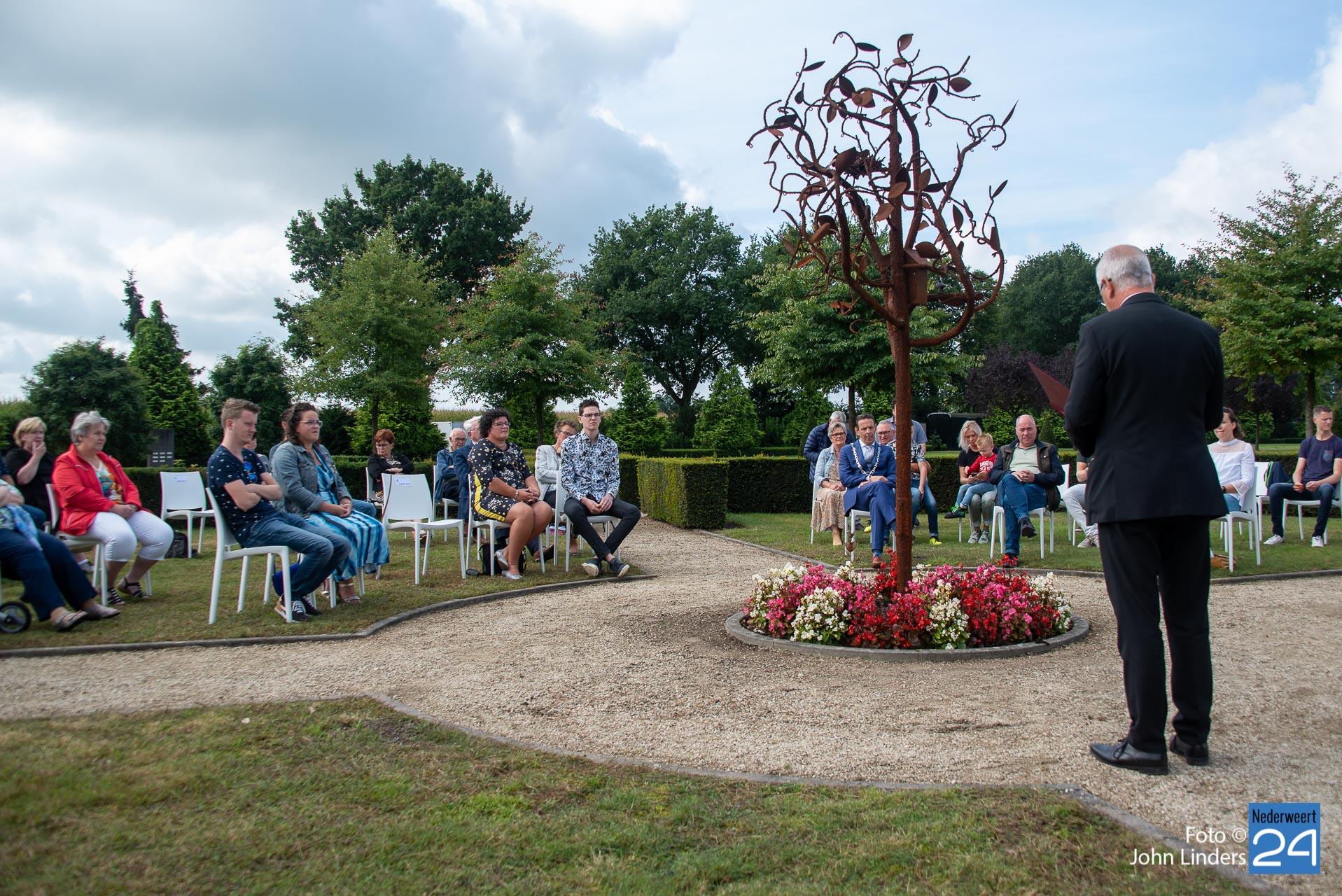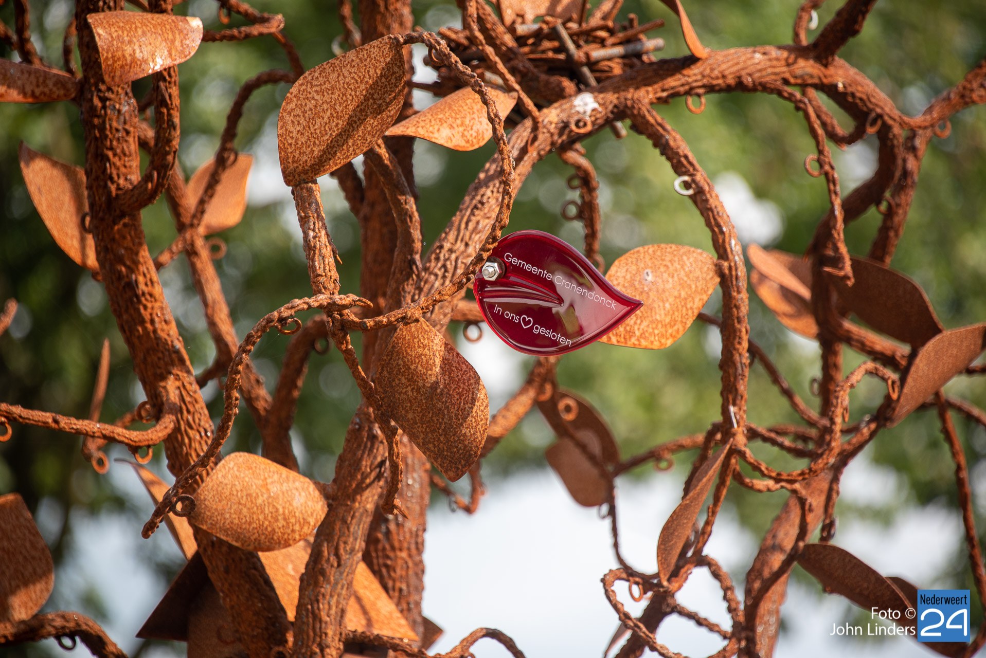 Dit gebeurde vandaag 12 september 2021. Jori met zijn familie, techniekdocenten van Het Kwadrant, enkele ouders van overleden kinderen, burgemeester Roland van Kessel en andere genodigde waren aanwezig tijdens het mooie moment van in gebruik name. Na een mooi woord van welkom en het verhaal van het ontstaan van de boom door Martin Horst was er het woord aan burgemeester Roland van Kessel. Ook was het de eer aan de burgemeester om samen met Jori het eerste glazen blad aan de boom te hangen met de tekst “in ons ♥ gesloten”. Hierna werden een voor een de ouders met familieleden uitgenodigd om ook een blad aan de boom te hangen ter herinnering aan de overleden dierbaren. Een emotioneel moment voor enkele ouders omdat er eindelijk erkenning was voor de nieuwe mooie plek van de graven en dat er een mogelijkheid geboden word aan ouders om hier een blad aan de boom te hangen om de overleden kinderen te herinneren.