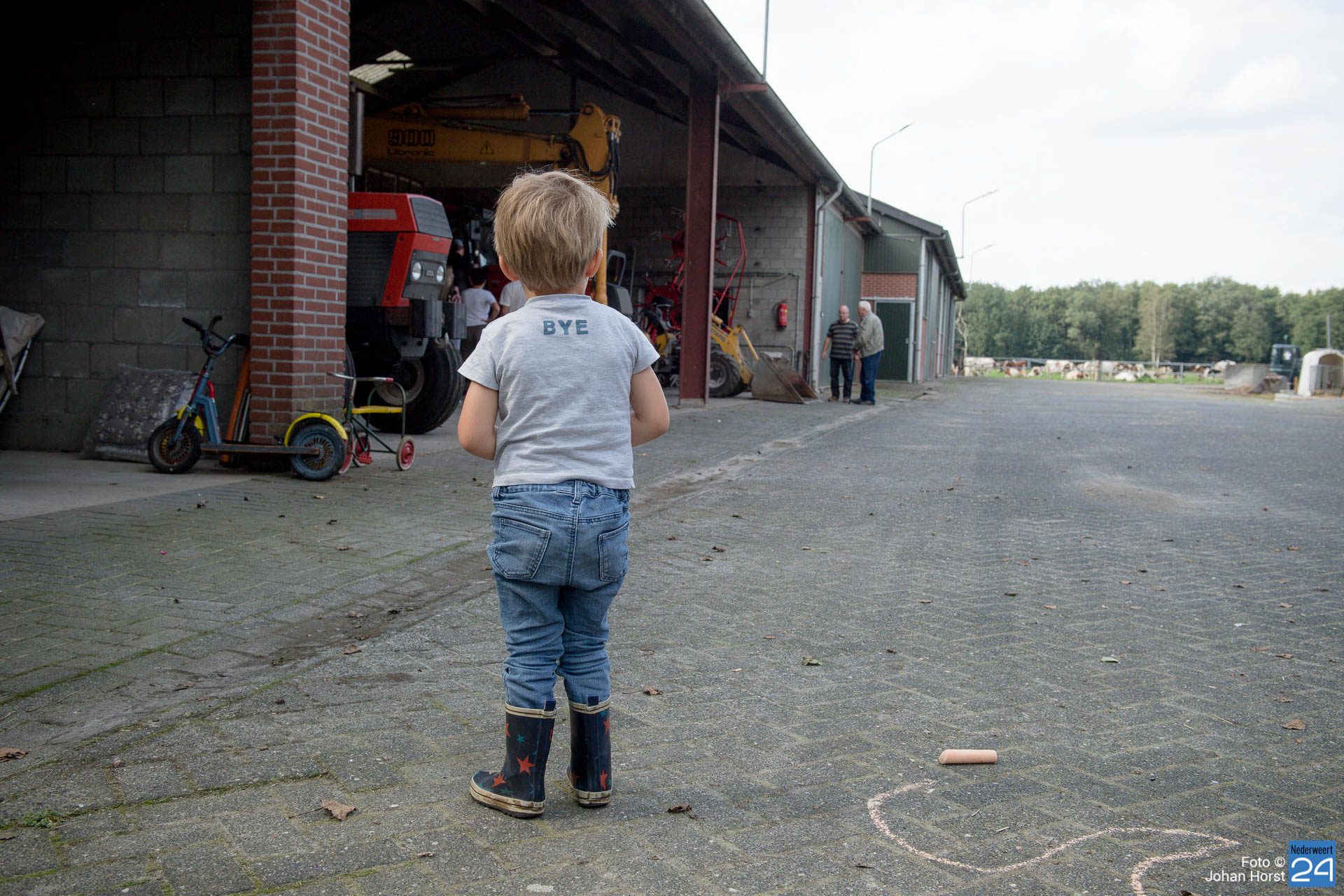 Toen hun ouders Koen en Monique besloten om het gezin aan te melden voor de Boeren van Nederweert Dag was de keuze dan ook snel gemaakt. Het werd het gemengde bedrijf van de familie Jacobs-Verhijden aan de rand van de Peel, diep in het buitengebied van Ospel. Daar hadden ze namelijk niet alleen kalveren en varkens, maar ook landbouwmachines. Reusachtige machines. Wie weet zou Bram met zijn broertje wel een ritje mogen maken.