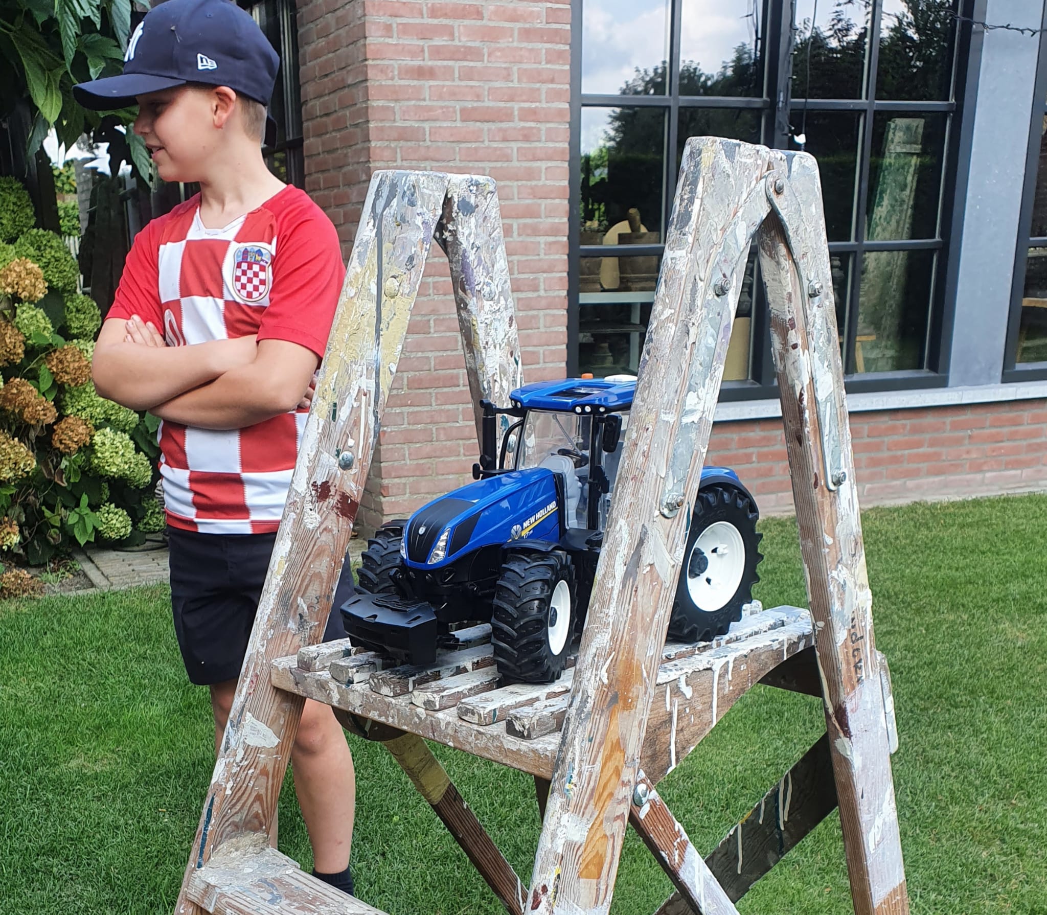 Vijf vingertjes oud weet Bram Slenders al wat hij later wil worden. “Loonwerker”, zo klinkt het stellig en geloof het of niet: de jonge Ospelnaar weet waar hij over praat. Thuis onder zijn bed staan de landbouwmachines – in speelgoedformaat – uitgestald. “Tractoren, een hakselaar, een ploeg, een zaaimachine en een gierton”, zo klinkt het trots. De knul speelt er naar hartelust mee, samen met zijn jongere broertje Stef. Matten dienen als akker.