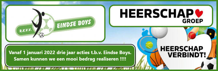 Naast de sponsoring kan Eindse Boys de komende jaren geld verdienen voor de vereniging, dit door deel te nemen aan de actie “Heerschap Verbindt”. Deze unieke lokale actie heeft tot doel om in een samenwerkingsverband elkaar te binden en ook in de toekomst verbonden te blijven. Eindse Boys is uiteraard blij met dit initiatief van Heerschap Groep en hoopt op een prettige samenwerking de komende jaren. Voorzitter Jac Beerens laat namens het bestuur weten ingenomen te zijn met dit initiatief, waardoor Eindse Boys de mogelijkheid krijgt enkele wensen te realiseren. Vanaf 1 januari 2022 vinden er 3 jaar lang diverse interessante acties plaats. Houd daarom de website en de overige mediakanalen van Eindse Boys goed in de gaten.