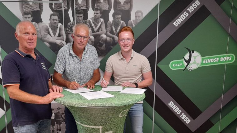 Voetbalvereniging Eindse Boys en Heerschap Groep hebben op donderdag 9 september 2021 een overeenkomst tot samenwerking getekend voor Heerschap Verbindt! De overeenkomst heeft een looptijd van 3 jaar en gaat in op 1 januari 2022. Voorzitter Jac Beerens (midden) tekent namens Eindse Boys samen met Tom van der Putten van Heerschap Groep de overeenkomst. Dit in het bijzijn van penningmeester Lambert Rietjens.