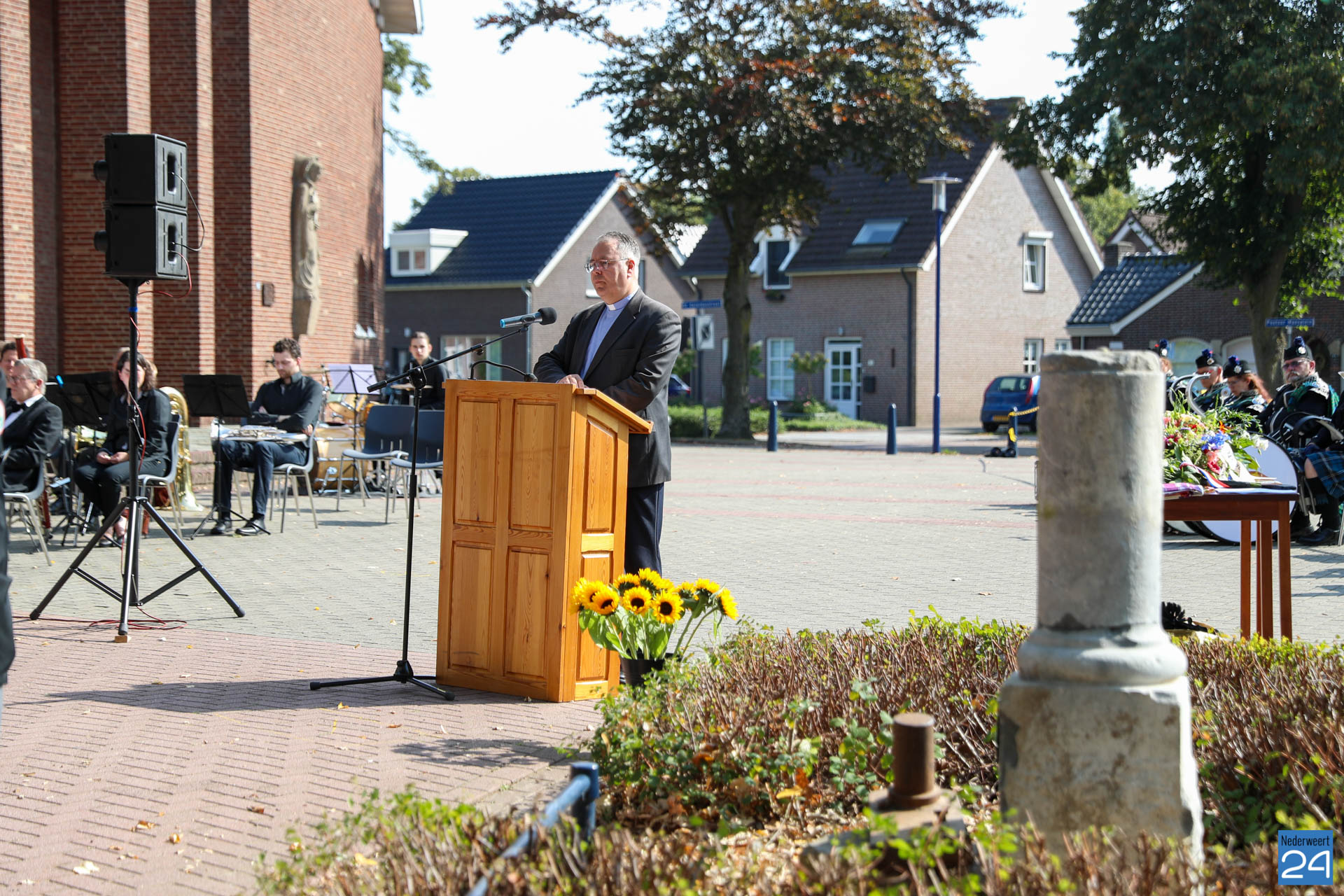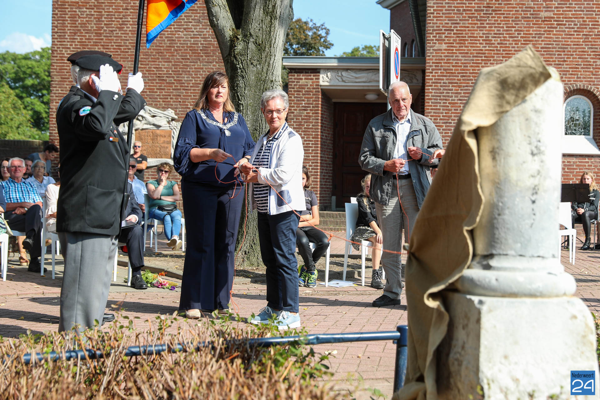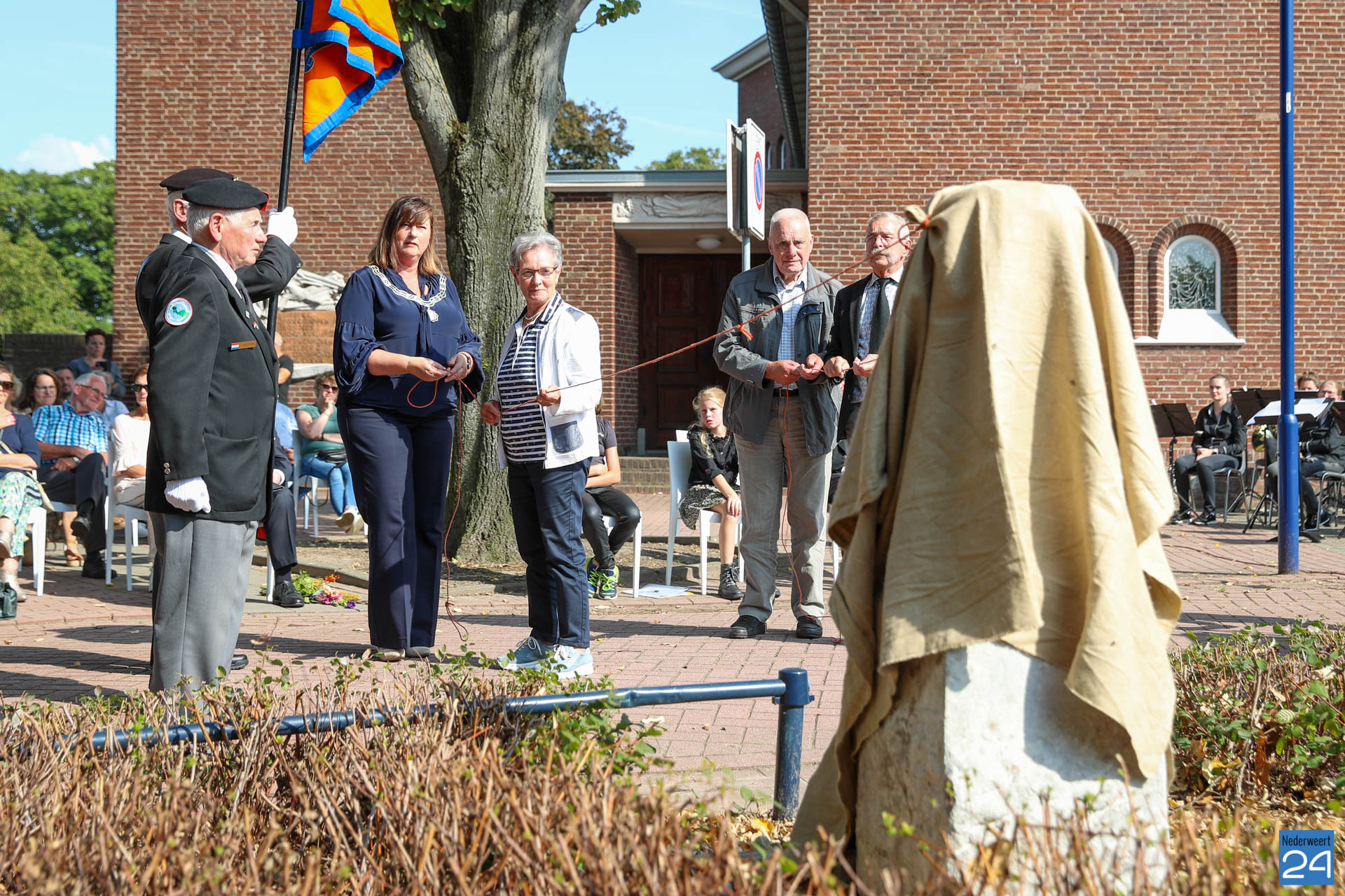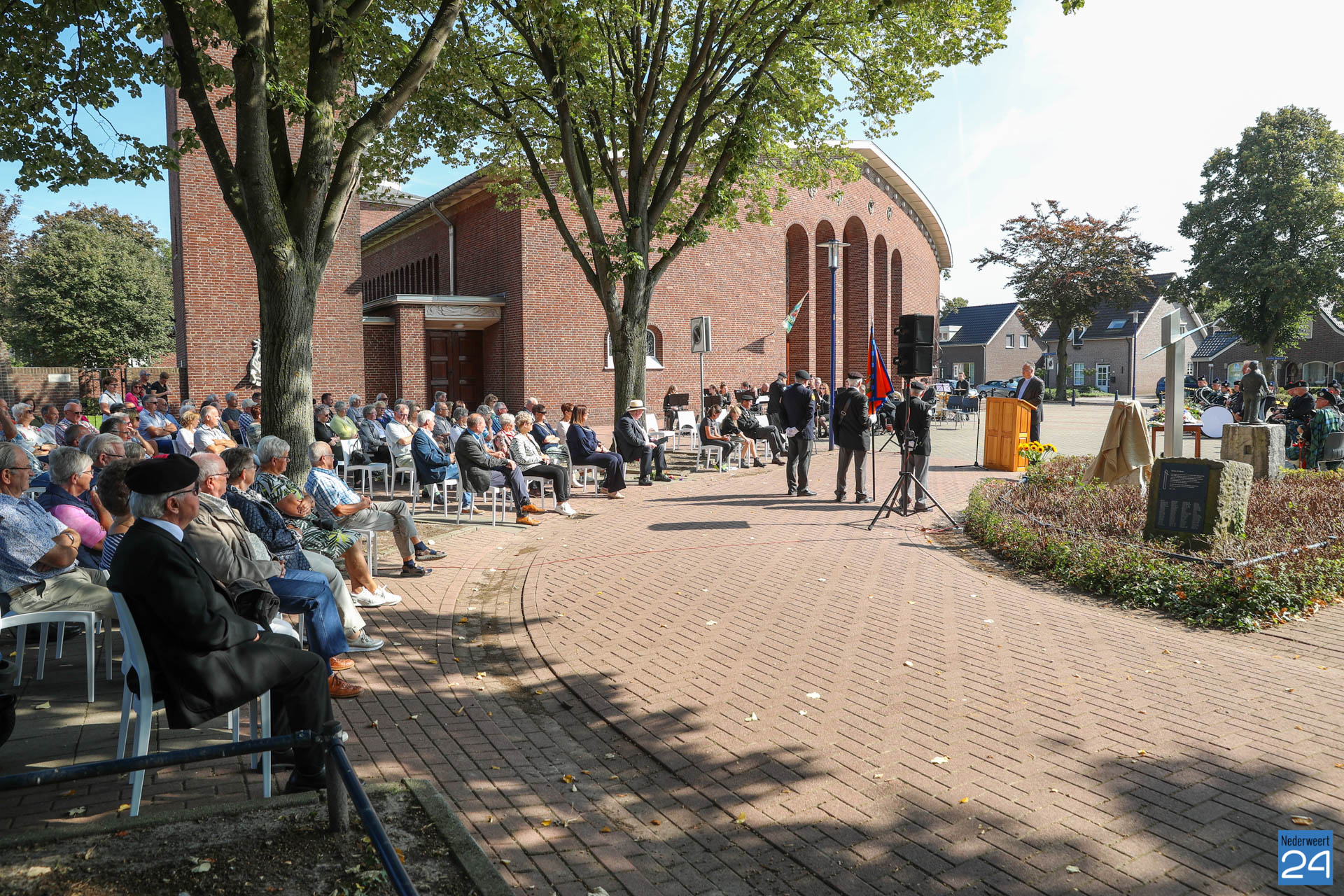 Op het Pastoor Maesplein in Nederweert-Eind is zaterdagmiddag een oorlogsgedenkteken onthuld. Diverse belangstellenden waren bij het bijzondere moment aanwezig.