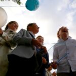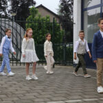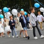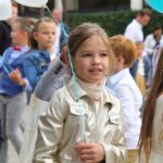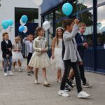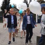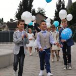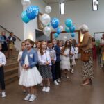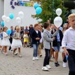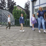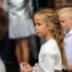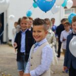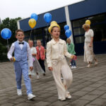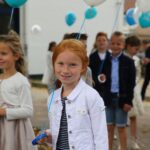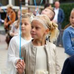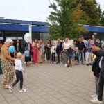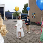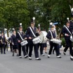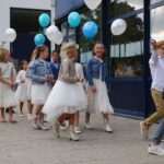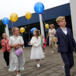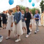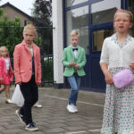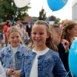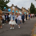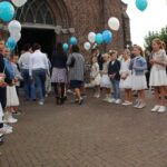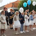Onder een stralende zon liep de groep kinderen vanuit basisschool De Schrank, onder muzikale begeleiding van harmonie Melodie der Peel, vanuit school naar de kerk.