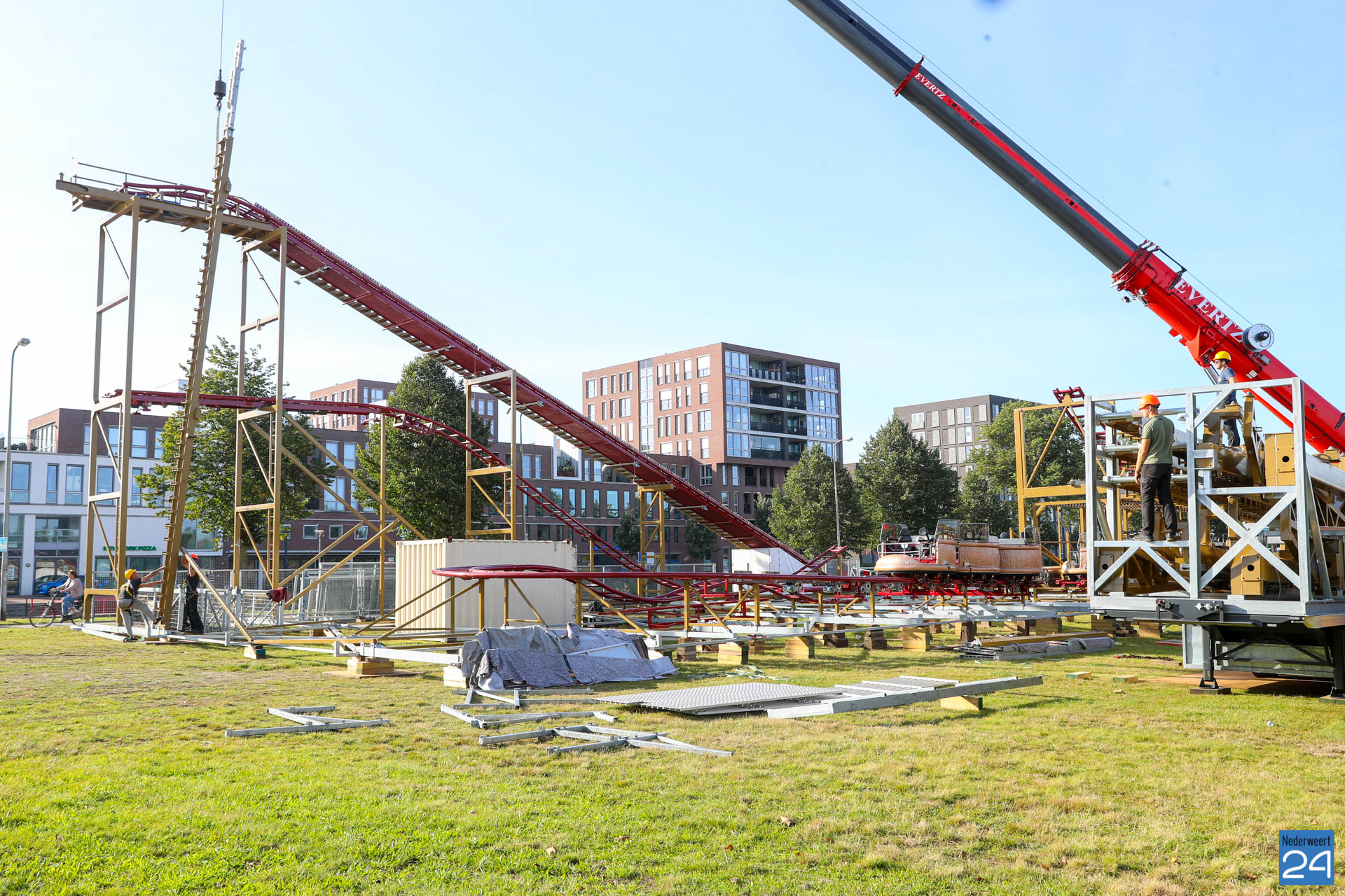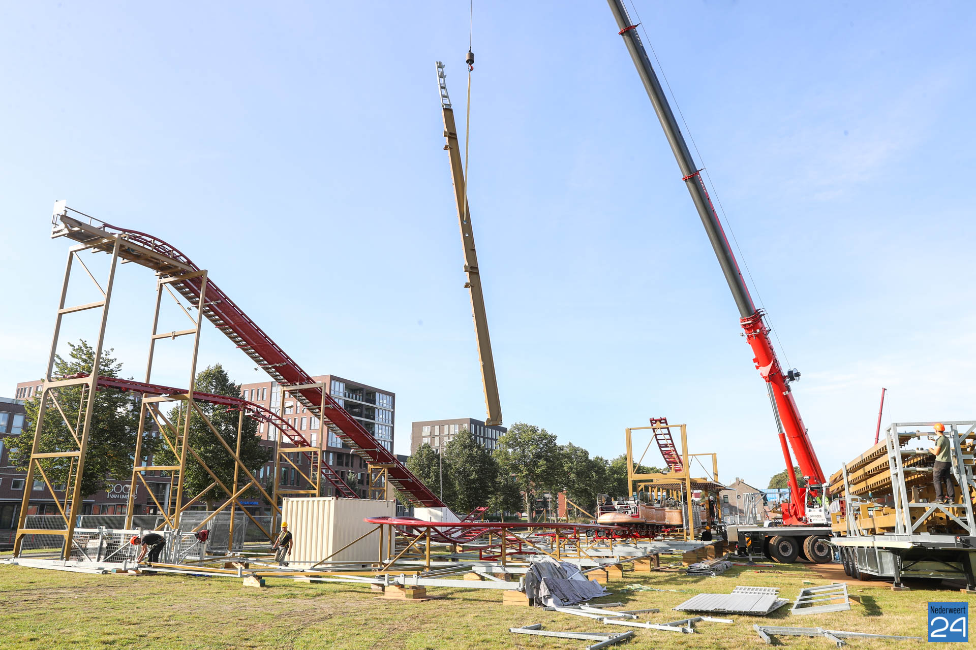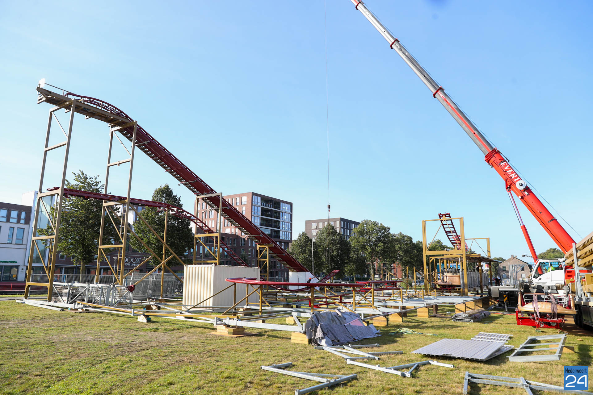 De opbouw van de Weerter kermis is maandagavond van start gegaan. Op het grasveld tegenover de Poort van Limburg is men begonnen met het opzetten van een grote achtbaan. De attractielijst is inmiddels ook bekend. Deze is te vinden op de website van de Weerter kermis.