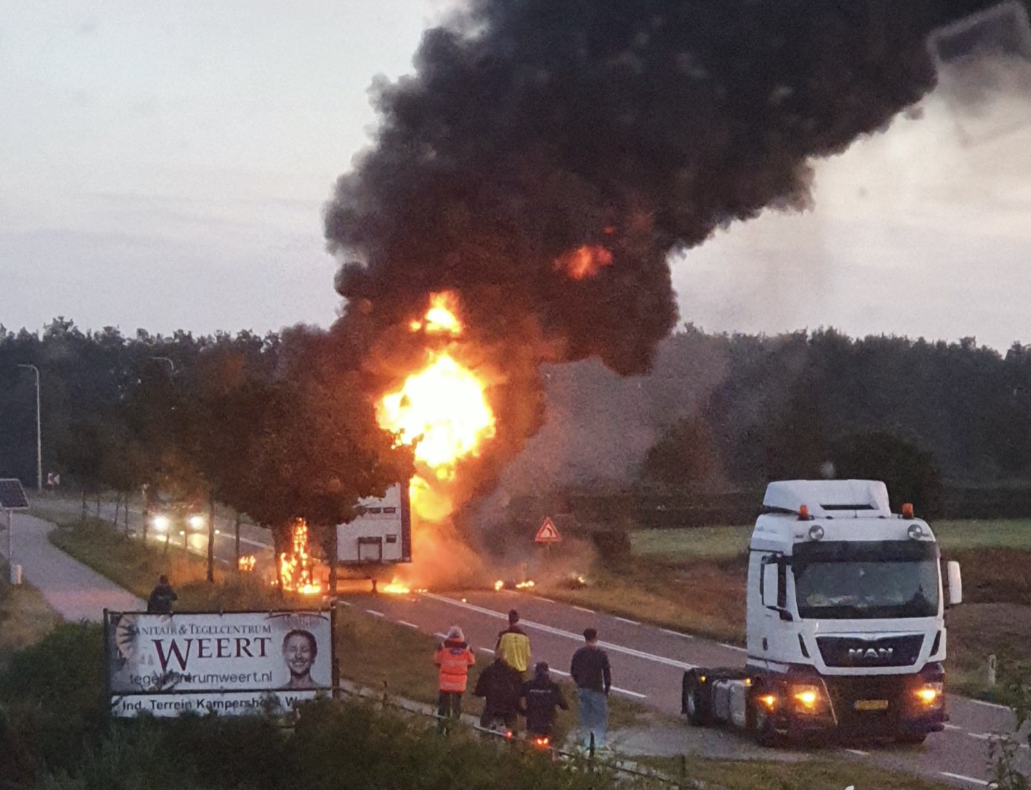 De vrachtwagen reed vanuit Weert richting Stramproy. Waarschijnlijk kreeg de oplegger een klapband tijdens het rijden waardoor er brand ontstond. De chauffeur stopte toen hij dit zag en ontkoppelde de brandende oplegger van de truck.
