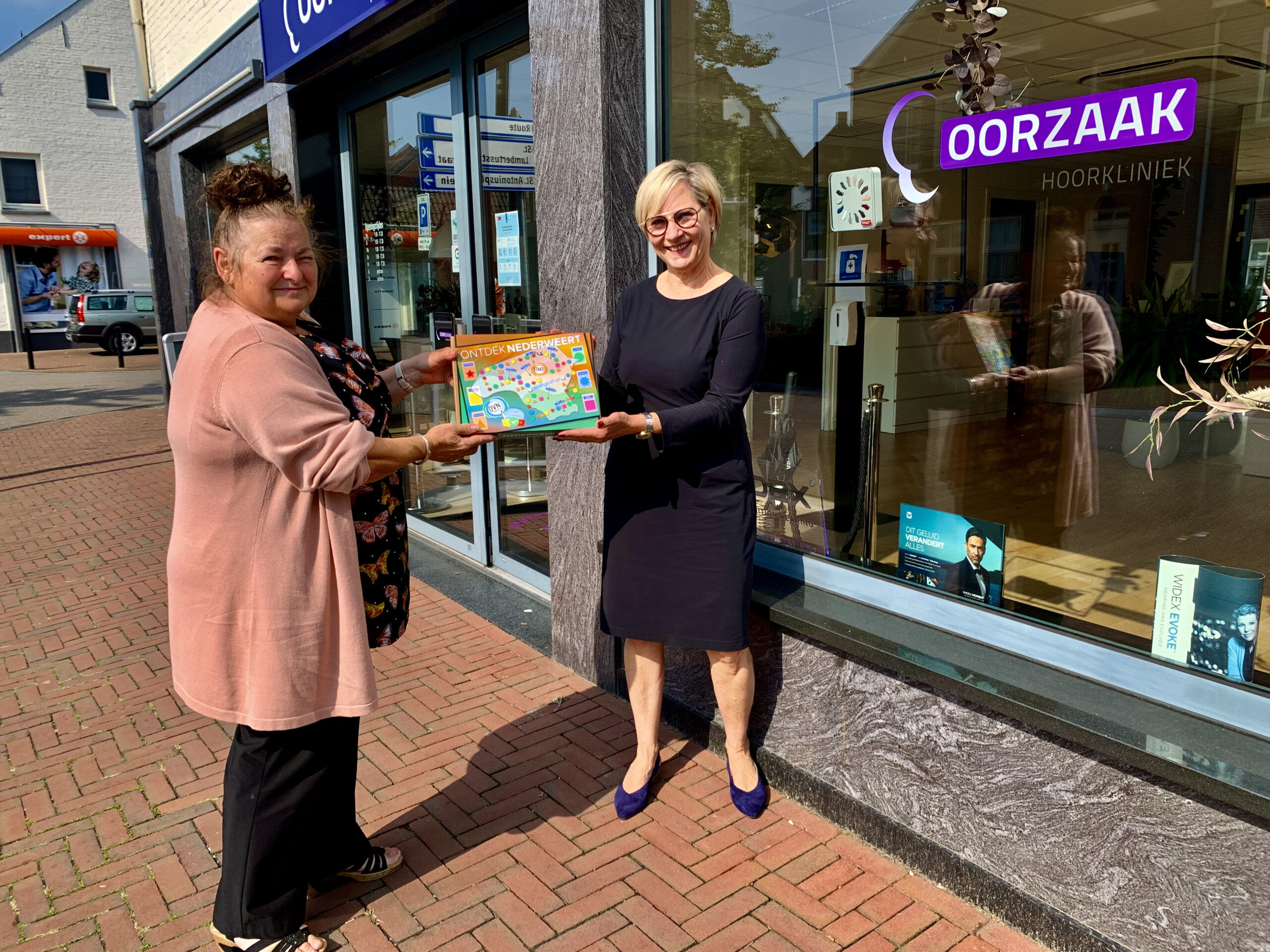 Oorzaak Hoorkliniek is het jongste lid van de Ondernemers Vereniging Nederweert (OVN). Speciaal voor deze gelegenheid overhandigde Marleen Linsen namens OVN een welkomstgeschenk in de vorm van het bordspel ‘Ontdek Nederweert’.