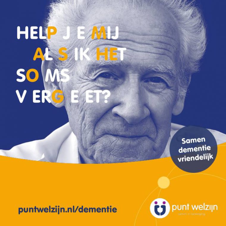 Meld je bij Punt Welzijn aan voor de training ‘GOED omgaan met dementie’ of kijk voor meer informatie op www.puntwelzijn.nl/dementie.