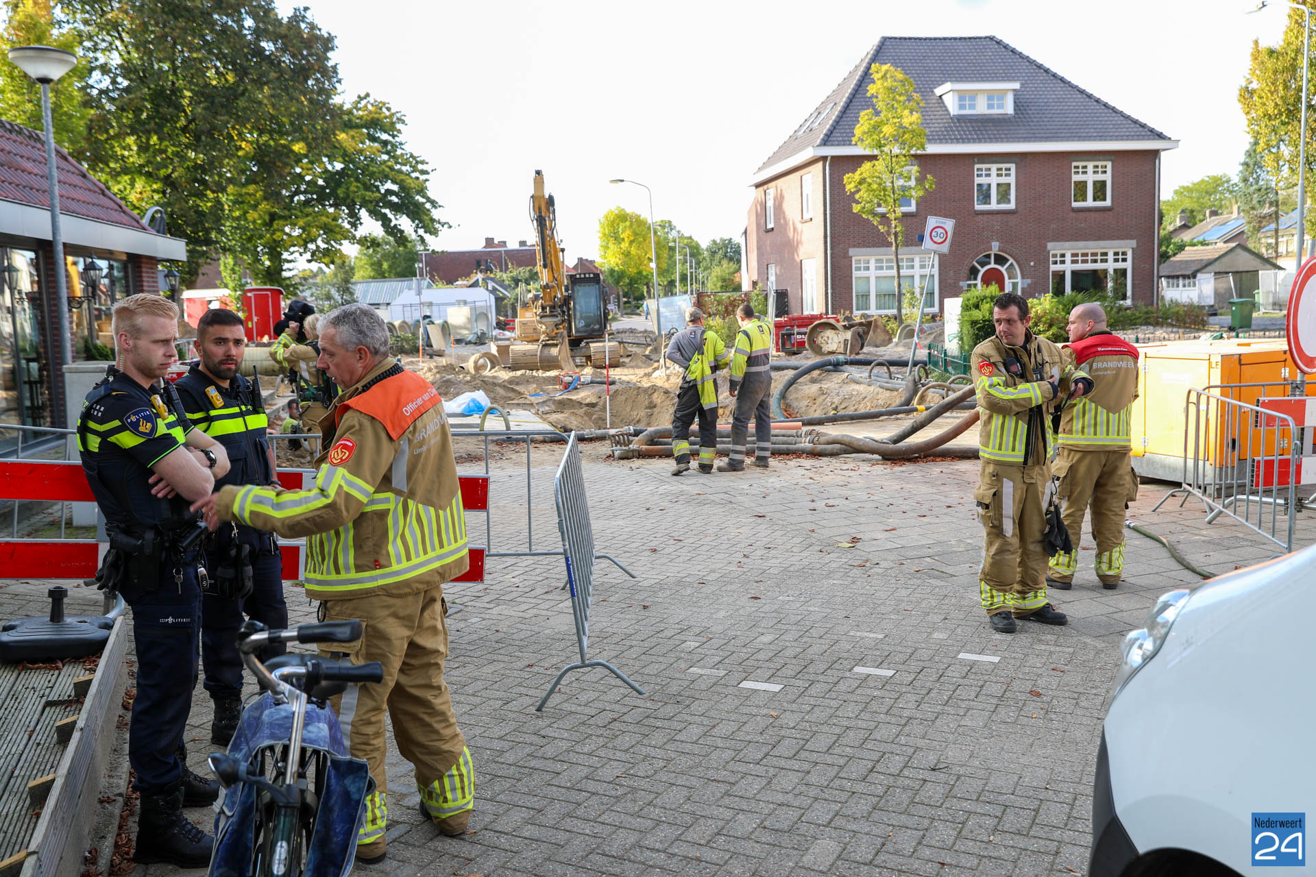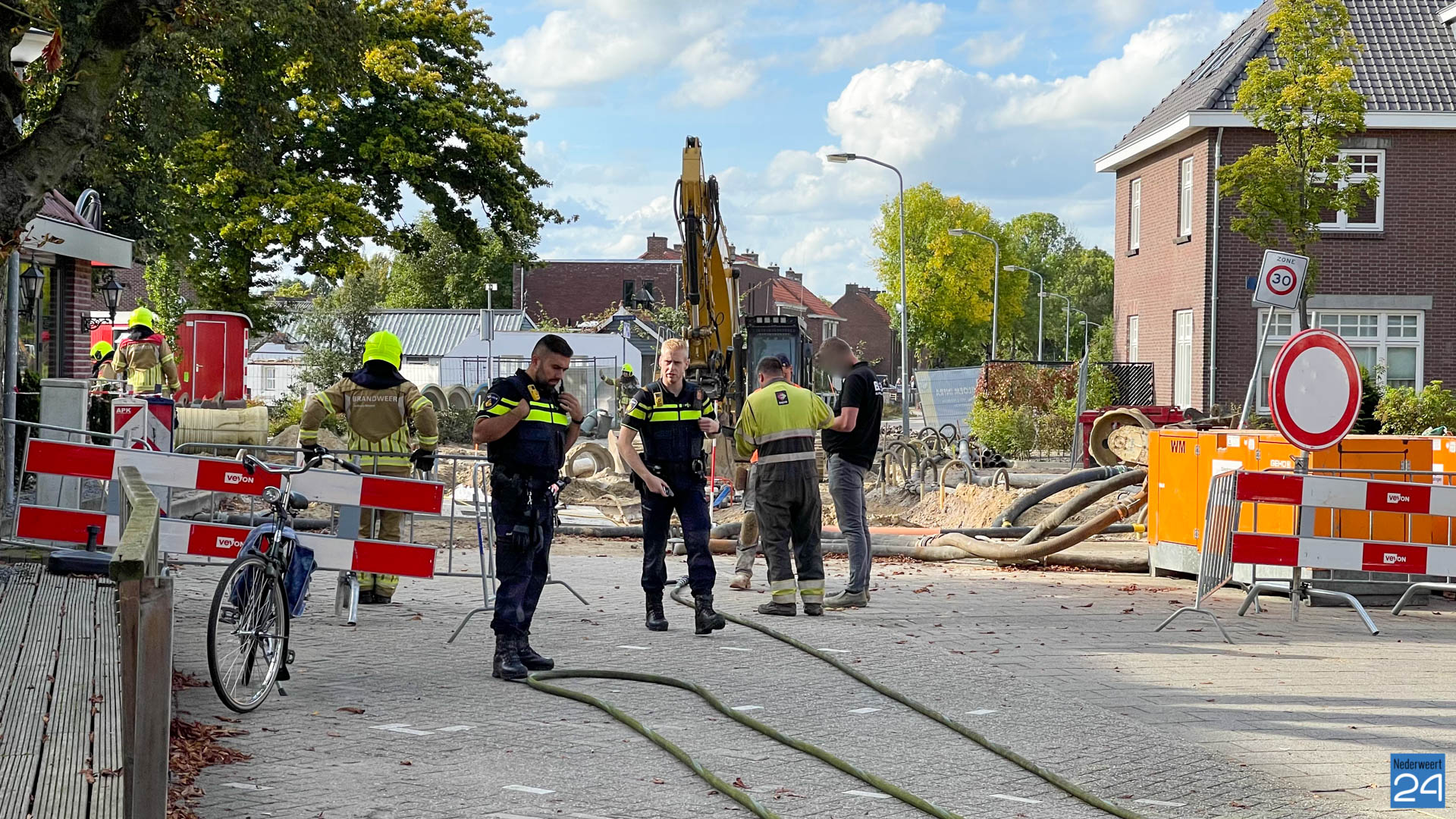 Het lek ontstond door graafwerkzaamheden. Het gas komt met veel kracht uit de defecte leiding. De lekkage is in de omgeving goed hoorbaar.