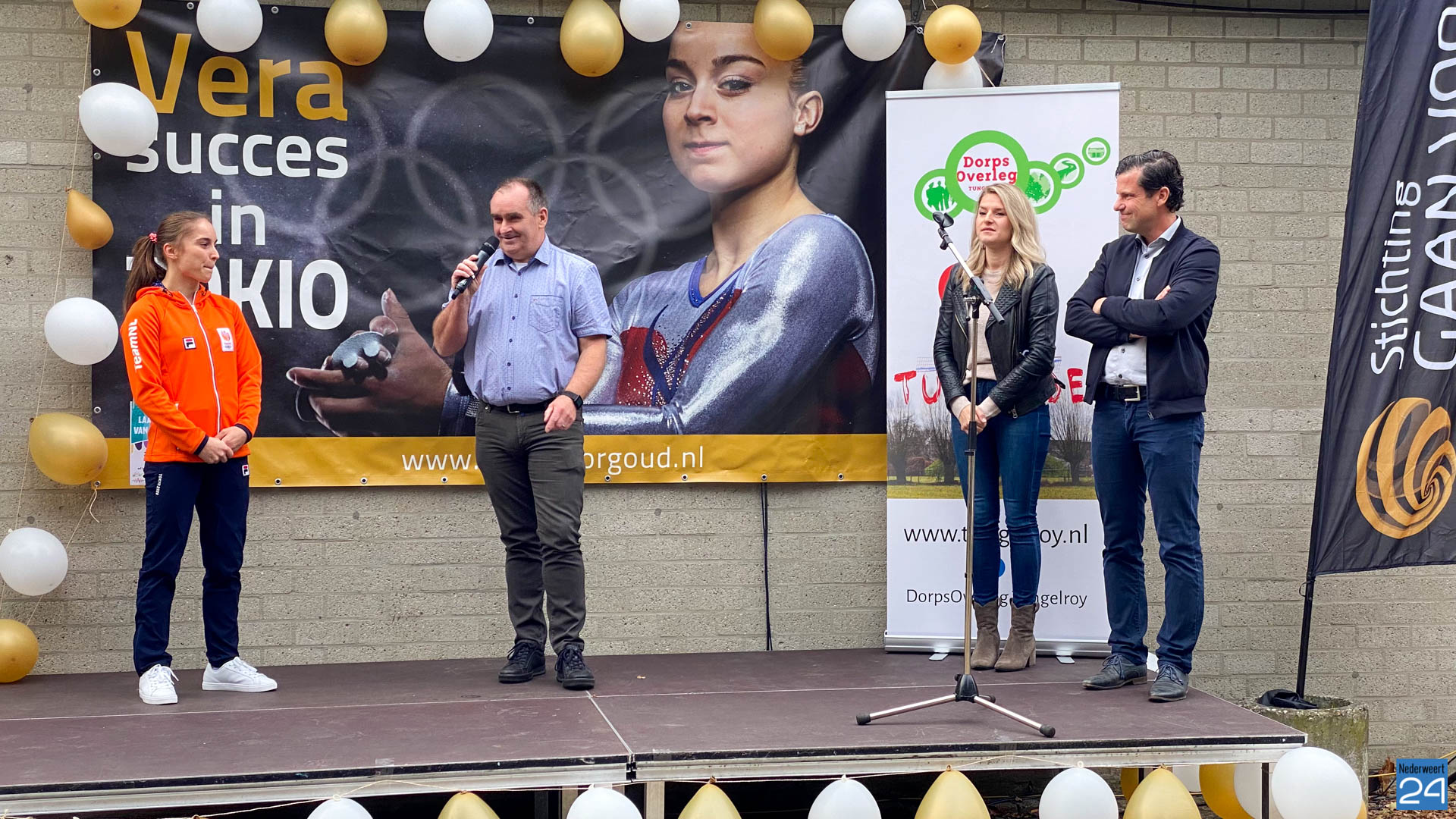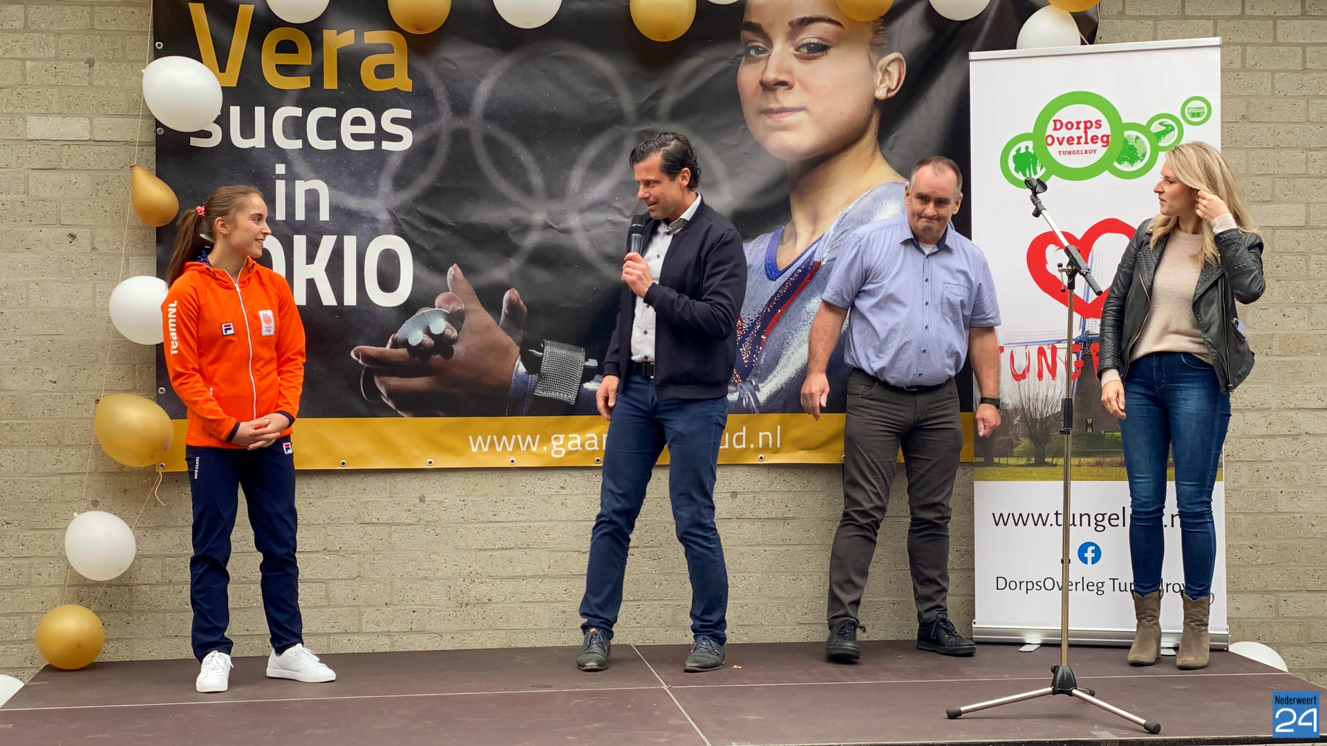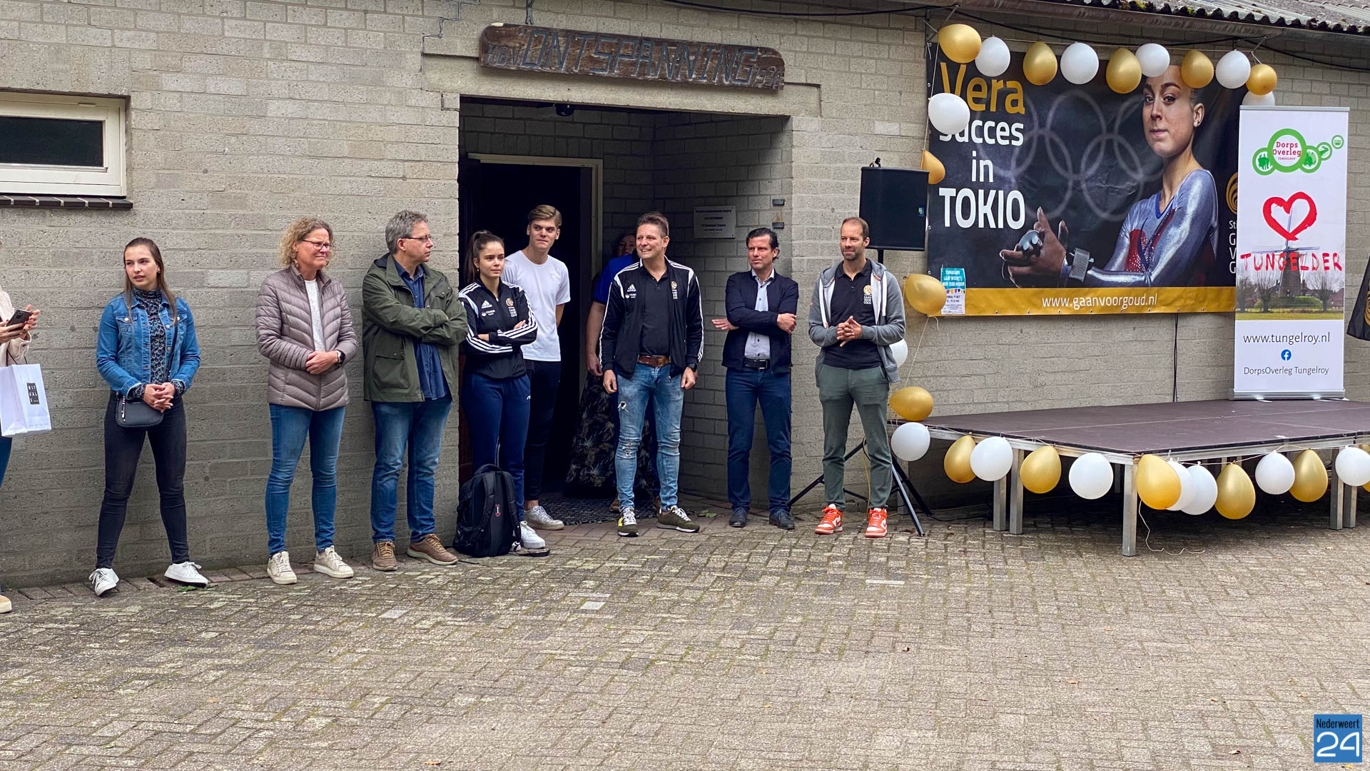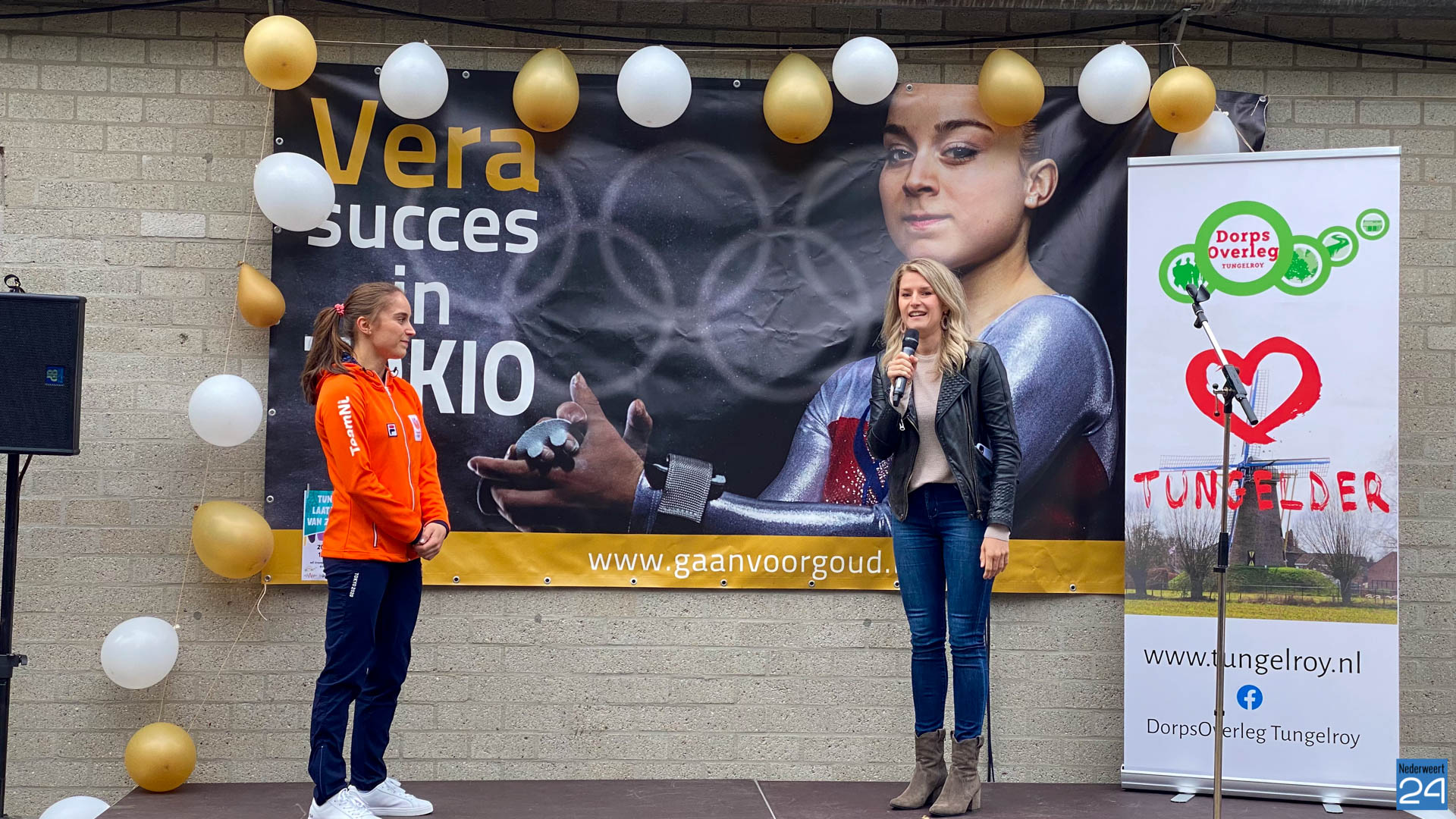 Vera werd thuis met een legertruck opgehaald, gevolg door een hele bups fietsende kids van Tungelroy. In een lange stoet gingen ze naar het gebouw van de handboog vereniging in Tungelroy. Daar wacht een groot gezelschap familie, vrienden en andere belangstellende haar op. Het Tungelroys orkest bracht een serenade aan de Olympische sporter, Tessa Geelen (wethouder sport van de gemeente Weert) en John Cardinaal (voorzitter van de stichting Gaan voor Goud) spraken lovende woorden uit over Vera en lieten haar vooral blijken hoe trots iedereen op haar is.