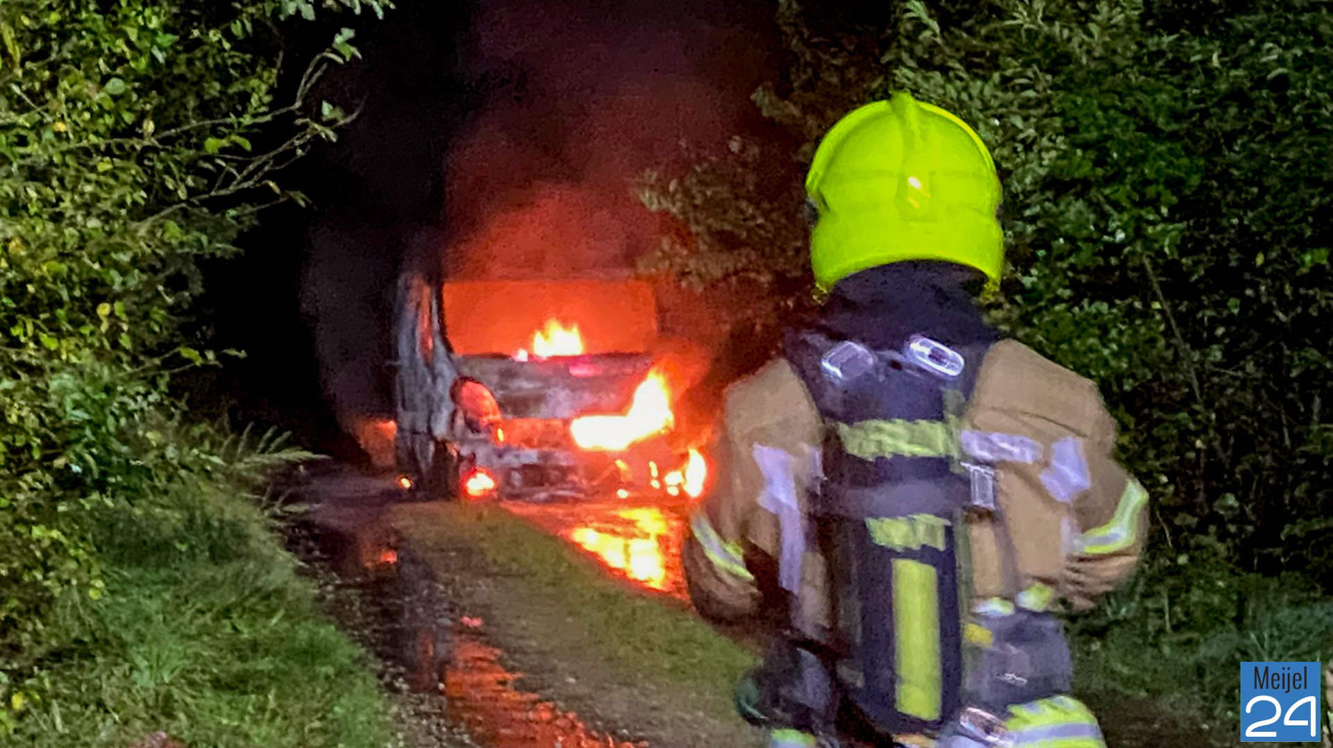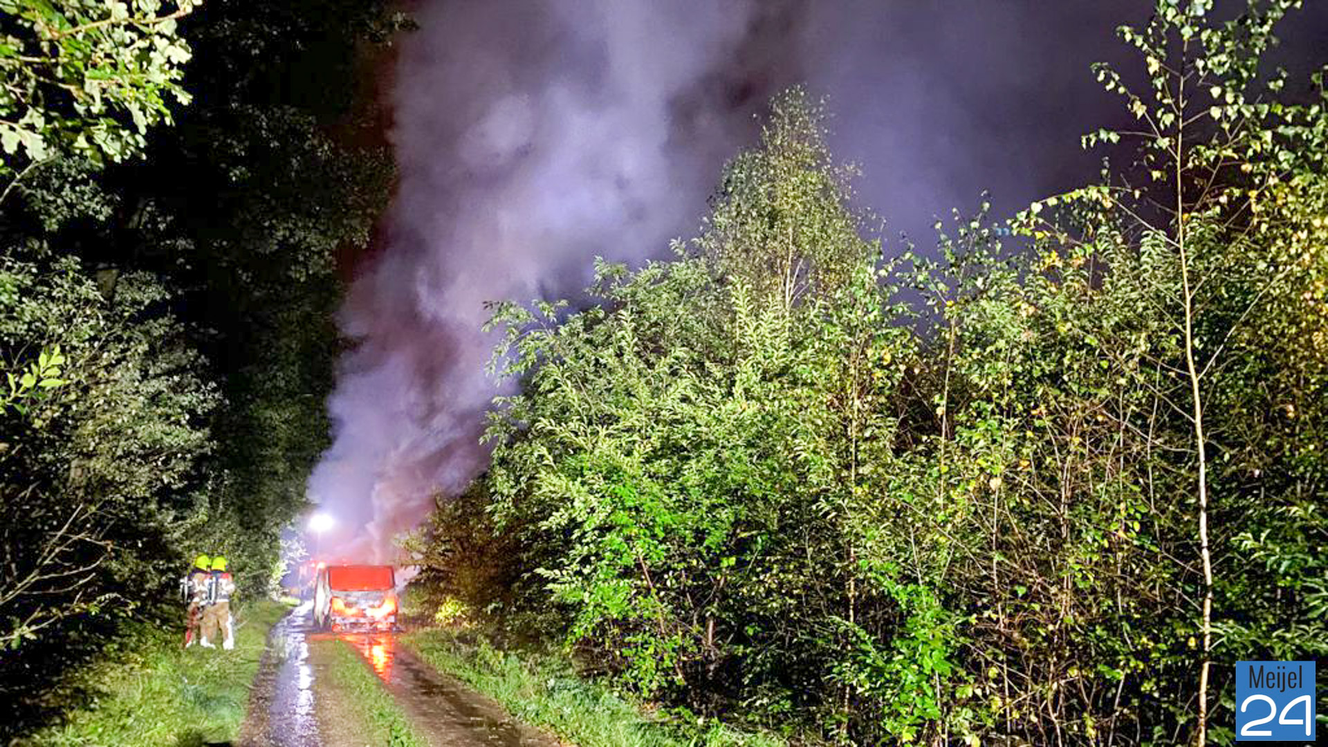 Zondagavond is er een brandende bestelbus aangetroffen in een bosgebied in de buurt van de Gesselseweg in Heibloem.