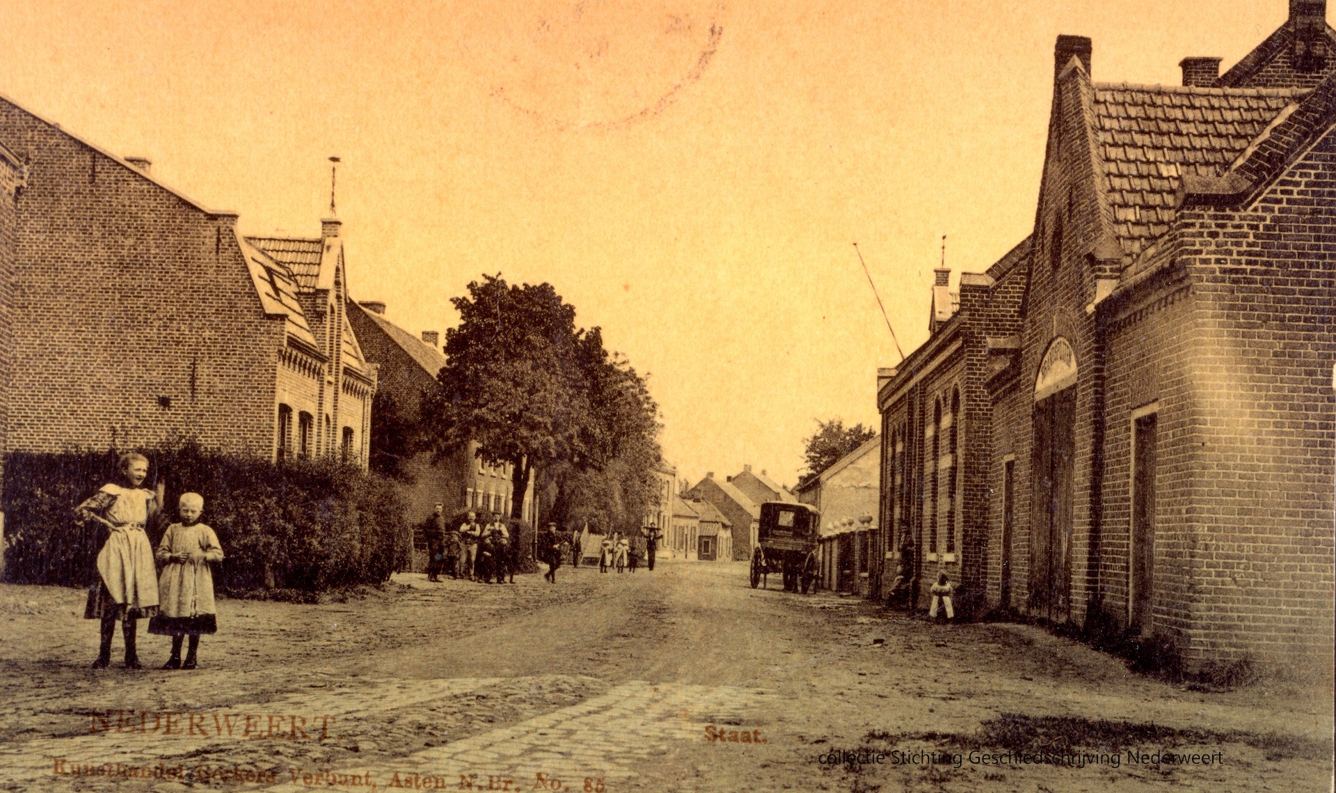 In de negentiende eeuw werd de brandweer van Nederweert beter georganiseerd. Een paar honderd Nederweertenaren hebben sindsdien met hart en ziel als lid van de vrijwillige brandweer zich verdienstelijk gemaakt voor de gemeenschap. Niet zelden met grote dapperheid en soms met gevaar voor eigen leven. In het begin had dat nog een hoog ‘Daar komen de schutters’-gehalte, maar stilaan gebeurde dat steeds professioneler. Aanvankelijk werden brandspuit, emmers en ladders gestald in het raadhuis, later in een huisje links van de kerktoren, naast ‘Tjeu van Siem’. Naarmate de professionaliteit groeide, verbeterde ook de accomodatie. In 1884 kwam er een officieel brandspuitenhuis annex gevangenis. Dat stond op de hoek van de Brugstraat en Staat en was een fraai gebouw. Het werd later door het gemeentebestuur helaas afgebroken en alleen de grote ijzeren sleutel is nog bewaard gebleven.