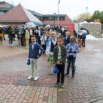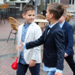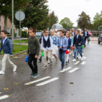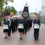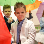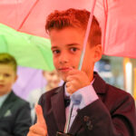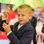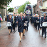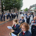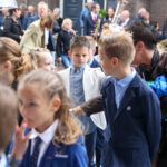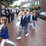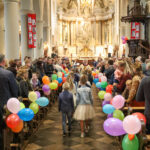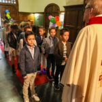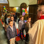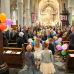 De communicanten, de papa’s en mama’s en de broertjes en zusjes liepen van daaruit, onder muzikale begeleiding van Harmonie St Joseph, naar de kerk waar de familie, vrienden hen stond op te wachten. Meneer pastoor kwam naar buiten om de kinderen te verwelkomen.