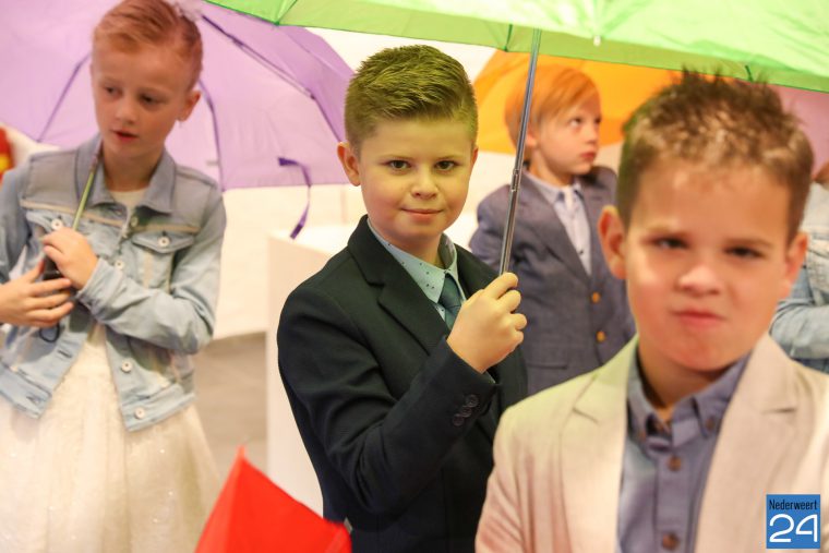 Zondagmorgen liepen de communicanten van Nederweert vanaf het Raadhuisplein naar de St Lambertuskerk.