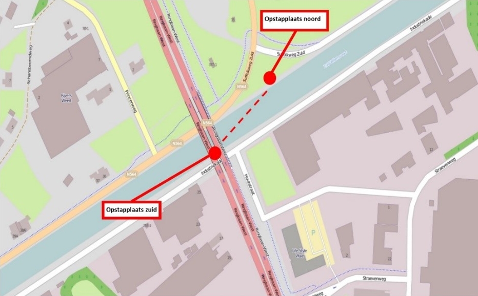 Van 4 oktober tot en met 11 oktober is het fietspad over de brug tussen 7.00 en 19.00 uur afgesloten. Fietsers kunnen dan gebruik maken van een tijdelijk veerpontje dat naast de brug vaart tussen de Industriekade (bij Limagrain) en de Suffolkweg-Zuid. De opstapplaats vindt u aan de zuidkant van de Zuid-Willemsvaart onder de brug en aan de noordkant van de Zuid-Willemsvaart tegenover de truckersparkeerplaats. Het veerpontje vaart elke dag continu van 7.00 tot en met 19.00 uur. Tussen 19.00 en 7.00 uur kan wel gebruik worden gemaakt van het fietspad.