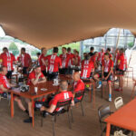 Ondanks dat het goed toeven is op het dakterras verzamelen de groepen zich weer voor de terugreis naar Weert, nog ruim 50 km op de trappers.