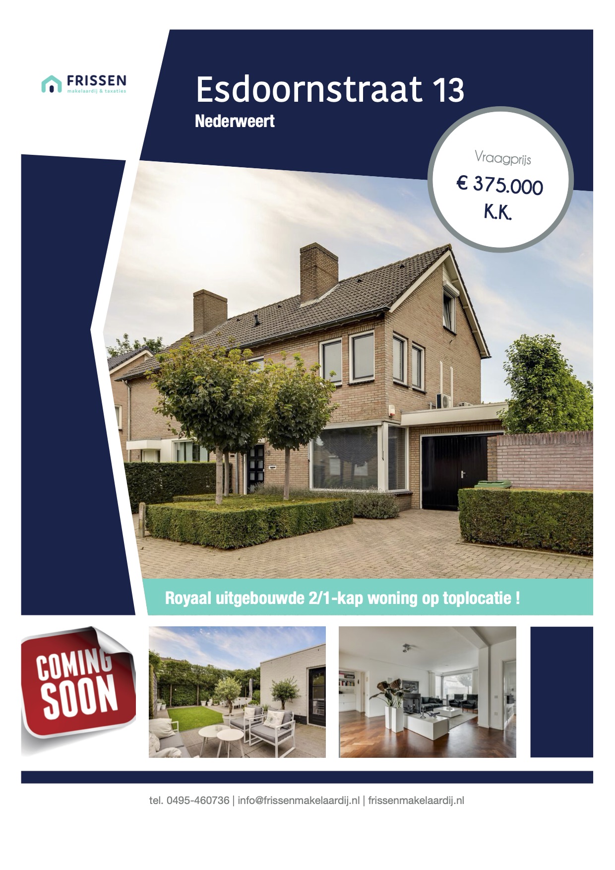 Wil je weten wat jouw woning waard is? Heb je plannen om in Nederweert of omgeving een huis te kopen of wil je juist jouw woning verkopen? Dan ben je bij Frissen Makelaardij & Taxaties aan het goede adres. Marco Frissen kan je daarbij in het gehele traject begeleiden. Wil je jouw eigen woning verkopen en kun je ondersteuning gebruiken op onderdelen, ook dan helpt hij je graag.