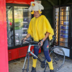 Donderdagmiddag fietsten ‘pluimveehouders’ door Nederweert en deden onder andere het bedrijf Happy Ei aan van Henk Stals. Hier stapte Anja Koolen op de bakfiets om een stuk mee te fietsen. Eerste een borreltje en vervolgens op de pedalen…..