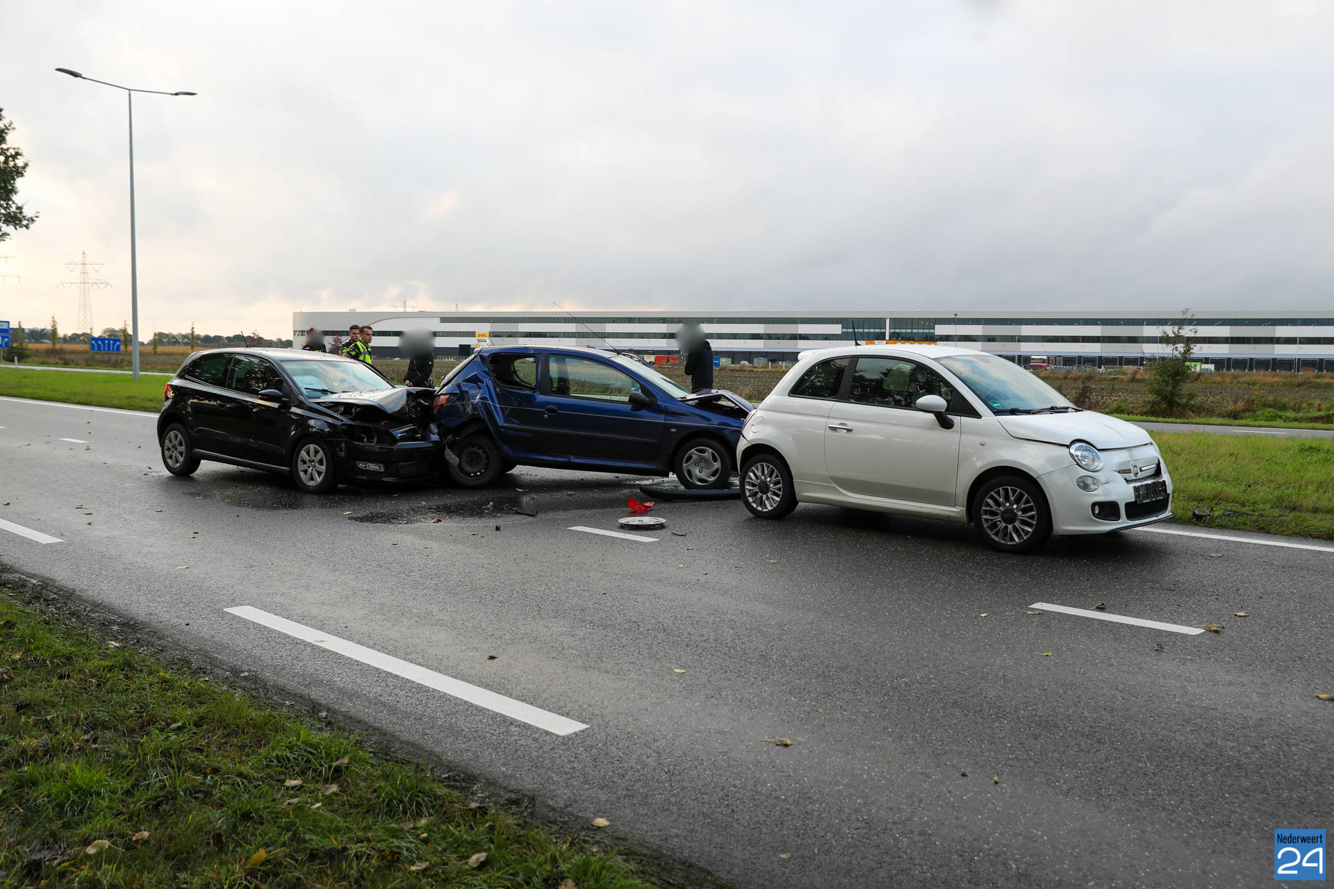 Vier auto’s botsen op elkaar op de Ringbaan-Noord tussen de verkeerslichten van Kampershoek en de verkeerslichten bij het A2-viaduct. De voertuigen reden, tijdens de drukke avondspits, vanuit Weert richting Nederweert. Door onbekende oorzaak zijn de auto’s achter op elkaar geknald.