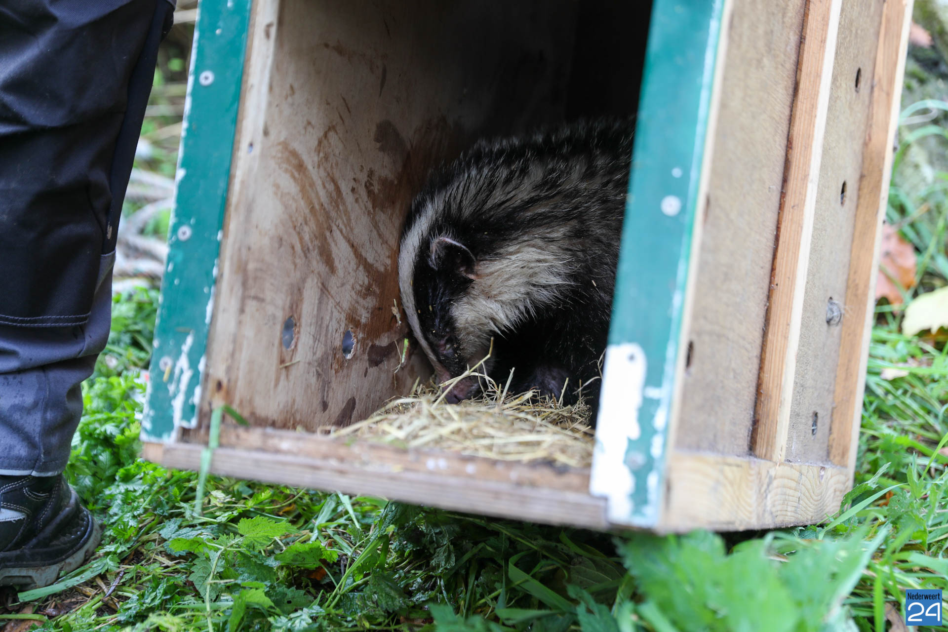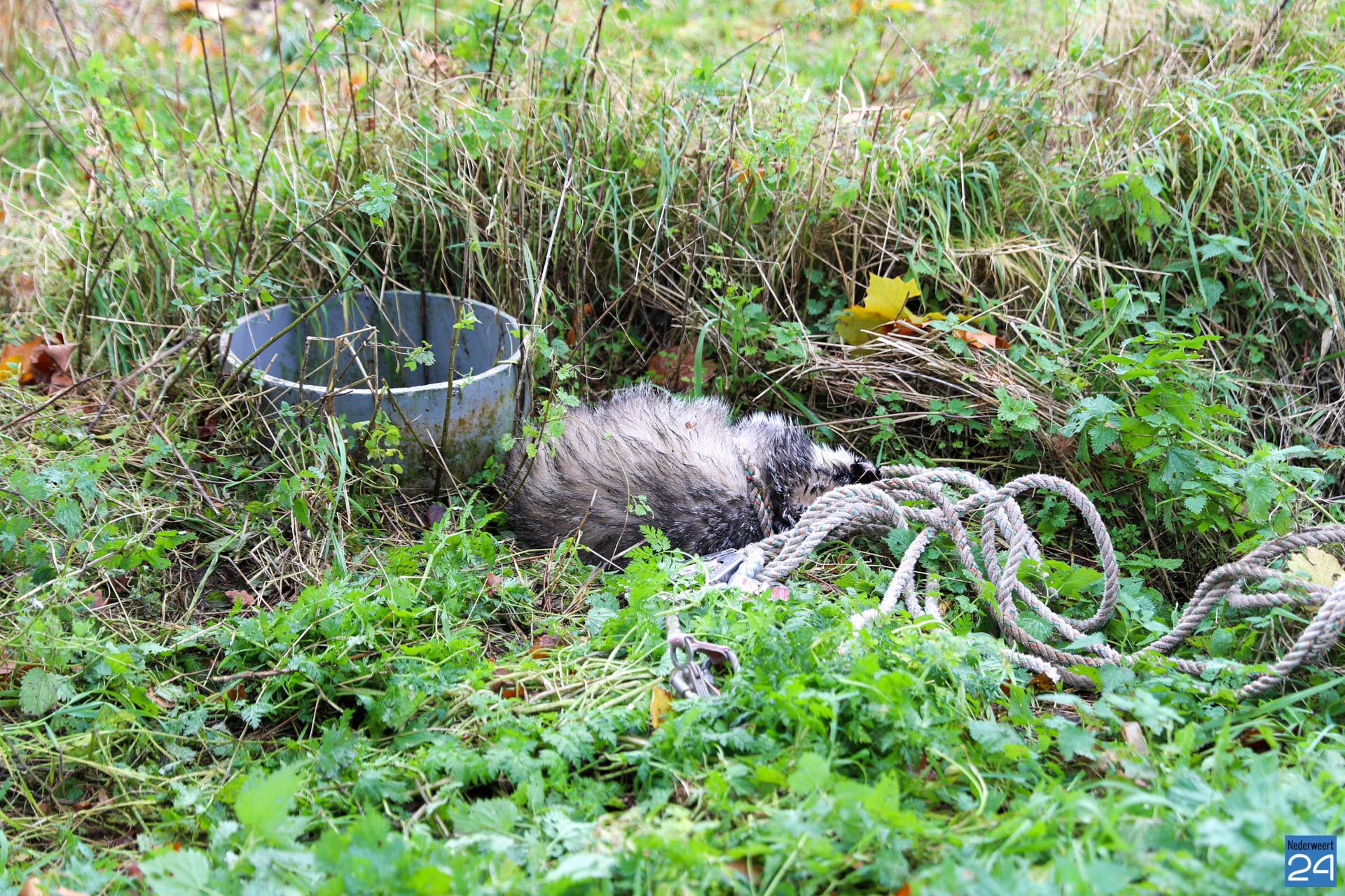 Zondagmiddag heeft de bewoner van een woning aan de Venloseweg (N275) in Nederweert een das gered uit een waterput op een akker achter zijn woning.