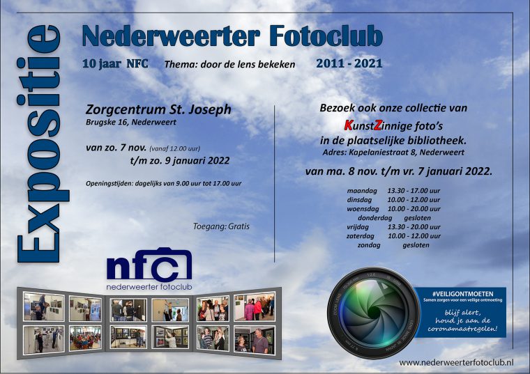 De 9de expositie in het 10-jarig bestaan van NFC is van start gegaan. Van zondag 7 november 2021 tot en met zondag 9 januari 2022 vind de expositie “Door De Lens Bekeken” zoals gebruikelijk plaats in Zorgcentrum St. Joseph.