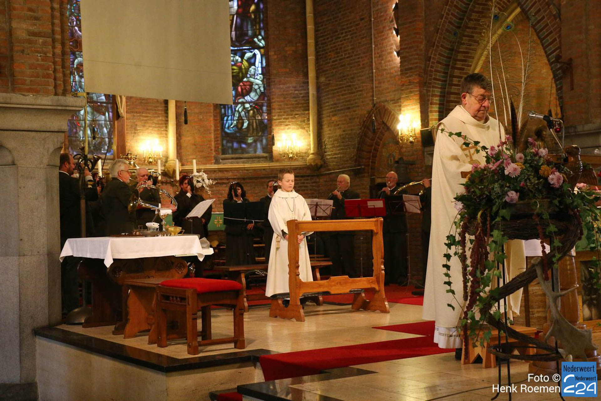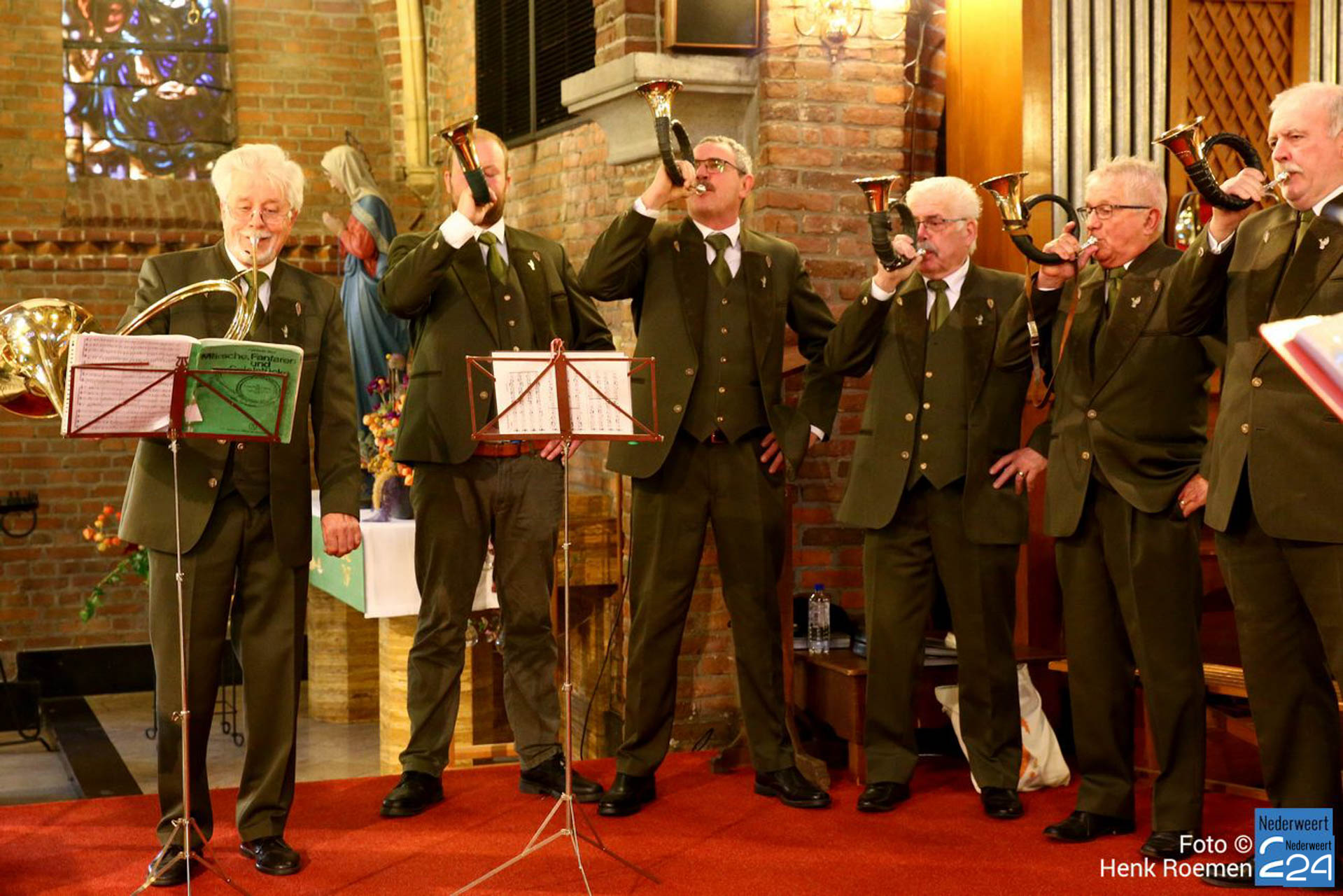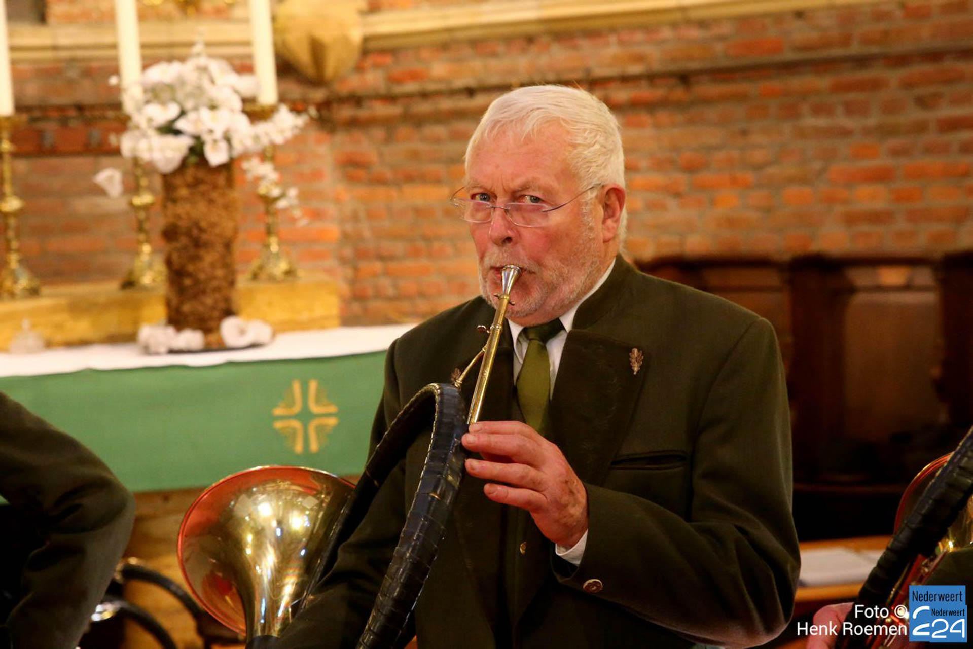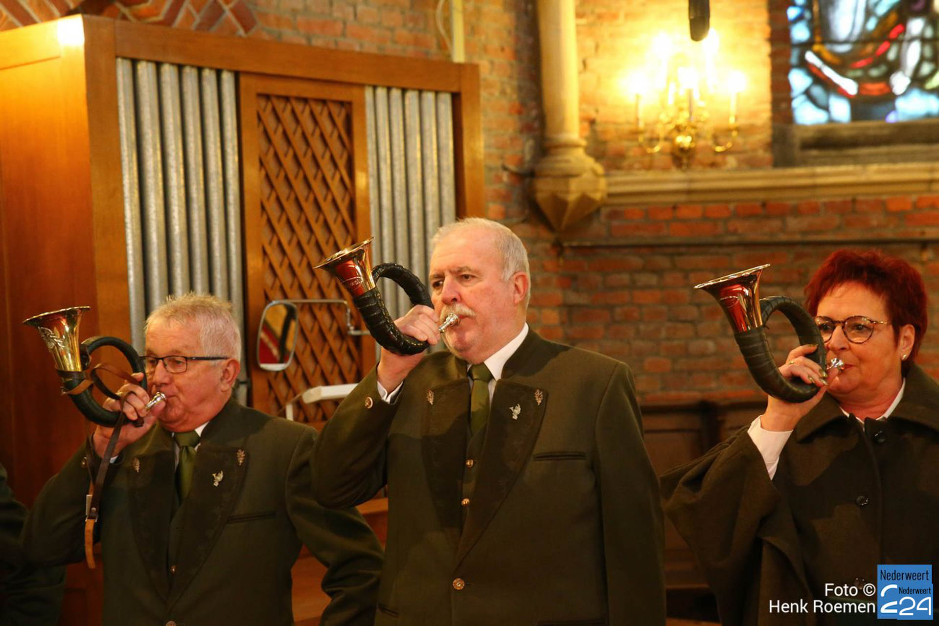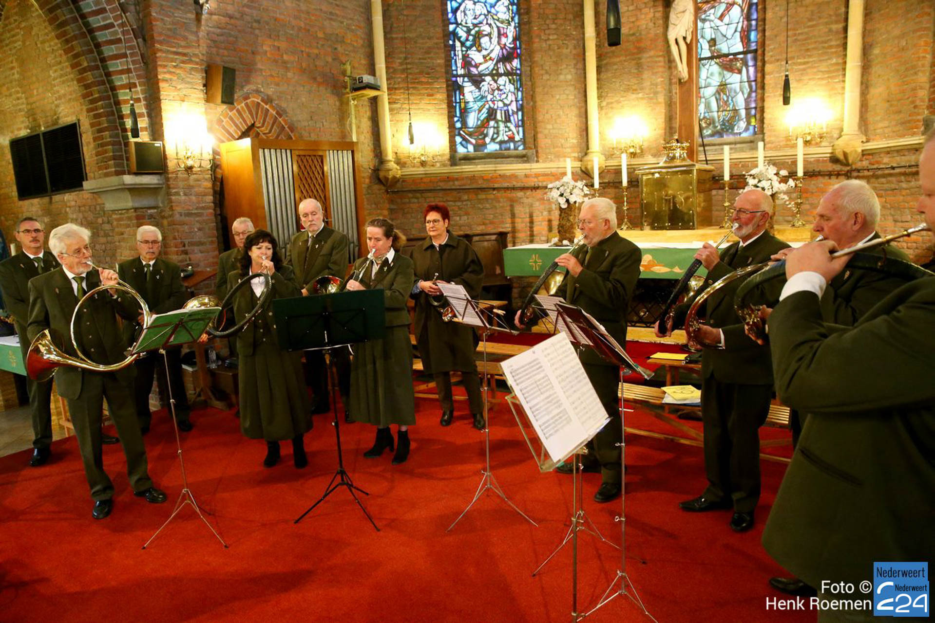 Pastoor Andre Koumans ging in deze viering voor en de Jachthoornblazersgroep Midden-Limburg luisterden de H.Mis muzikaal op. De jager / drijver kwamen in het groen’ en drijvers hadden hun drijverstok mee. Ook de jachthonden waren harte welkom.