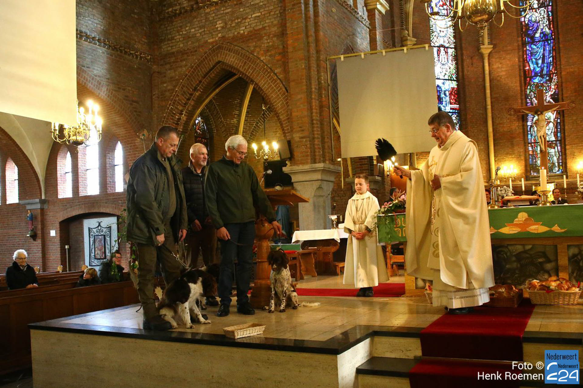 St. Hubertusviering in Ospel met jachthoornblazers en jachthonden