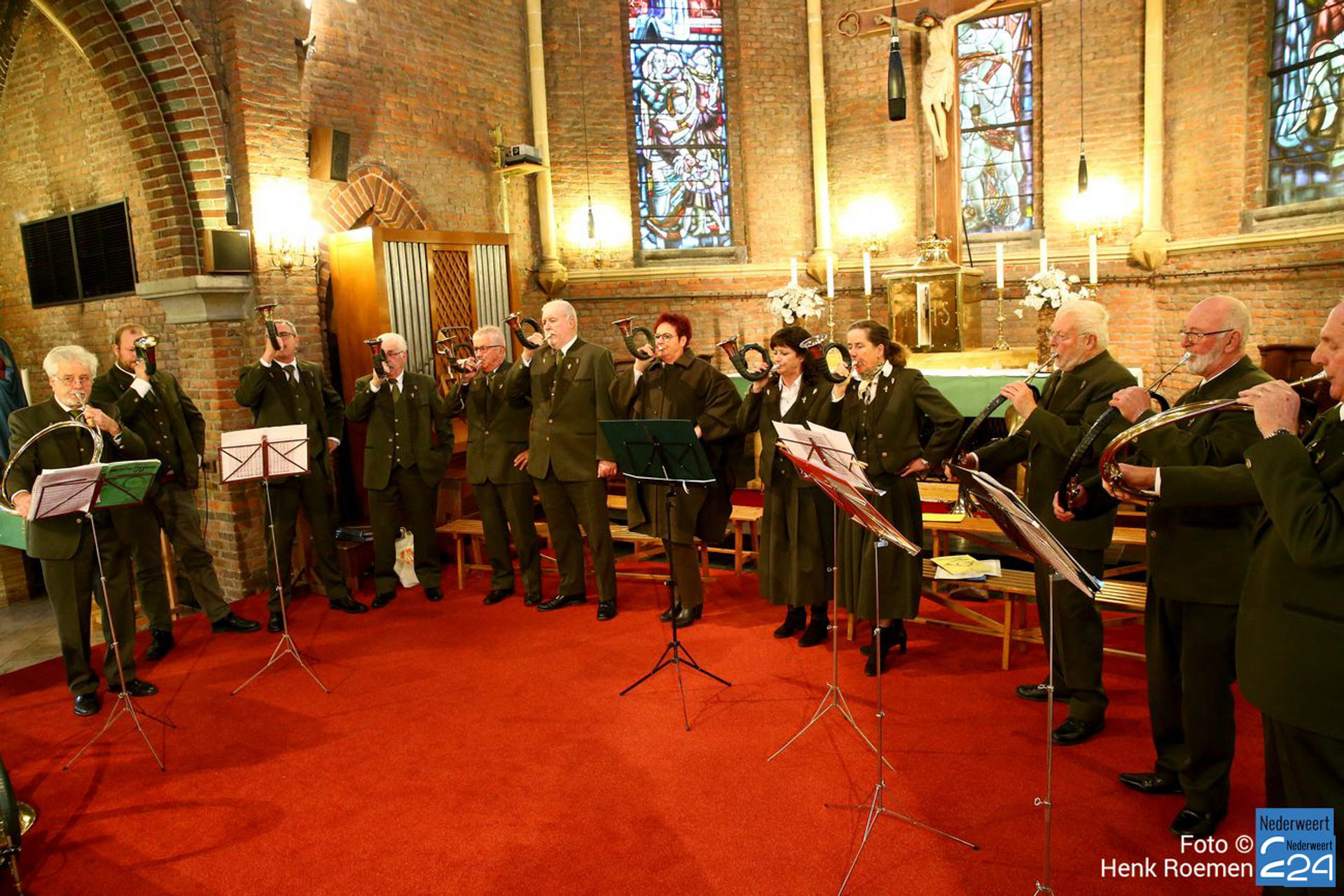 Voor het eerst sinds tientallen jaren was er op zondag 7 november 2021 weer een St. Hubertusviering met jachthoorblazers in de R.K. kerk van Parochie O.L. Vrouw Onbevlekt Ontvangen in Ospel.