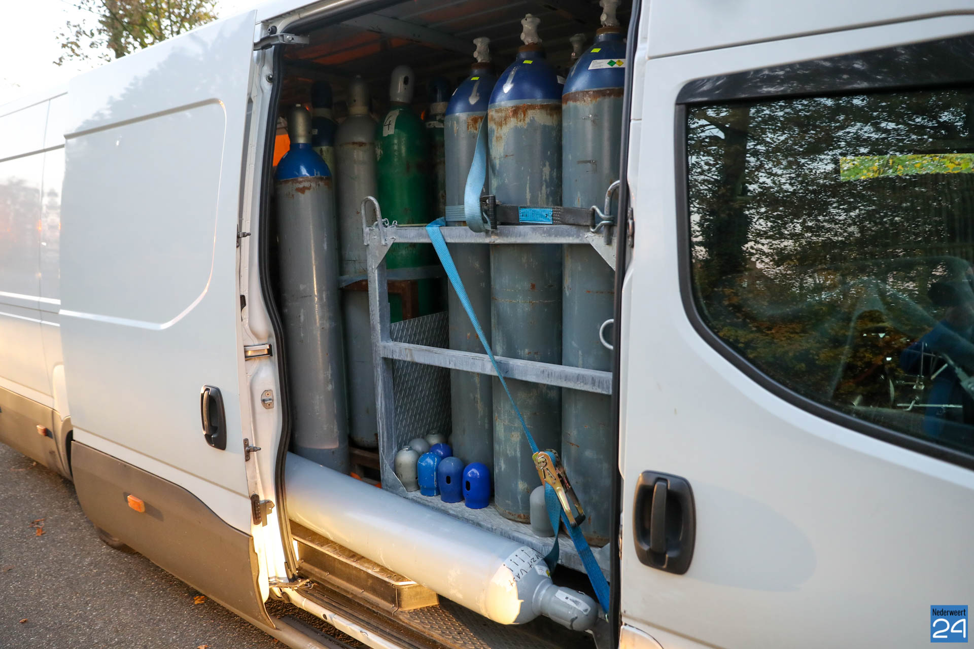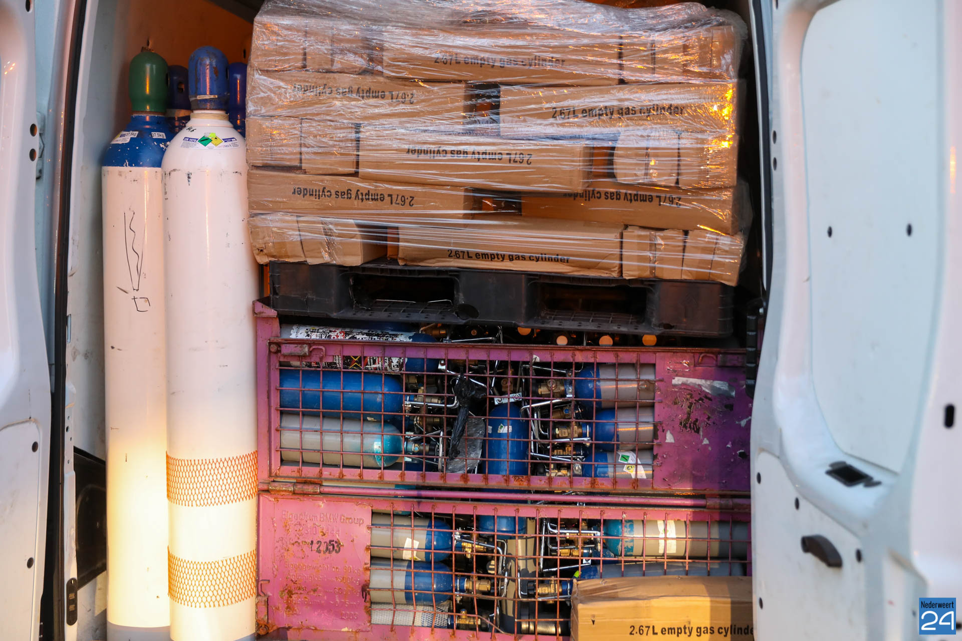 De BOA (Buitengewoon Opsporingsambtenaar) van de gemeente Nederweert, kreeg een melding van een verdachte bestelbus op Kraan – Roeven in Nederweert. Ter plaatse stond inderdaad een bestelbus, met een slappe band. De bus was niet afgesloten en al snel bleek dat de bus afgeladen vol was met cilinders.