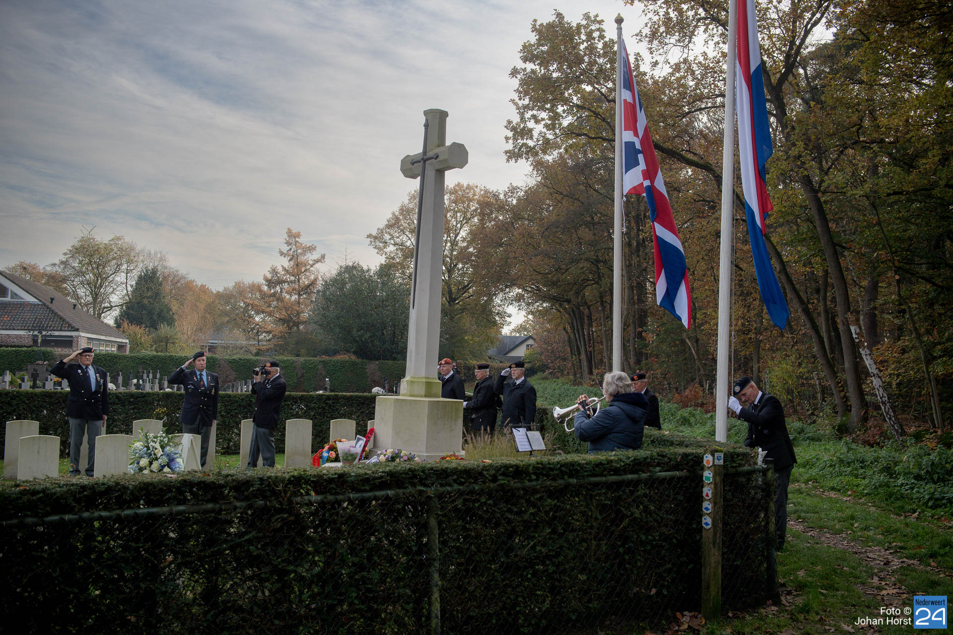 Naast een bloem- en kranslegging door de Gemeente Weert, het comité Bevrijding en Herdenkingen alsmede de Wapenbroeders en de dorpsraad het Britisch Legion Holland Branche was ditmaal ook miss Pamela Flora aanwezig. Hoornblazer Jose Lammeretz blies de Last Post en het reveille. De Pastoor sprak op de begraafplaats de kinderen kort toe.