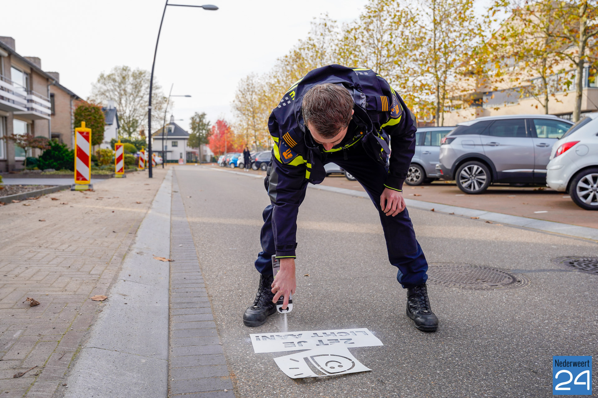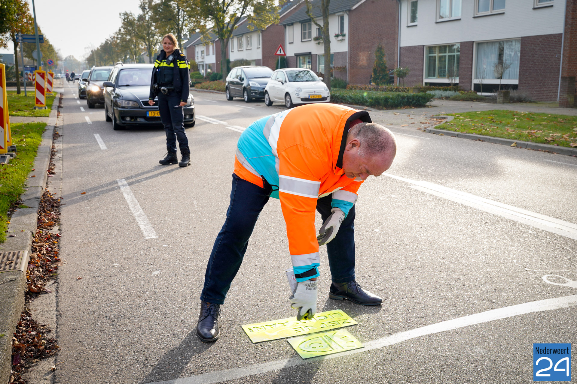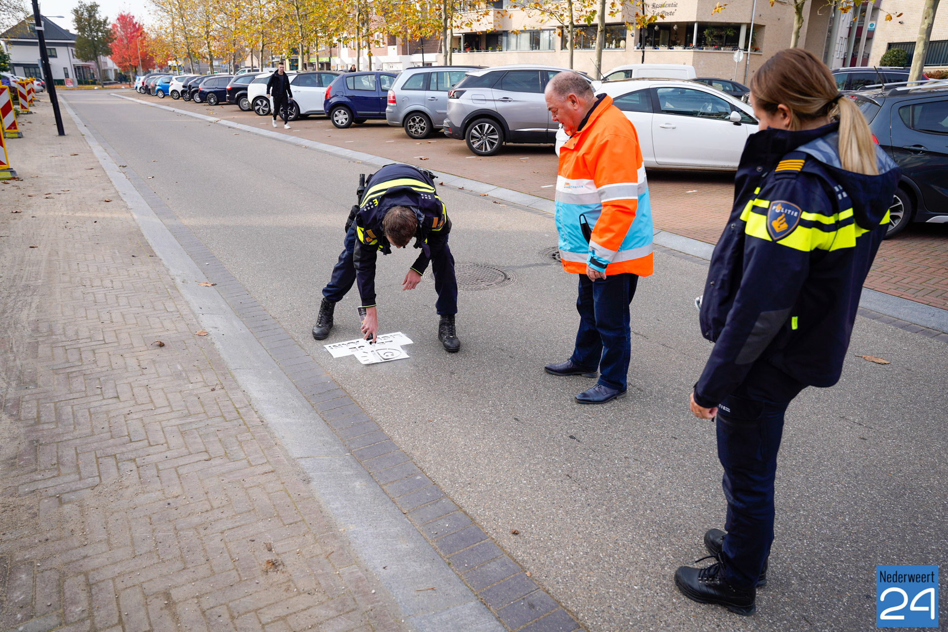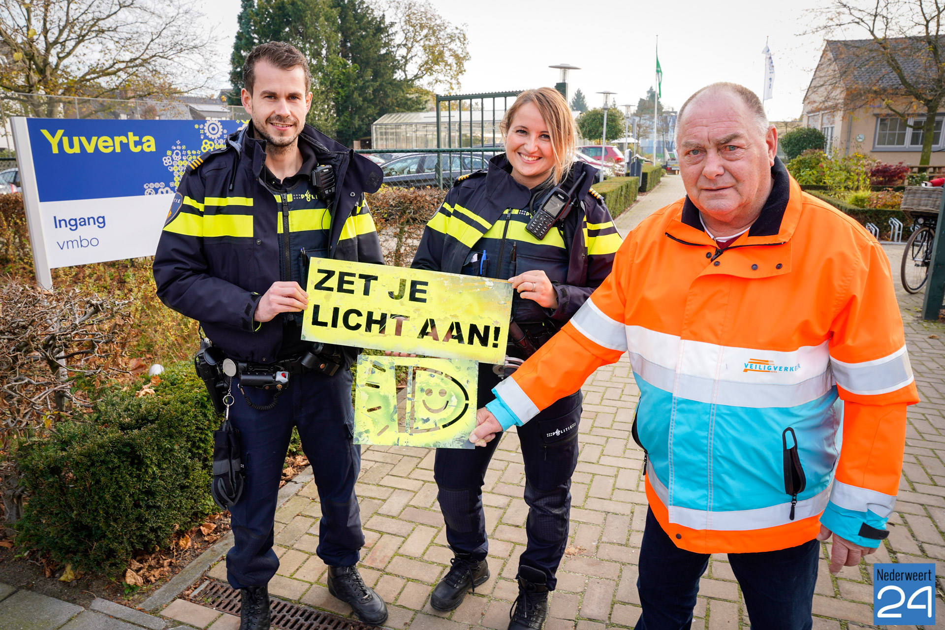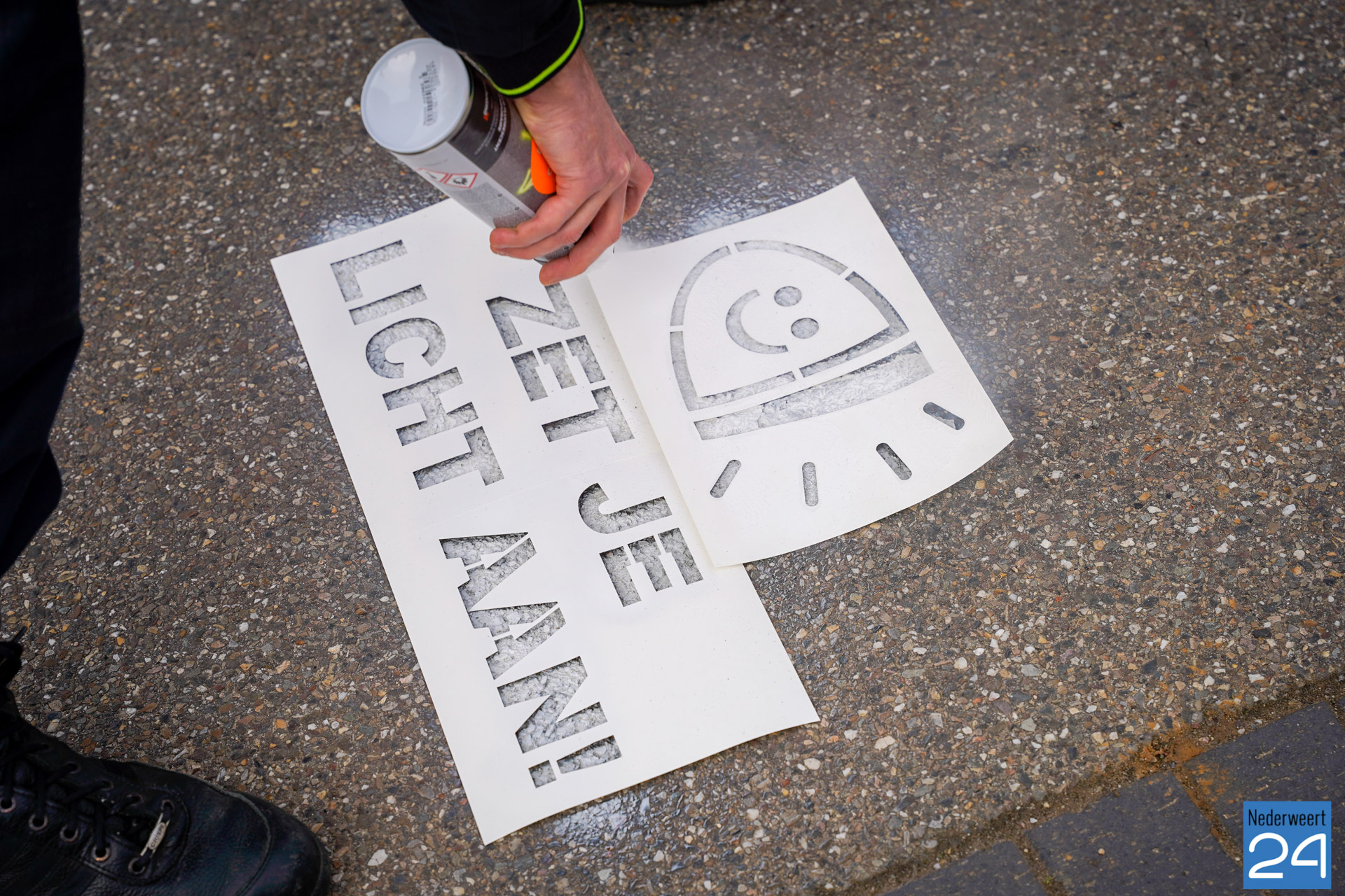 Vandaag waren, Joost Franssen (schoolagent gemeente Nederweert), Anne Philipsen (wijkagent van Nederweert) en Tjeu Stultiens (Veilig Verkeer Nederland) op pad om aandacht te besteden aan de fietsverlicht. Op verschillende plekken in Nederweert hebben ze ‘tags’ aangebracht.