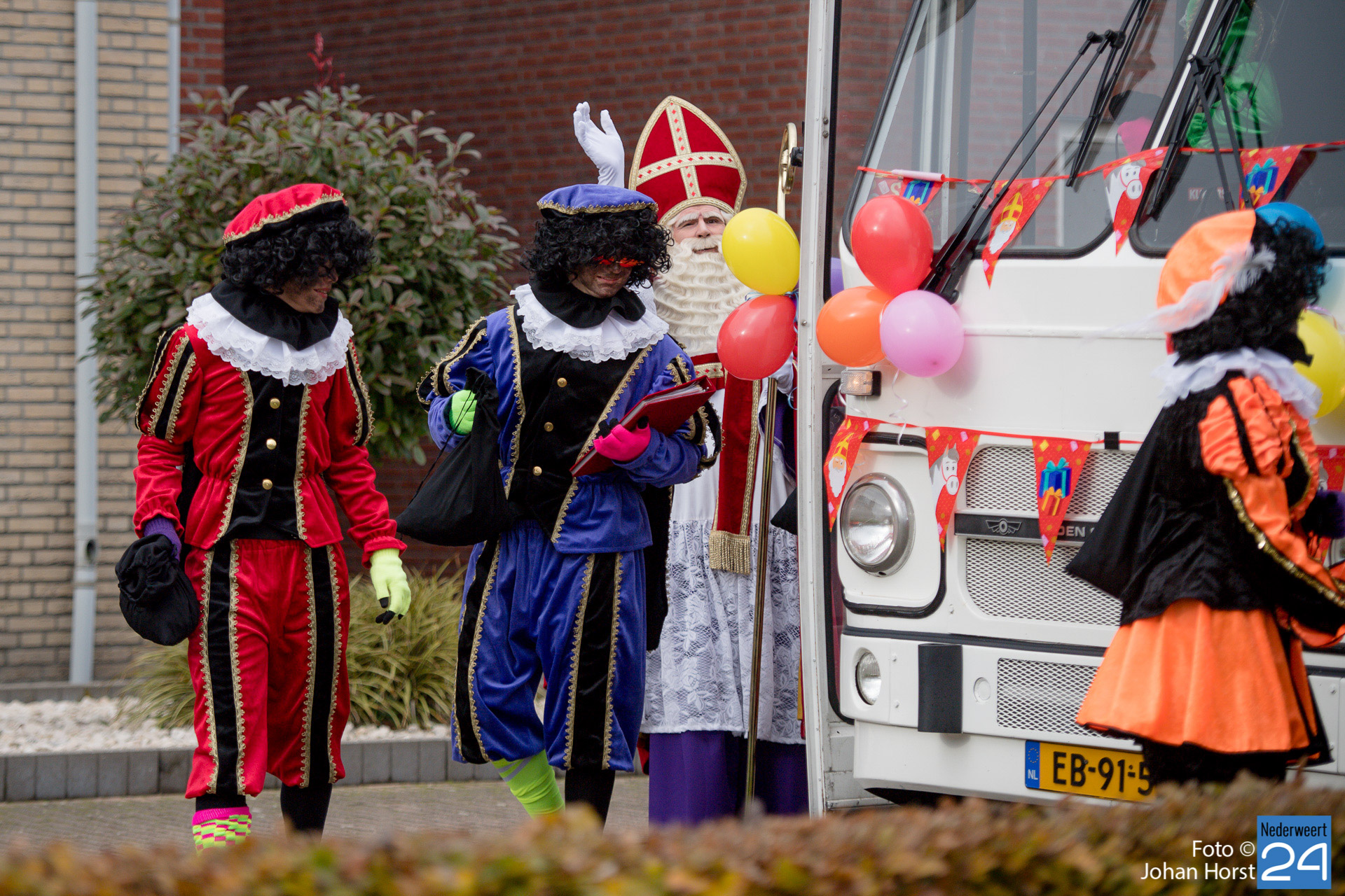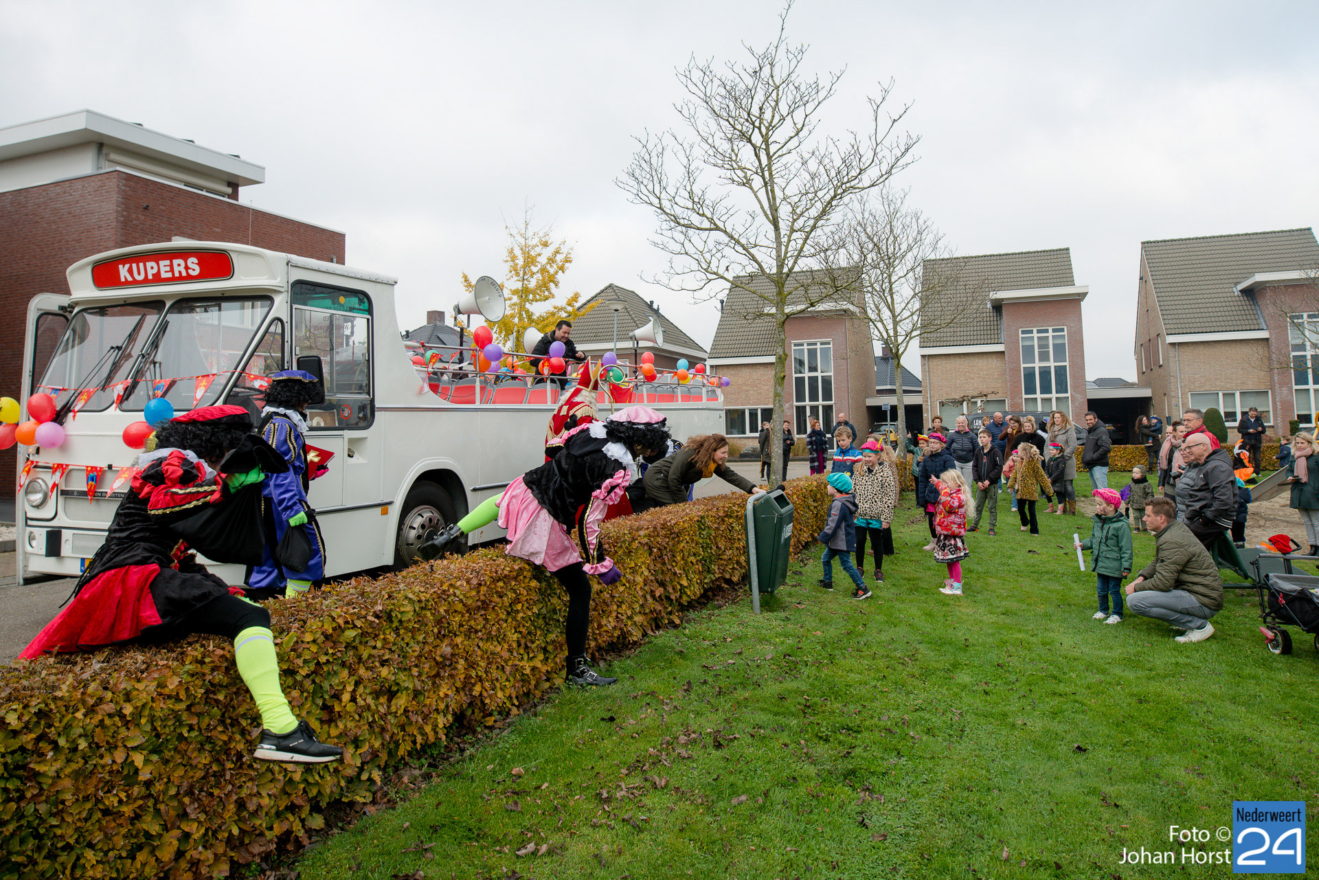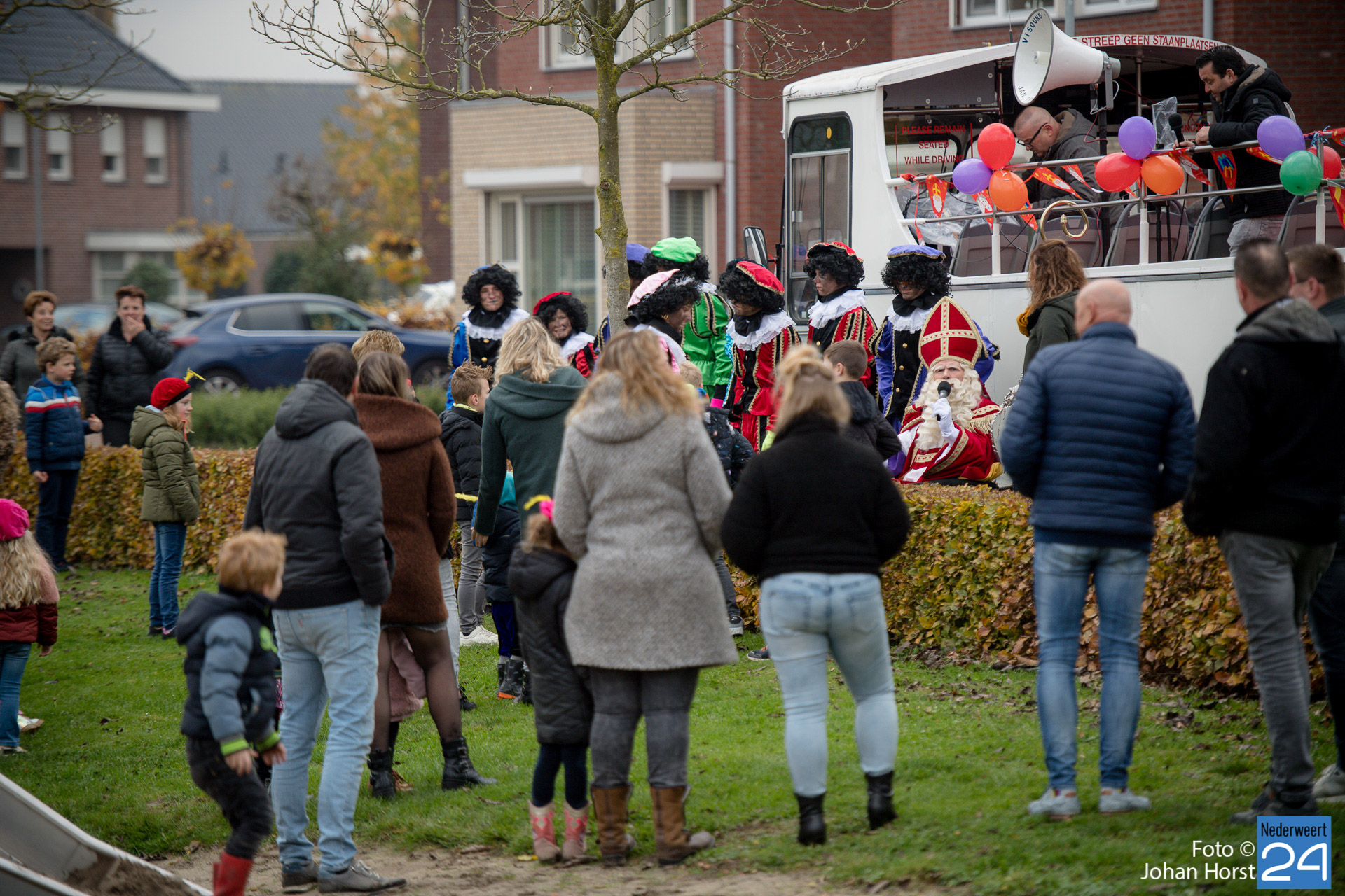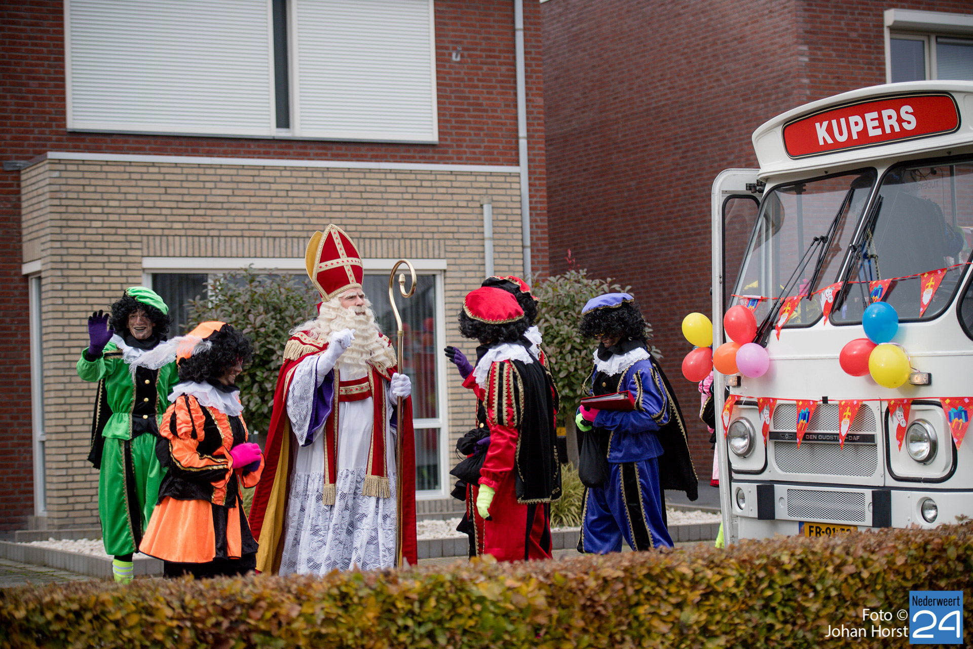 Met een grote bus bezocht de Sint en zijn Pieten vier locaties in het dorp. Er hing een gezellige sfeer in de speeltuintjes waar de goedheilig man op visite kwam.