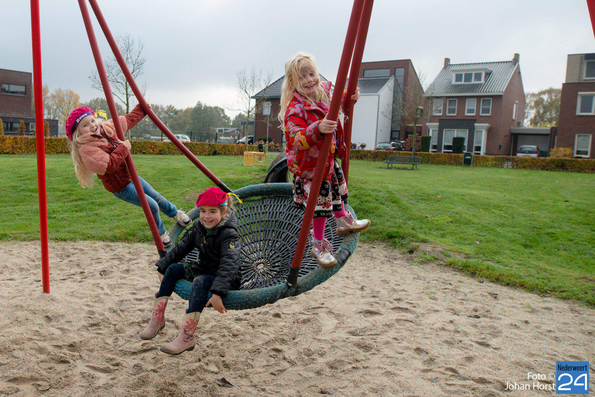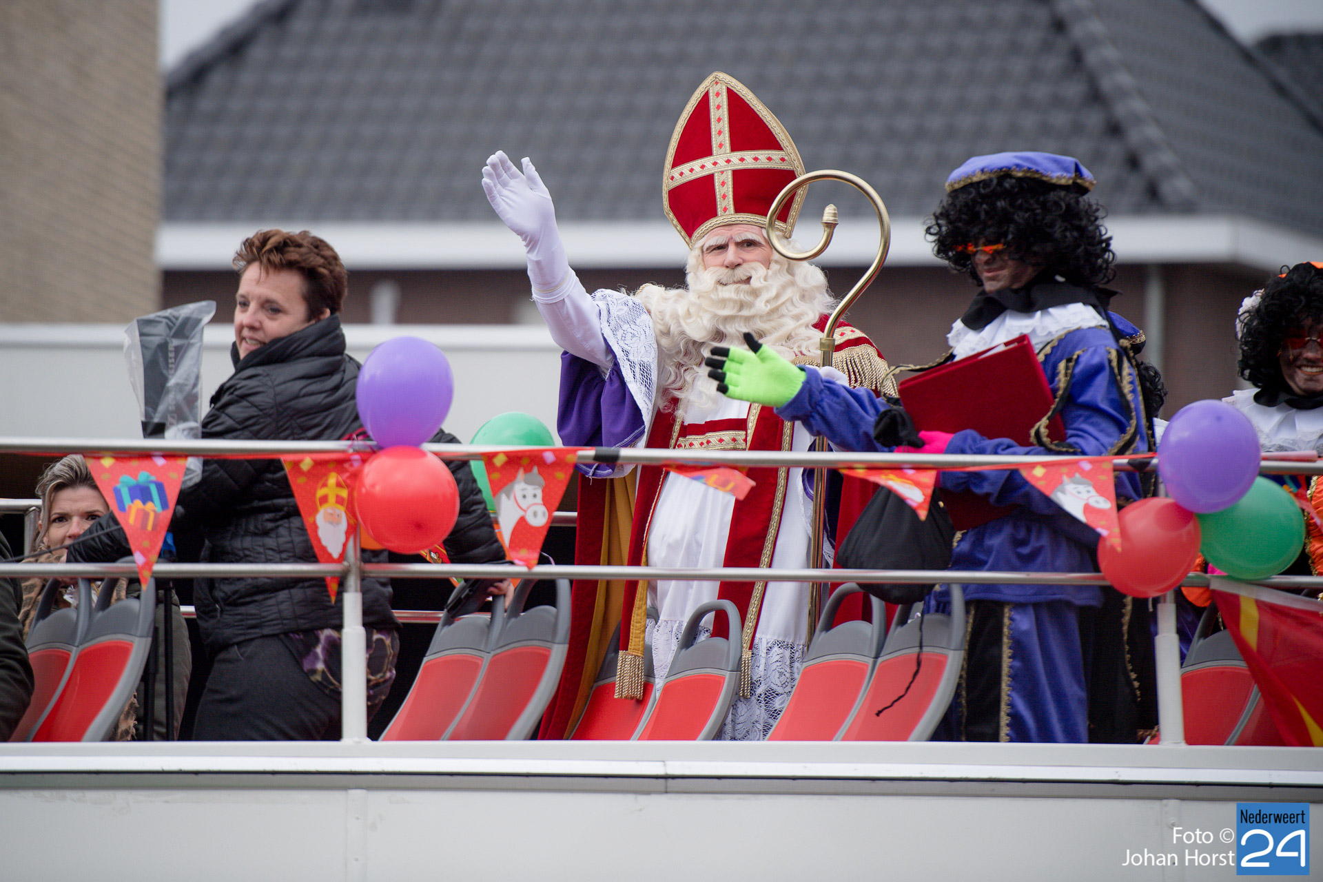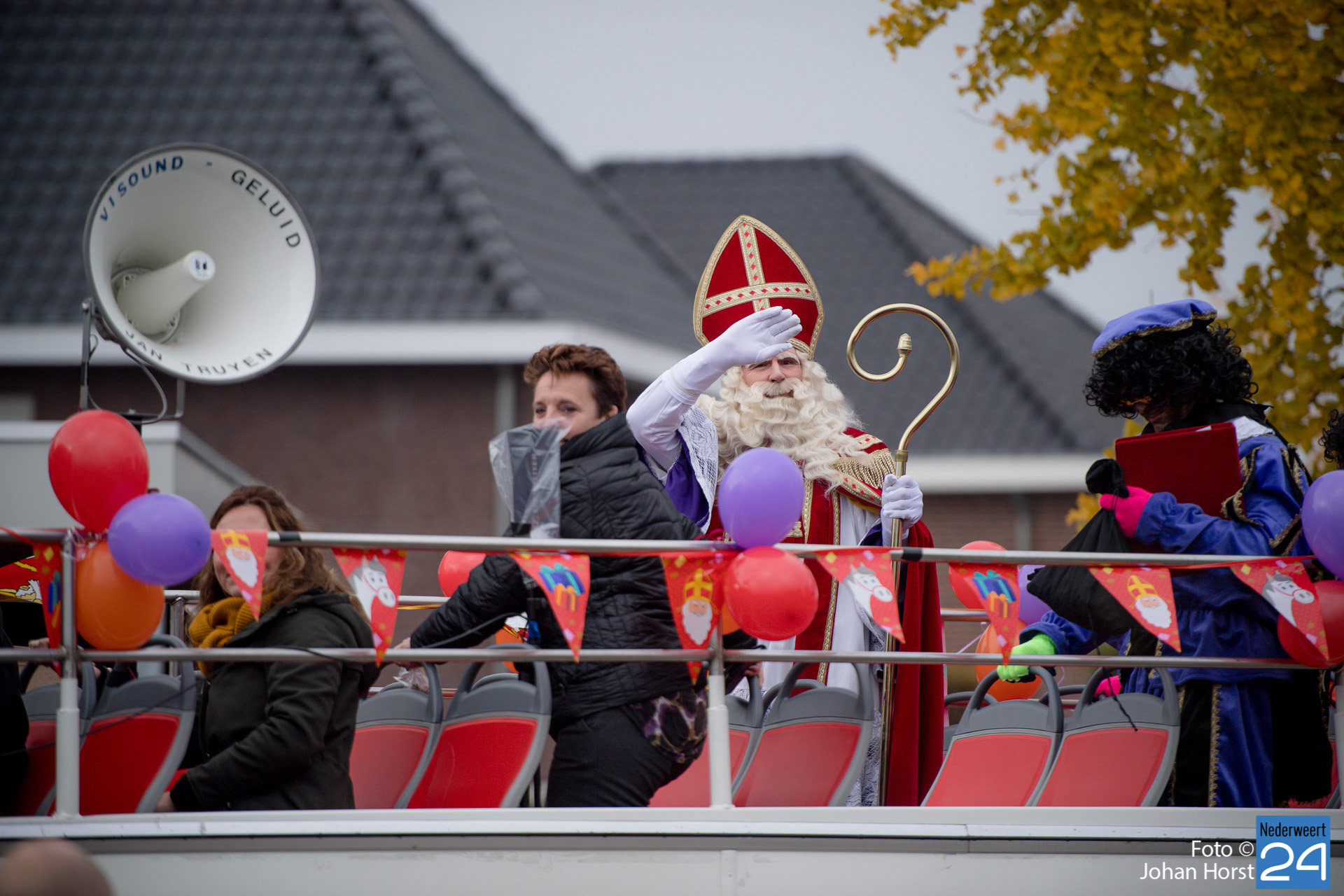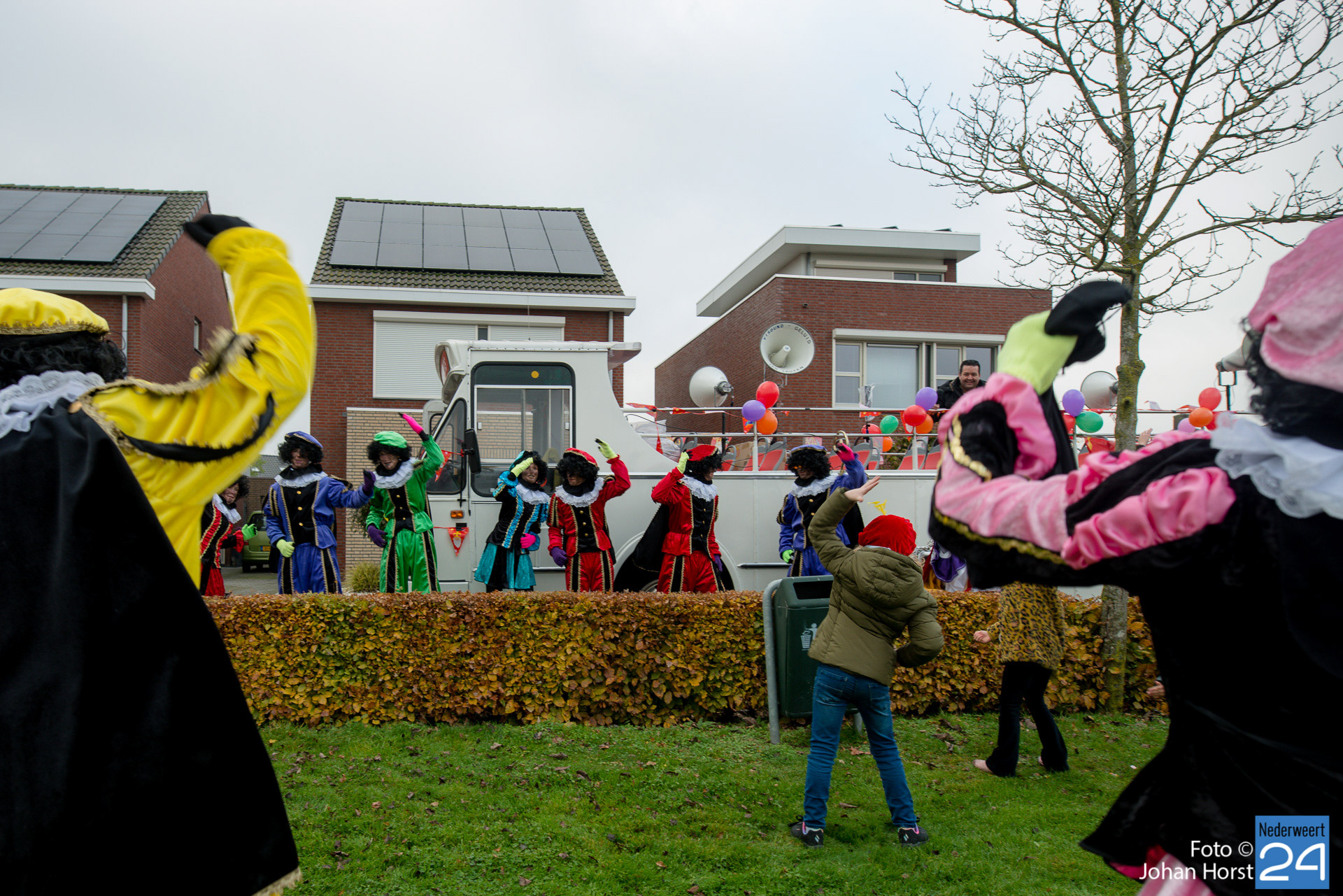 Met een grote bus bezocht de Sint en zijn Pieten vier locaties in het dorp. Er hing een gezellige sfeer in de speeltuintjes waar de goedheilig man op visite kwam.