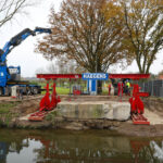 Het hervatten van de werkzaamheden aan brug Hulsen door Rijkswaterstaat nadert. Vorige week is een deel van de aspergestelling dat niet verplaatst kon worden verwijderd. Op maandag 15 november is het overgebleven gedeelte van de aspergestelling verplaatst. Dat gebeurde met een kraan op rails. Een imposante klus.