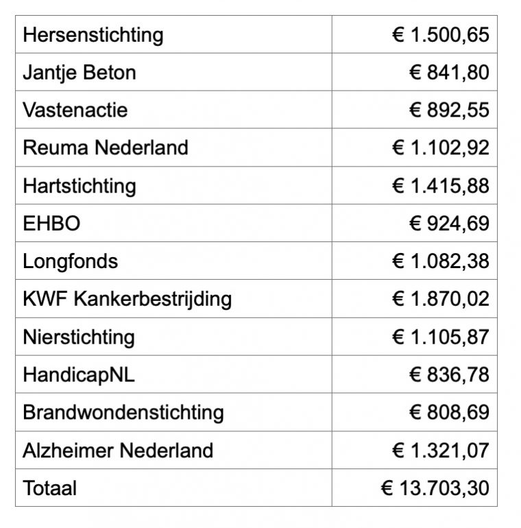 Dit jaar kijken ze terug op een zeer geslaagde collecte met voor ieder doel een heel mooie opbrengst ten opzichte van 2019. De collectanten en de coördinatoren hebben reeds een bedankbrief ontvangen voor hun vrijwillige inzet en het fantastische resultaat dit jaar. “Zonder deze inzet was het mooie resultaat niet mogelijk!“, aldus de werkgroep. “Dank namens ons en alle goede doelen. Ook danken wij onze sponsor Drukkerij Buijs voor hun bijdrage. Zij zorgde ervoor dat we de kosten nog iets konden drukken. Ook danken wij Phicoop Coöp Ospel en Bakkerij Kessels voor hun medewerking.”