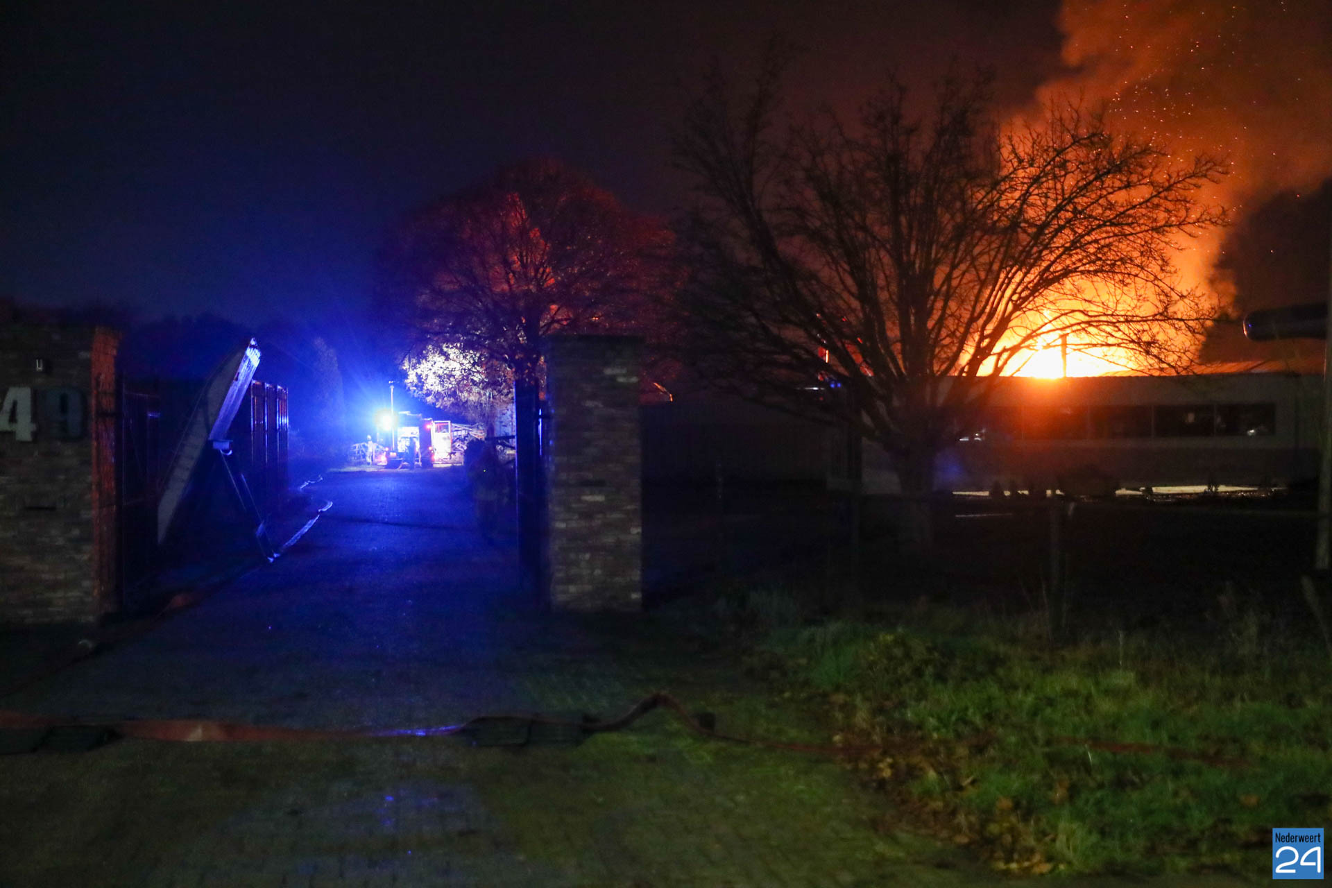 De brandweer werd rond half zeven gealarmeerd voor een loodsbrand achter een woning op de Tramstraat in Roggel. Op het bedrijfsterrein was zeer waarschijnlijk brand ontstaan in relatie met de aanwezig houtkachel, aldus de brandweer. Op het voormalige tuindersbedrijf stonden meerdere containers en een tuinkas. Nu is er een bedrijf met een groothandel in unieke woonartikelen en bouwmaterialen gevestigd. De woning op het terrein is gespaard gebleven. Er waren geen mensen aanwezig in de loods. Wel zouden er eventueel nog katten binnen hebben gezeten maar volgens de brandweer zijn er geen dieren aangetroffen.