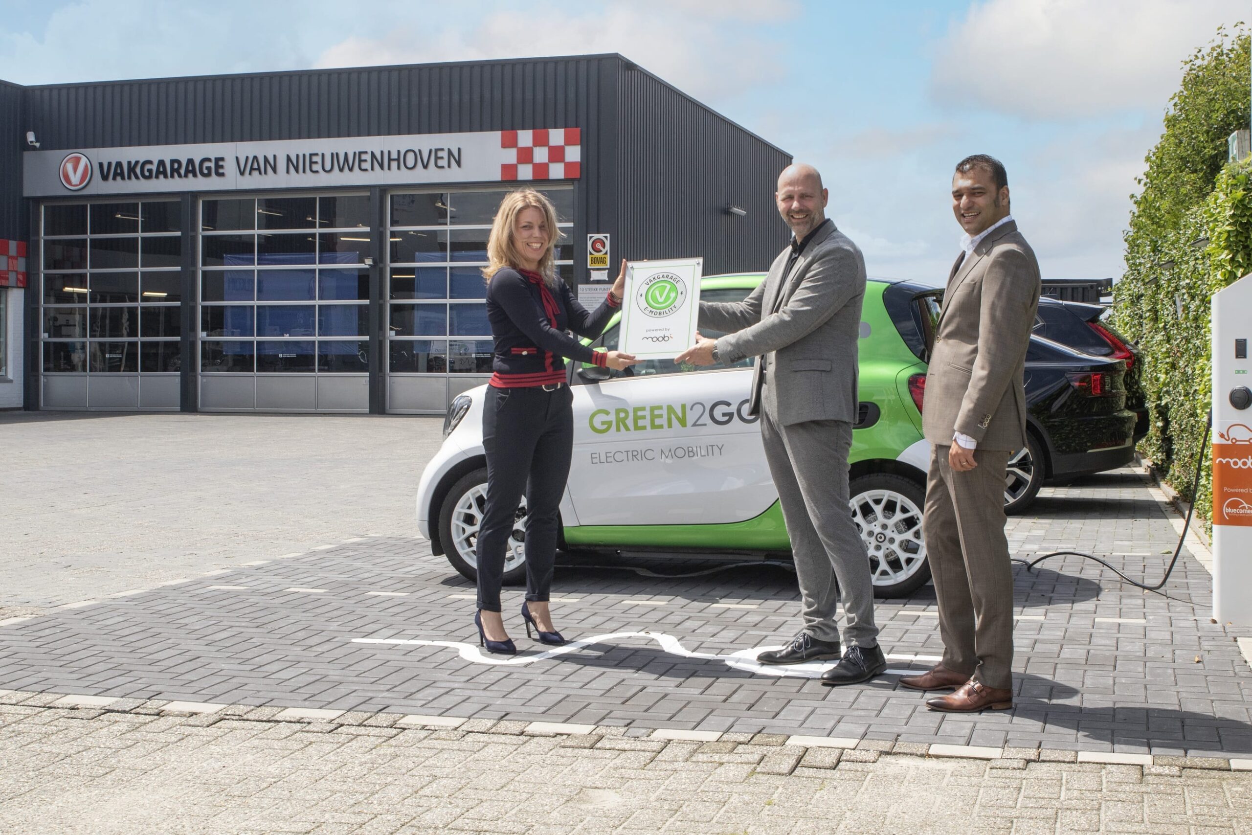 De Vakgarage E-Mobility powered by Moobi bedrijven zijn te herkennen aan een logo en signalisatie die specifiek voor deze service zijn ontwikkeld. Vakgarage van Nieuwenhoven in Nederweert-Eind heeft de primeur en heeft als eerste de signalisatie ontvangen. “De formule van Moobi is precies wat wij zoeken”, zegt Bart van Nieuwenhoven. “Het totale concept van trainingen, levering van equipment en data en het bieden van laadvoorzieningen en oplossingen voor onze EV-klanten past perfect in onze toekomstvisie. Het is een zeer compleet pakket, terwijl de medewerkers de opleidingen krijgen via het vertrouwde Automotive Academy waarmee wij al jaren werken