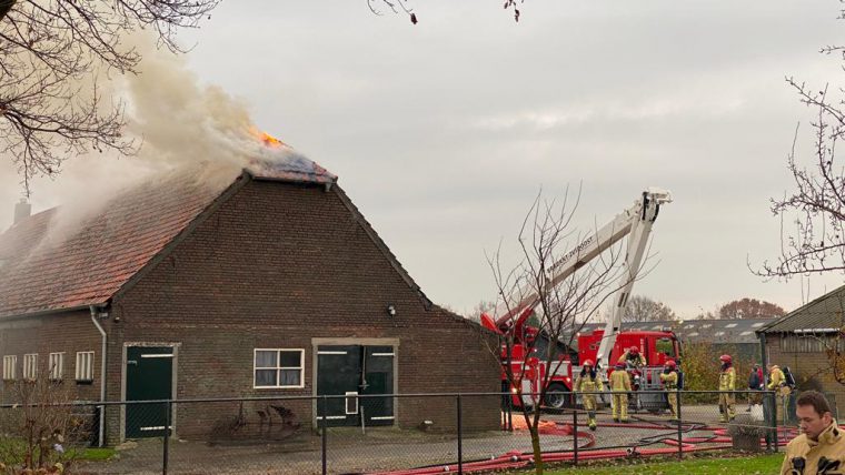 De brand woedt op de tweede verdieping van de boerderij. De brandweer werd massaal opgeroepen om het vuur te bestrijden. Het gaat inmiddels om een uitslaande brand. De vlammen slaan uit het dak.