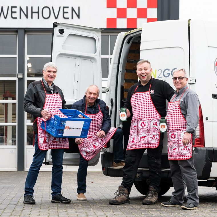 Inhakend op deze kookschort heeft Vakgarage Van Nieuwenhoven de samenwerking opgezocht met de Voedselbank in Weert. Bart van Nieuwenhoven: “Per uitgedeelde schort gaat er vanuit de Vakgarage een bedrag naar Voedselbank Nederland. Daarnaast bieden wij mensen de mogelijkheid om hier bij ons goederen (o.a. blikken) af te geven of geld te doneren voor de Voedselbank in Weert. ‘Een warme maaltijd voor iedereen’ vinden we belangrijk. Juist in deze periode. Hier willen we graag op deze manier ons steentje aan bijdragen.”
