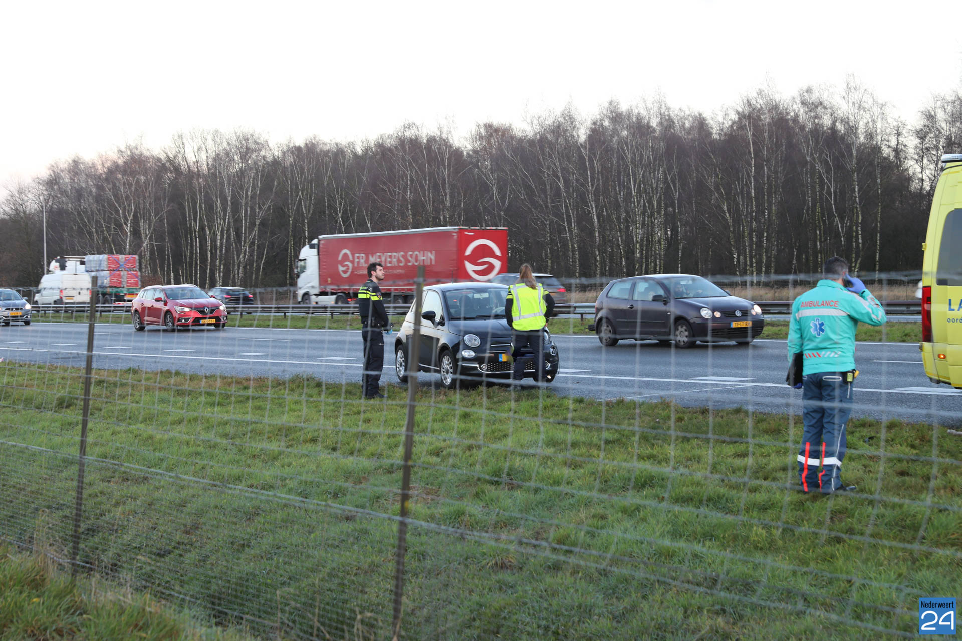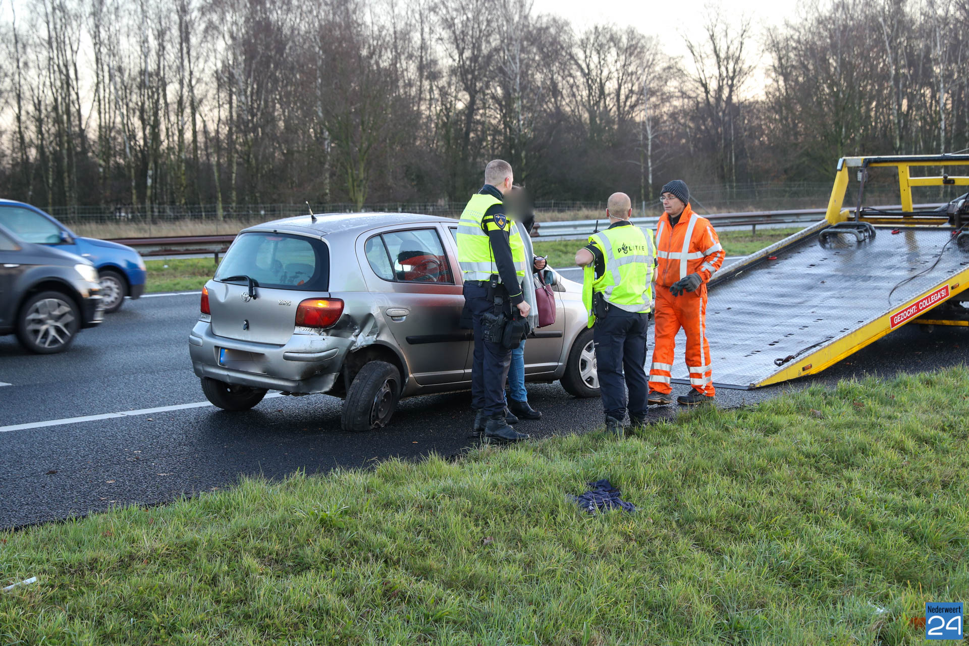 De auto’s reden in zuidelijke richting en een stukje voor afrit Kelpen-Oler ging het mis. De twee auto’s raakte elkaar en kwamen op de vluchtstrook tot stilstand. In eerste instantie werd ook de brandweer van Nederweert, Weert en Grathem opgeroepen, maar dit bleek niet nodig. Bij het ongeval raakte één persoon lichtgewond. De man is met een hoofdwond overgebracht naar het ziekenhuis.