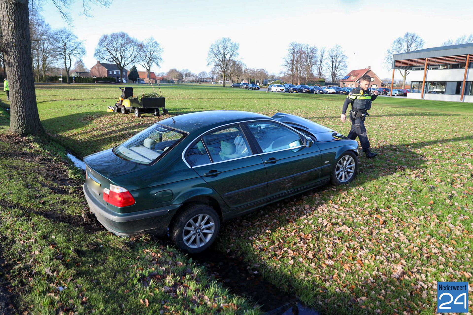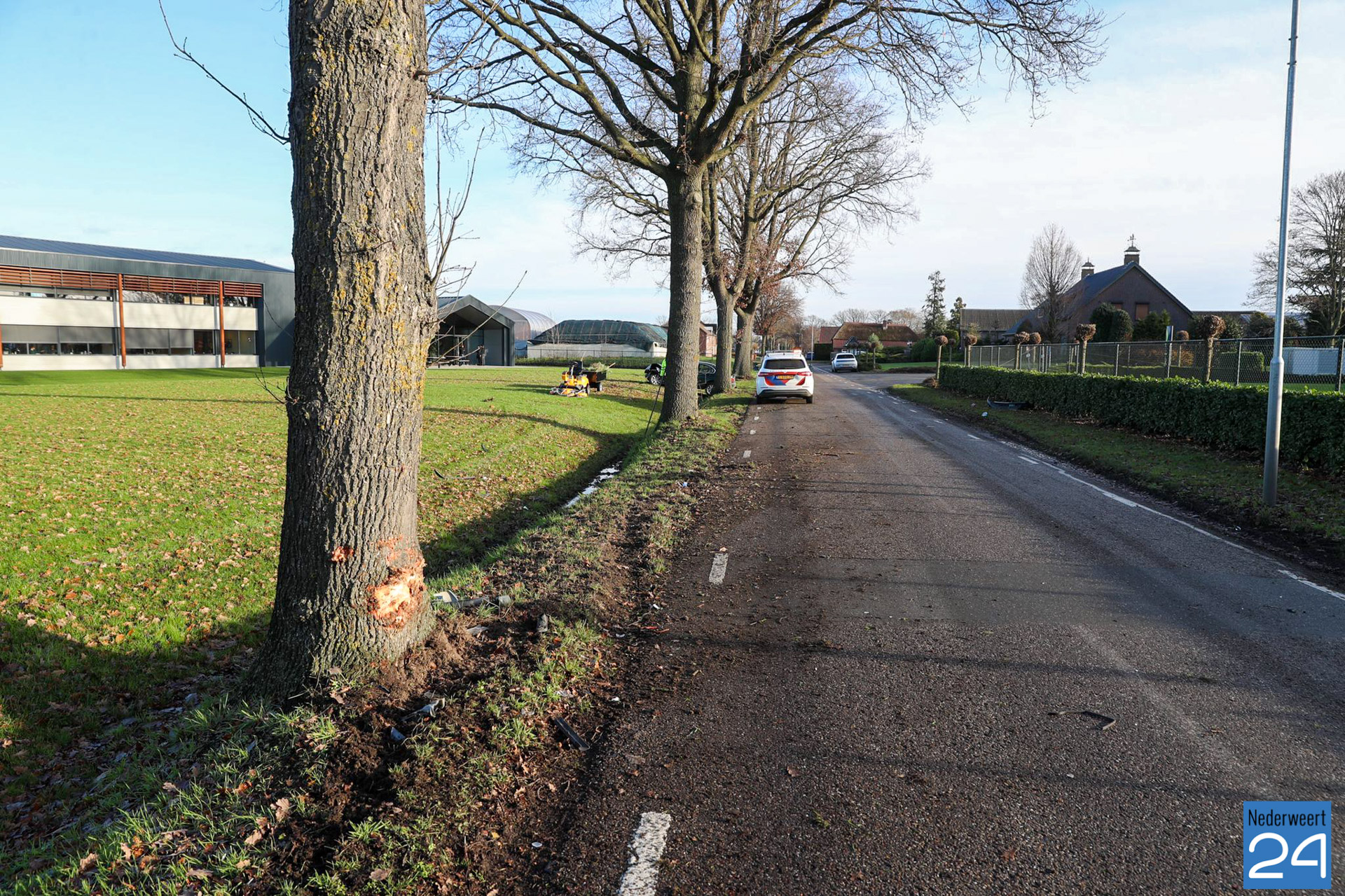 Een personenauto is door onbekende oorzaak uit de bocht gevlogen en tegen een boom gebotst. Het voertuig kwam meters verderop in de sloot tot stilstand. De inzittende is uitgestapt en heeft de plek van het ongeval verlaten. De politie heeft de bestuurder een stukje verderop ter hoogte van de Kuilstraat aangehouden.