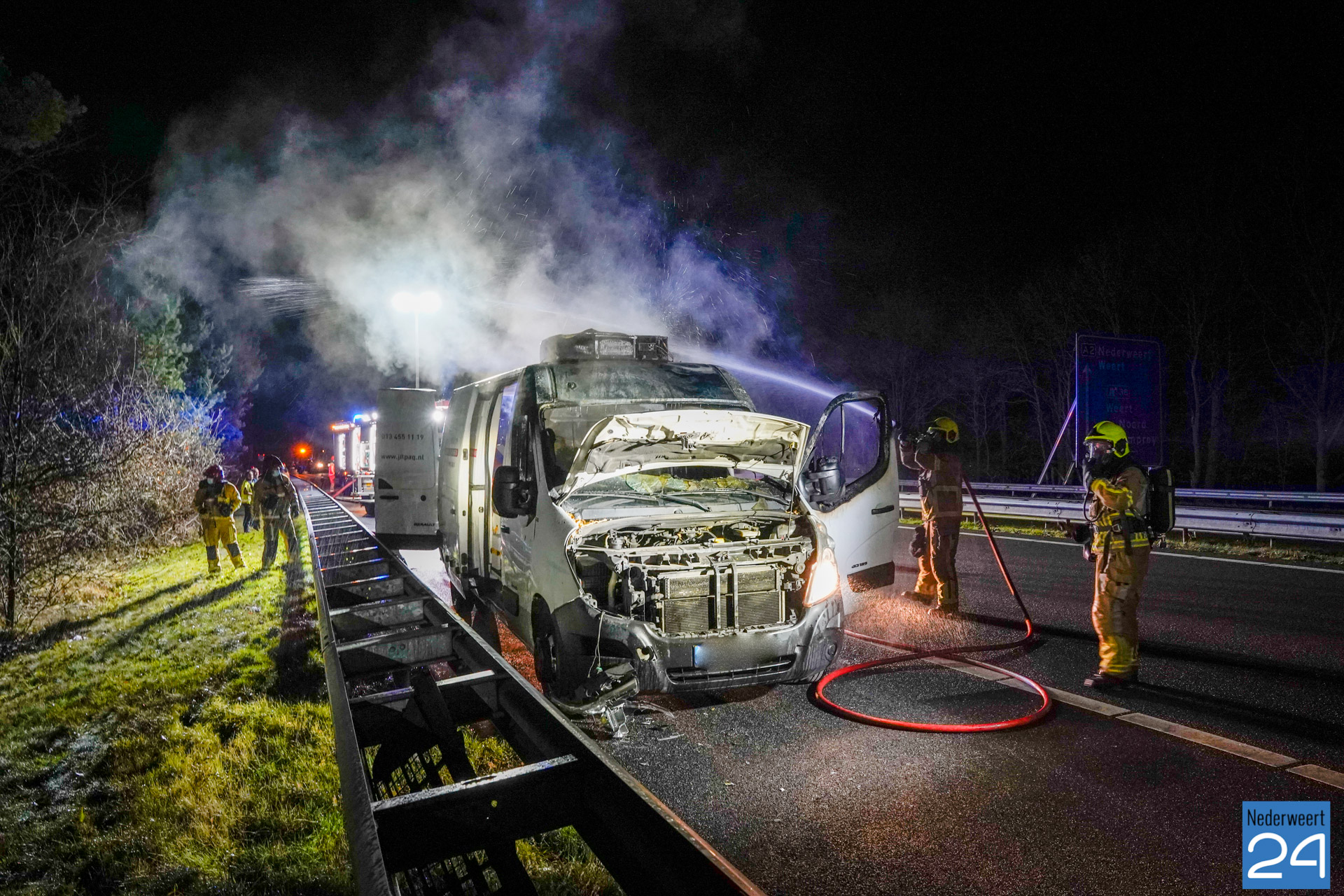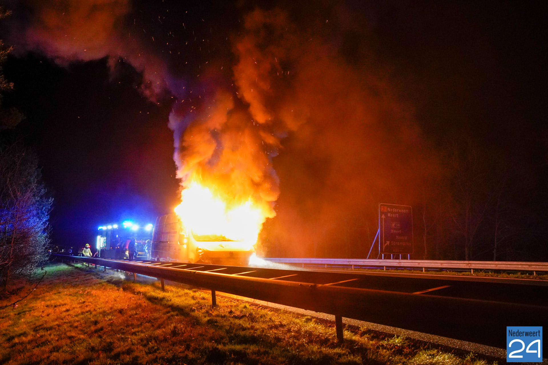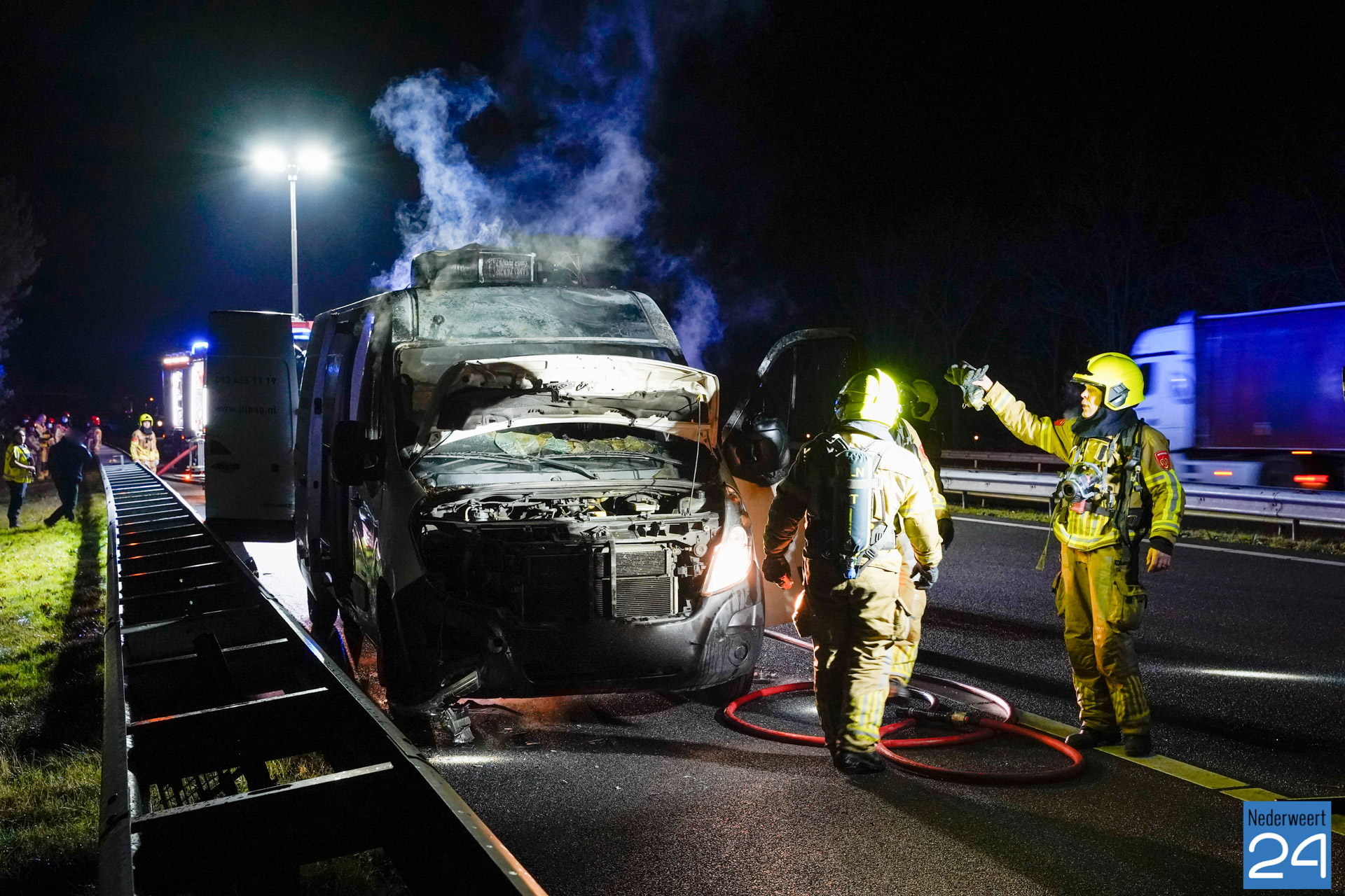 Bedrijfsbus vat vlam op snelweg A2 bij Weert
