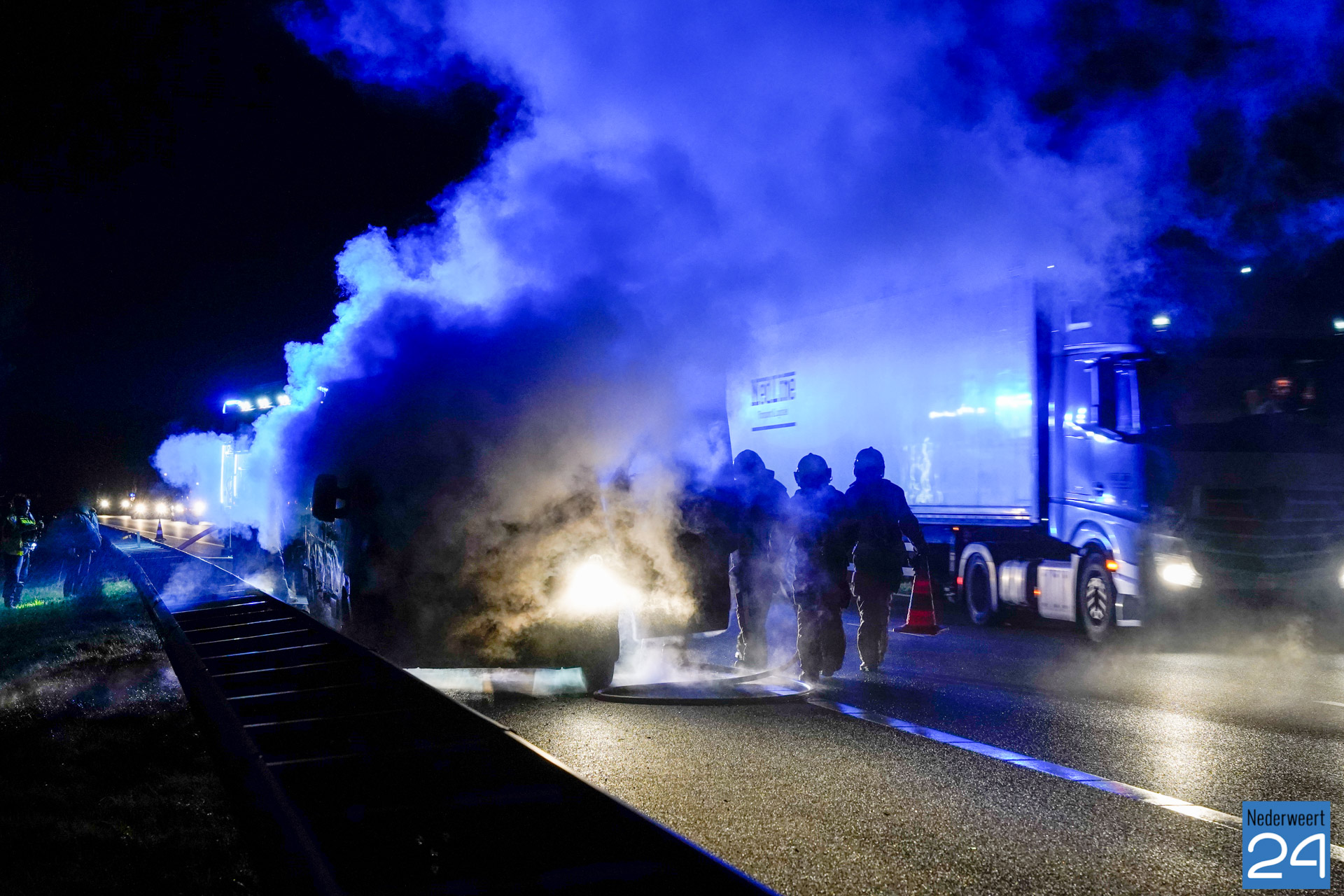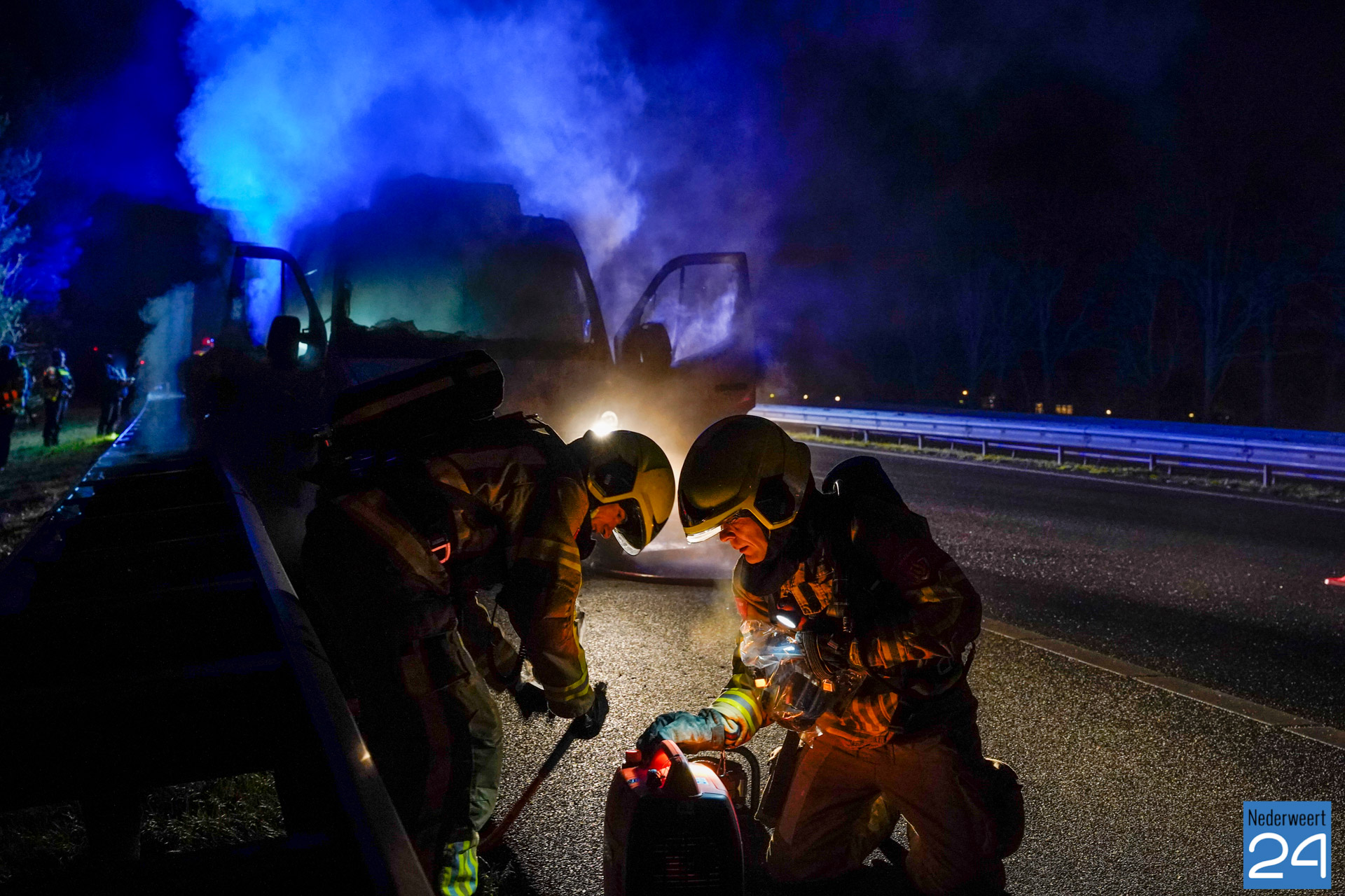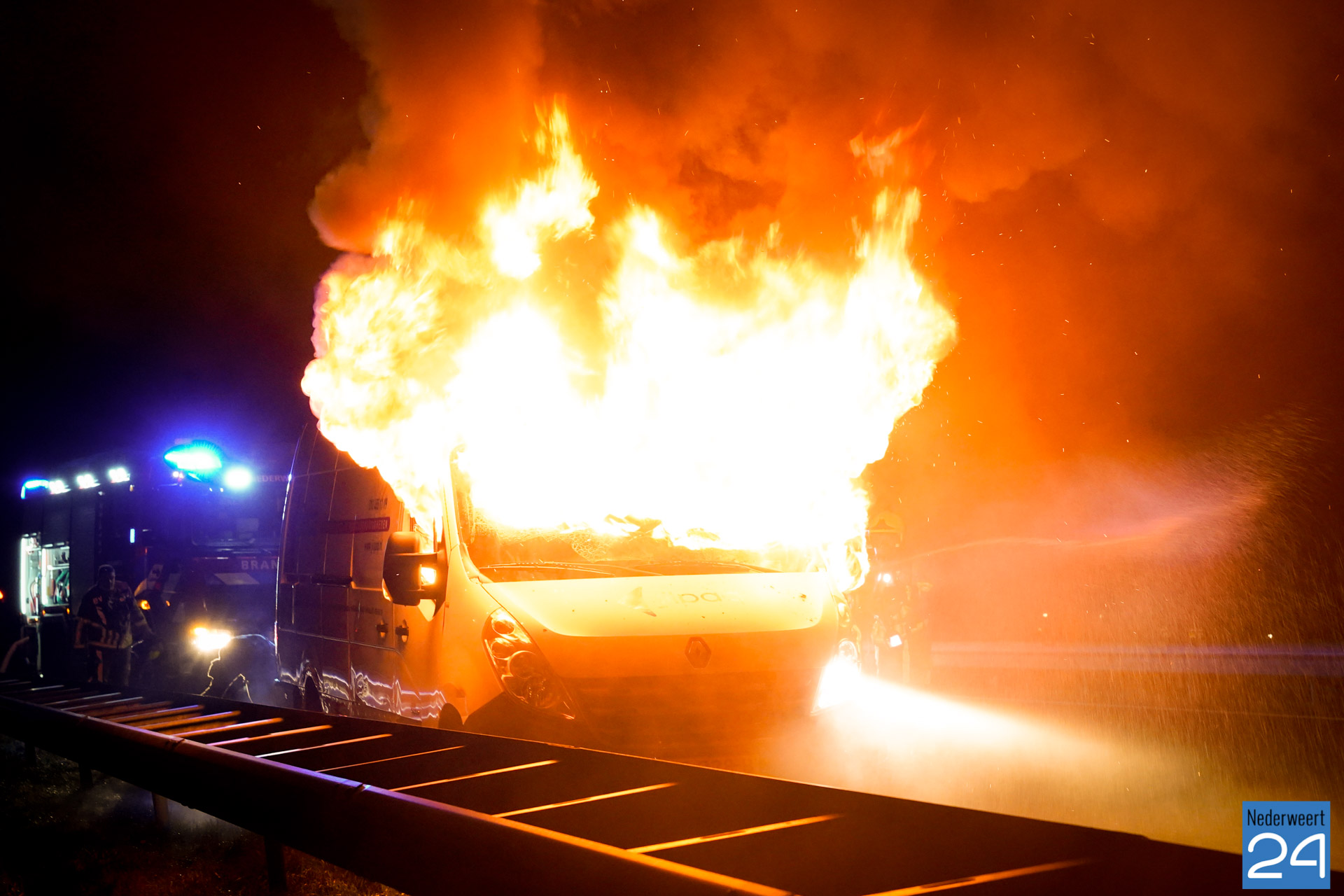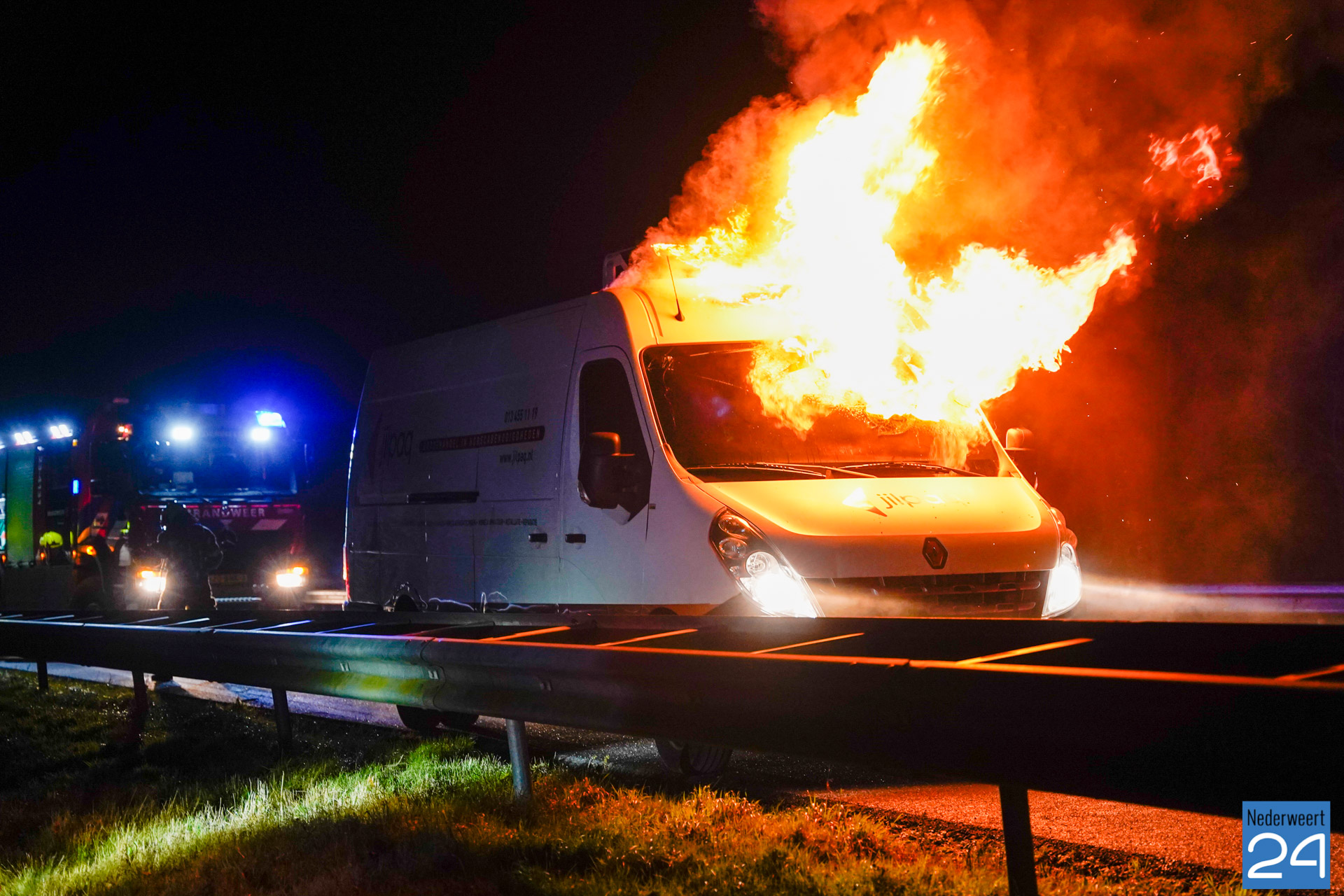 Bedrijfsbus vat vlam op snelweg A2 bij Weert