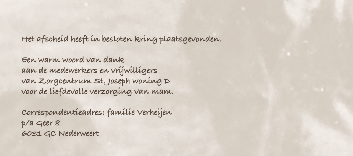 Overlijdensbericht: Griet Verheijen – Driessen †